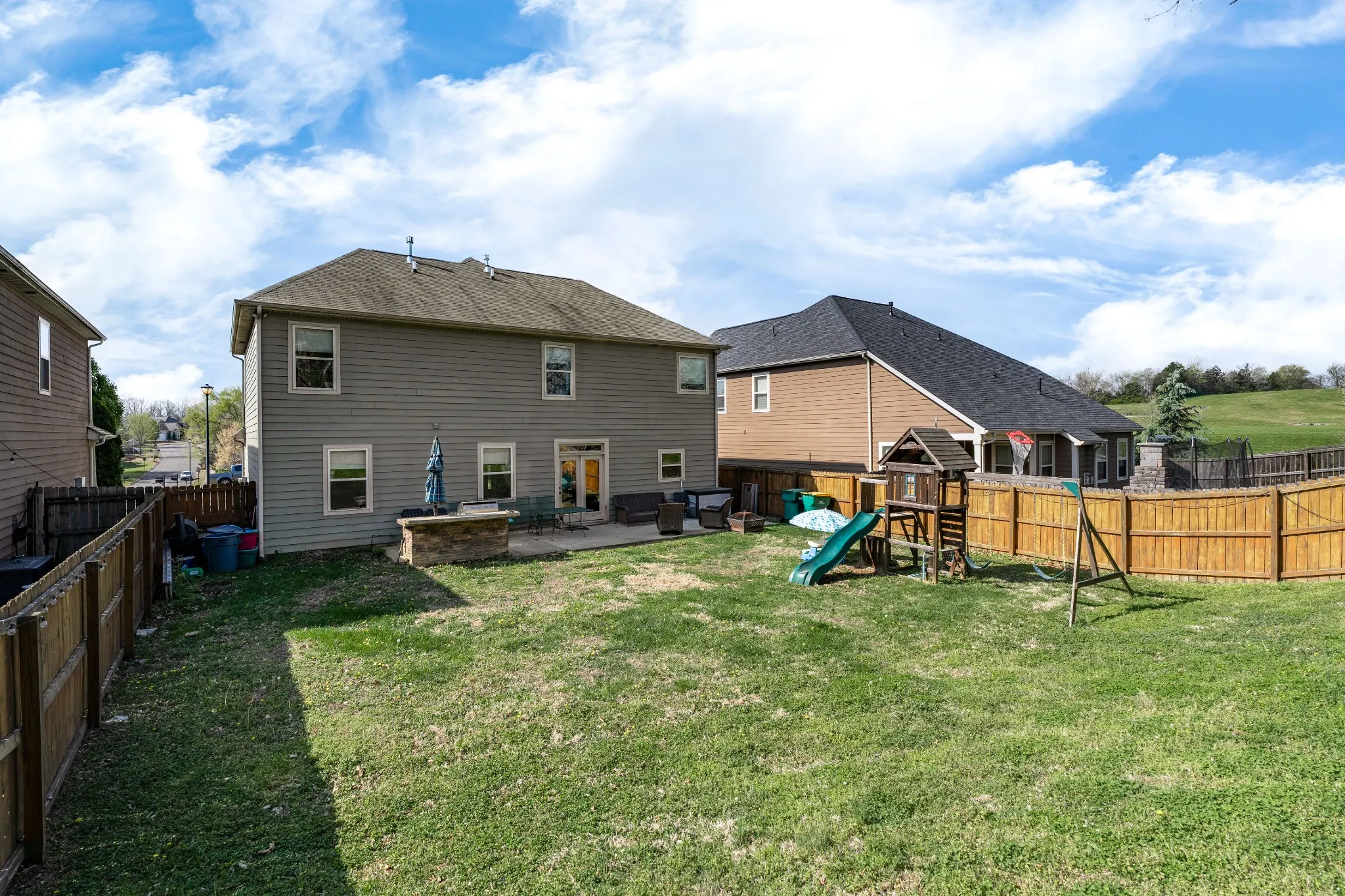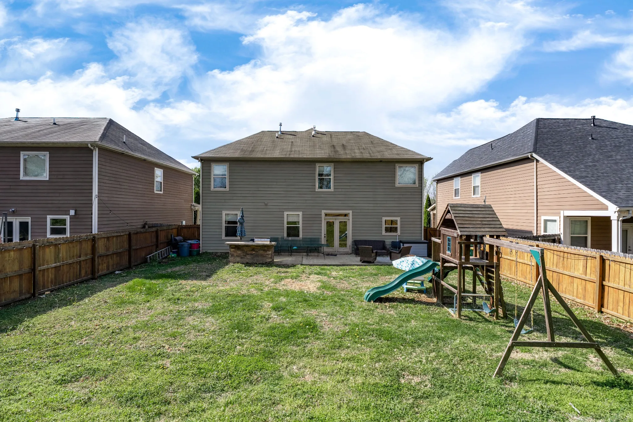 Weekday showings 9am -2pm, Weekends 9am-6pm (Call for request outside timeframe).Family oriented subdivision and known for neighborhood gatherings, holiday celebrations and pool parties. This home has a great layout and features an open concept kitchen/dining/living room area. You will immediately feel like entertaining in this space. The kitchen offers stainless steel appliances, gas range, island and granite countertops. There is a formal dining room (currently being used as a dual home office). All bedrooms and laundry room are upstairs. The master bedroom is larger and will easily fit a king size bed plus several furniture pieces. The master suite has double vanities, a separate tub and shower plus walk in closet and private restroom. Secondary, 3rd and 4th bedrooms are also a nice size. Walk outside to an nicely stained fenced in backyard. Plenty of room for children and pets to run around and play. Outdoor gas grill is built in on the patio and remains. Community amenities offer a pool and play park.Located in the heart of Spring Hill plus close Saturn Parkway/I65.