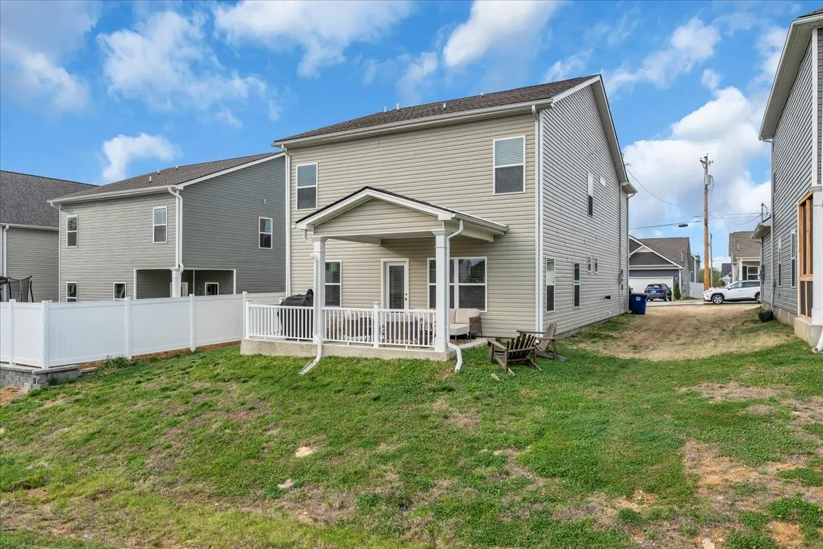 Enjoy 9-foot ceilings throughout and an abundance of natural light thanks to additional windows added during construction. The home has been professionally painted, including the garage and features updated light fixtures, custom railing, and a stylishly updated half bath vanity. You’ll also love the convenience of professionally installed 2″ faux wood blinds and curtain rods that will remain with the home.