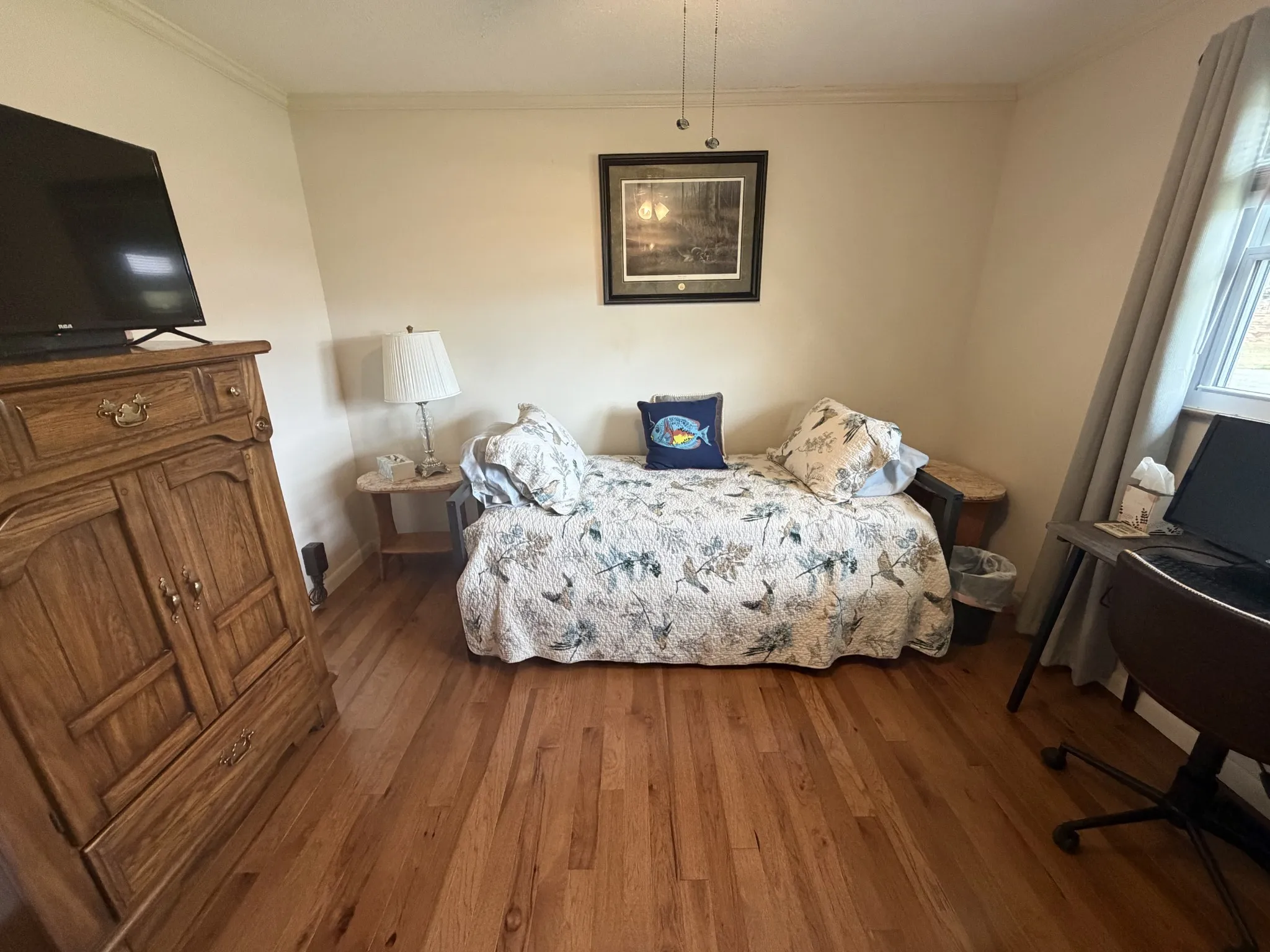 Situated on approximately 1 acre and not located in a flood zone so no flood insurance is required, this updated all-brick ranch is move-in ready and ideal for full-time living or a weekend retreat. The home features 3 bedrooms and 2 bathrooms, solid hardwood flooring, and tile in all baths. Recent updates include a new roof (2026) and a newer HVAC system with gas pack (2020). A natural gas fireplace adds warmth and charm to the living space. Additional highlights include a 2-car garage with workspace, an oversized utility room with ample storage, and a relaxing patio overlooking the river—perfect for enjoying peaceful waterfront views.