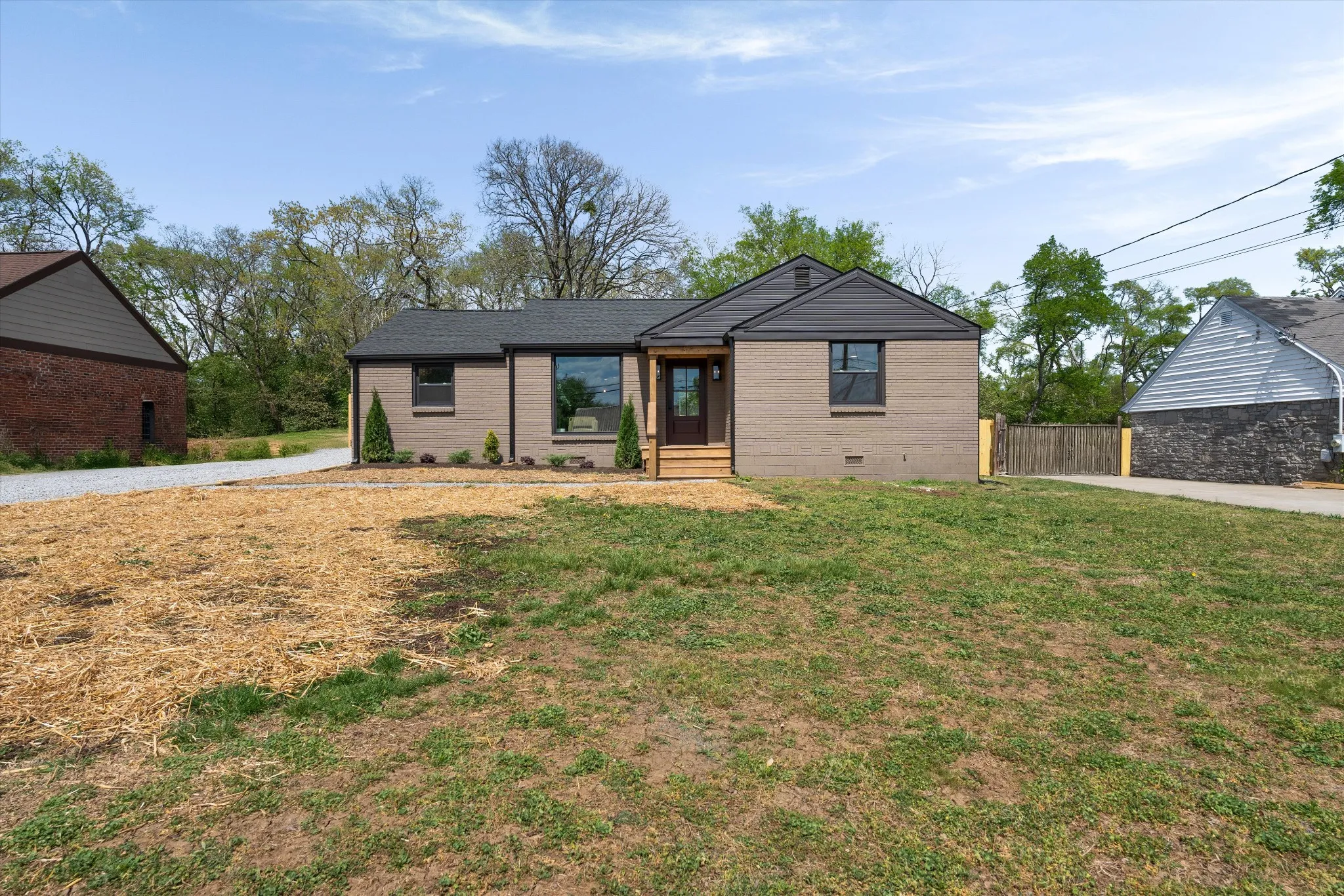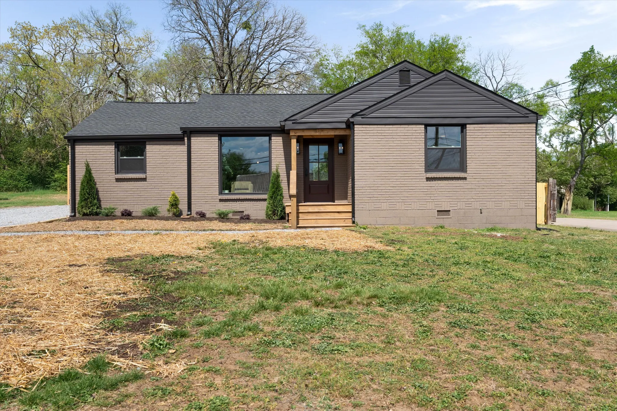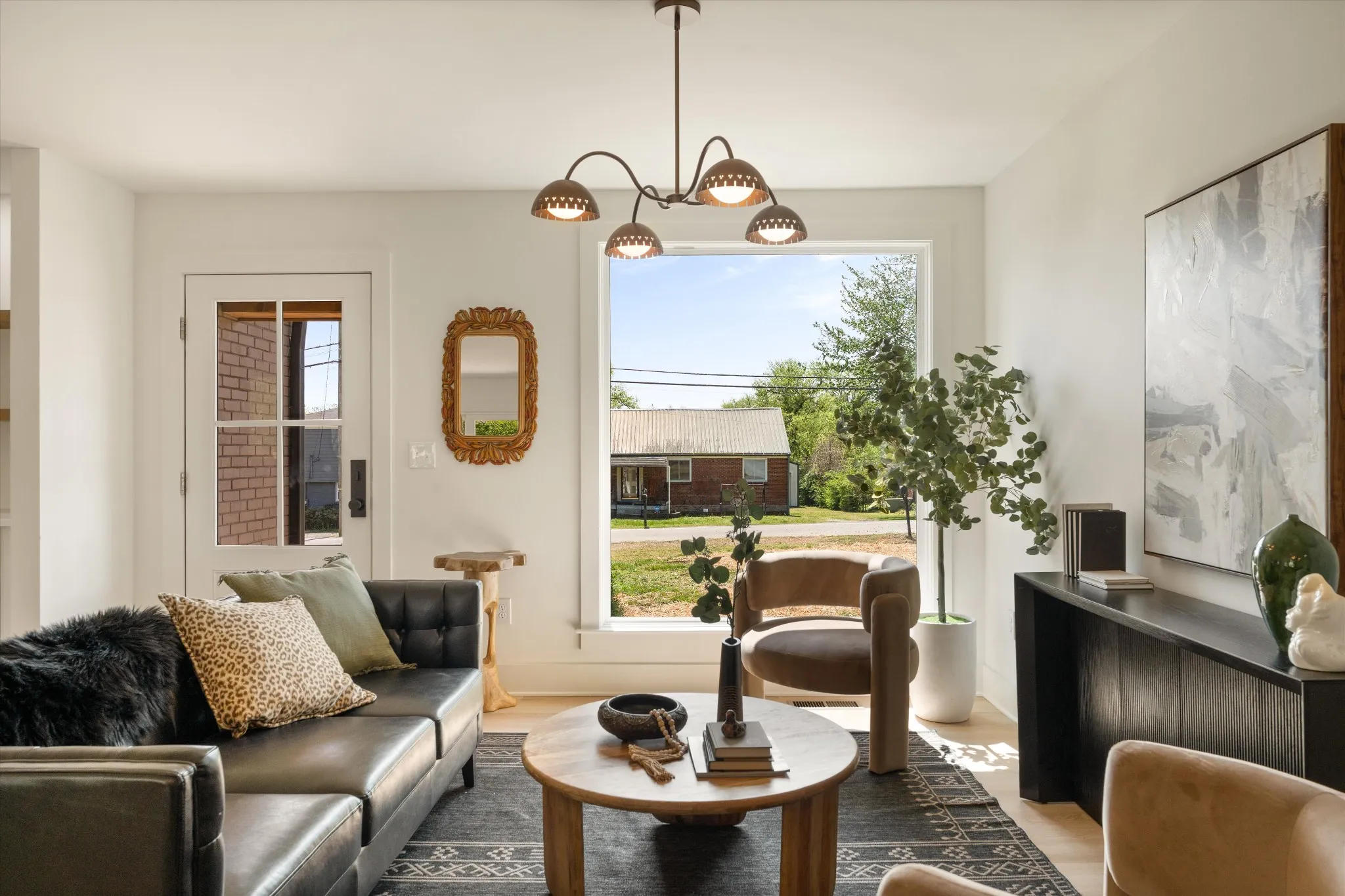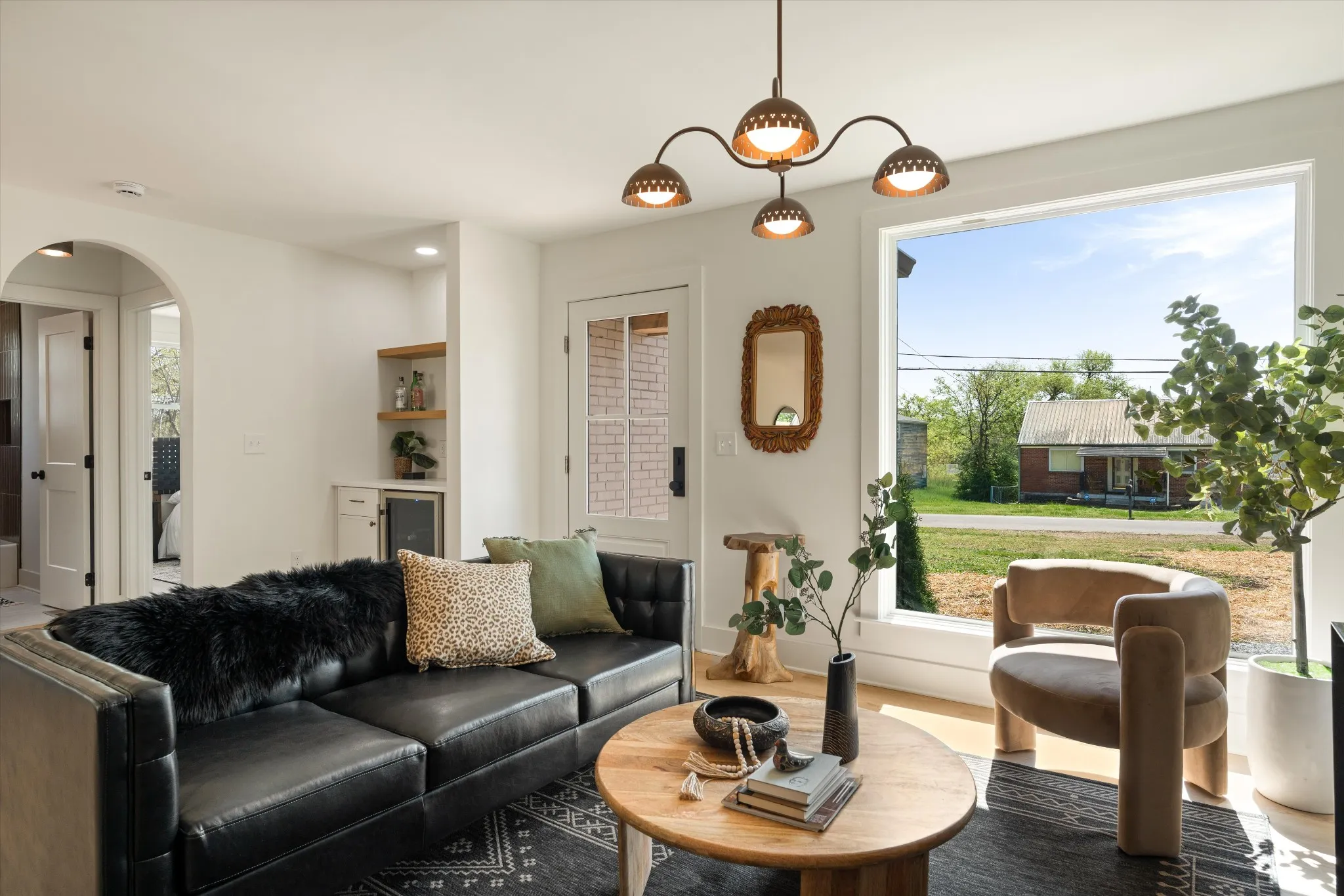 Charming. Elevated. Completely reimagined. Welcome to this beautifully renovated brick ranch in the heart of Madison, where thoughtful design meets everyday livability. Taken down to the studs and rebuilt with intention, this 3-bedroom, 2-bath home blends clean modern finishes with warm, inviting textures throughout. From the moment you arrive, the updated exterior sets the tone—fresh paint, rich wood accents, and a welcoming front entry that feels both timeless and elevated. Step inside to an open, light-filled layout where oversized windows pour in natural light, highlighting the soft neutral palette and wide-plank flooring that flows seamlessly throughout the home.