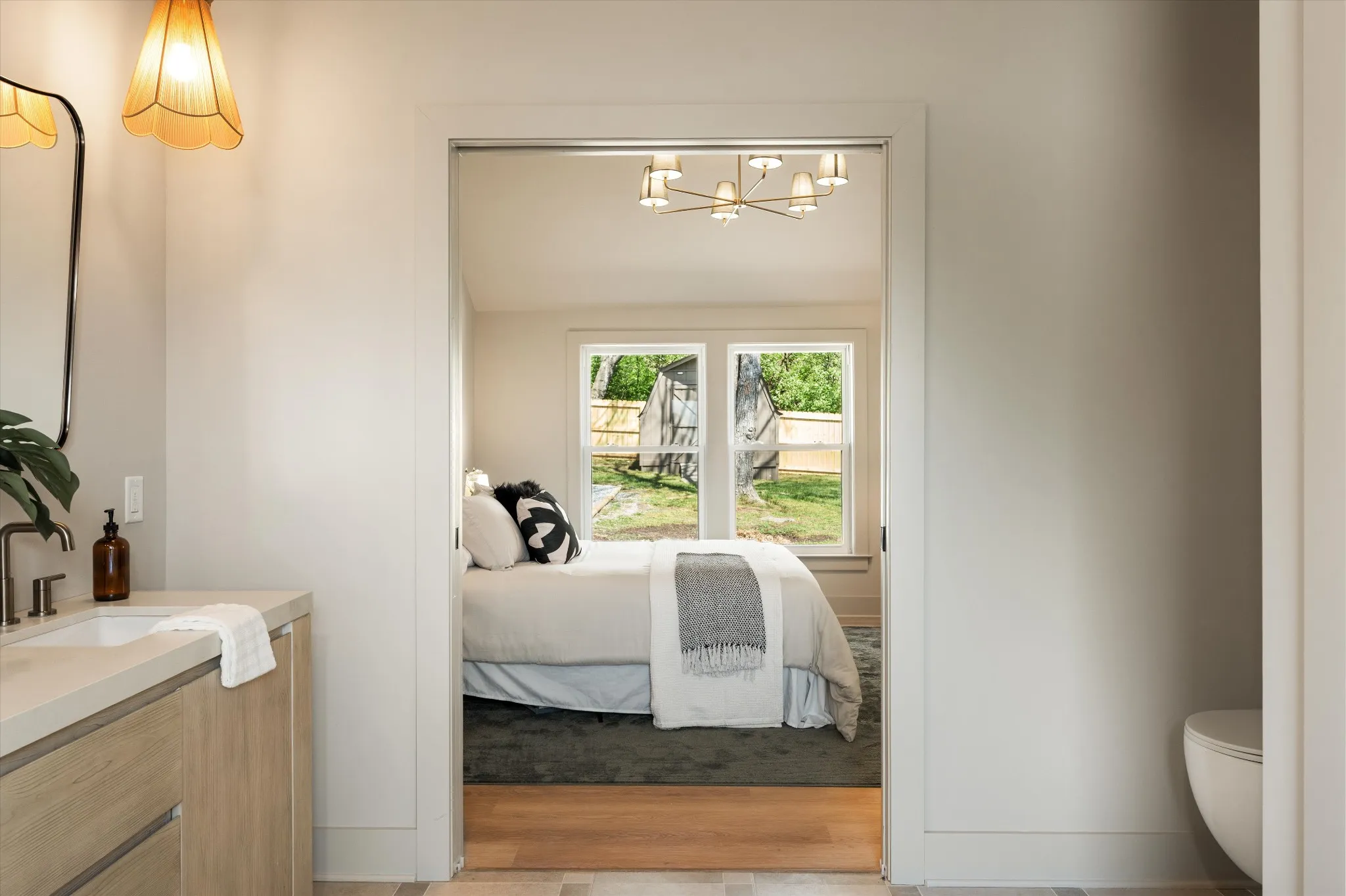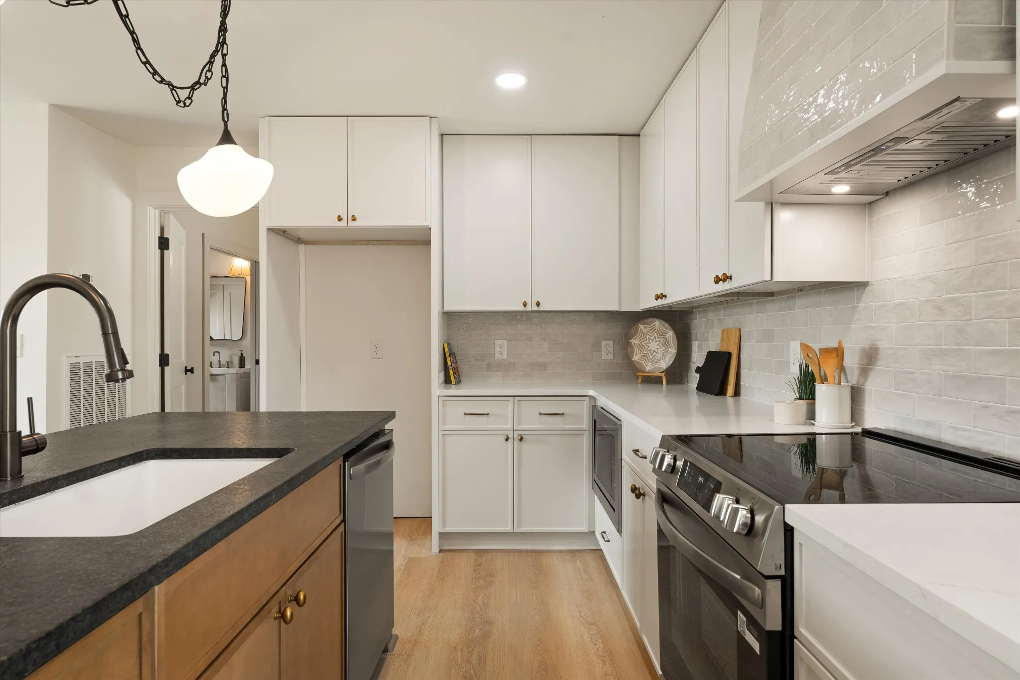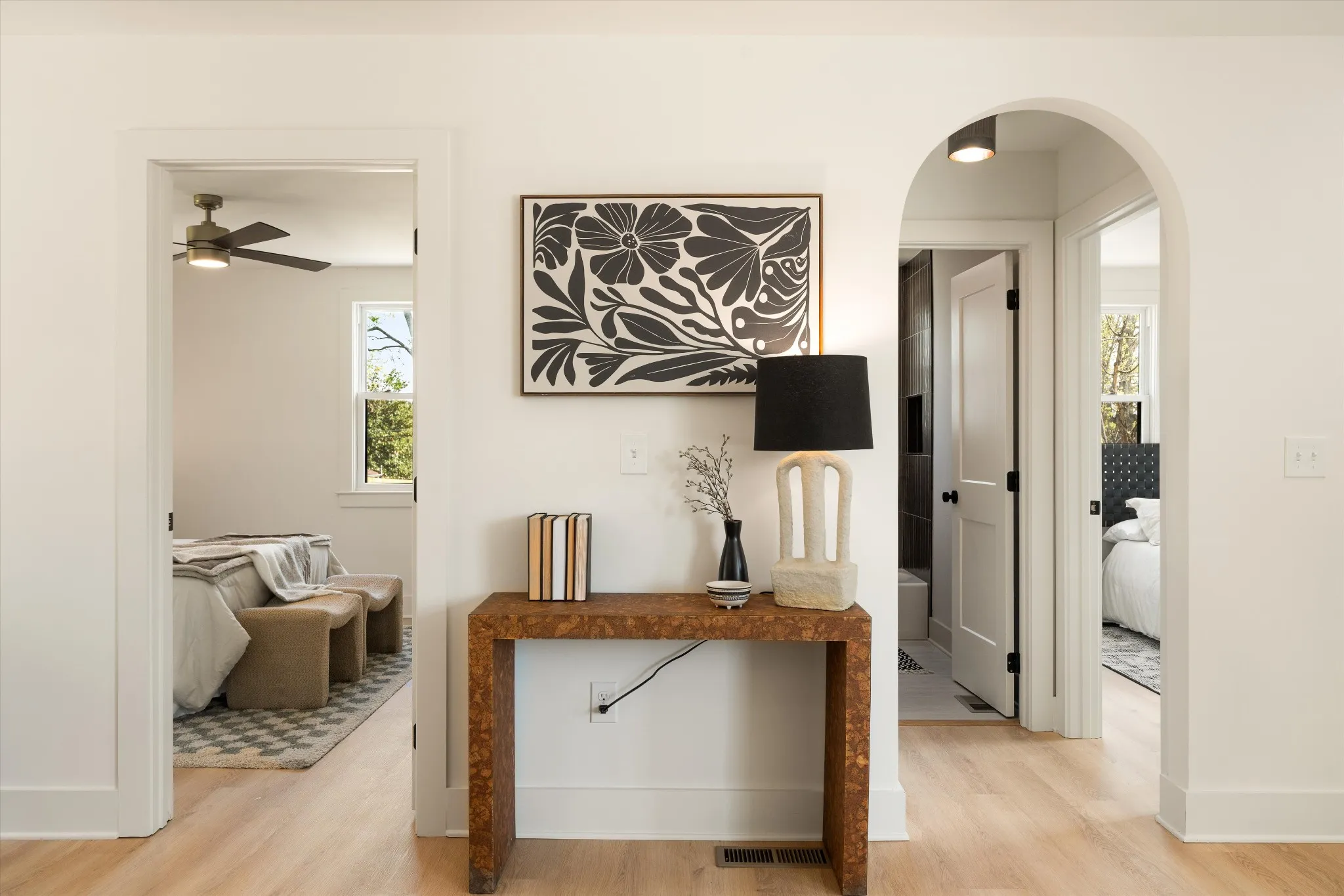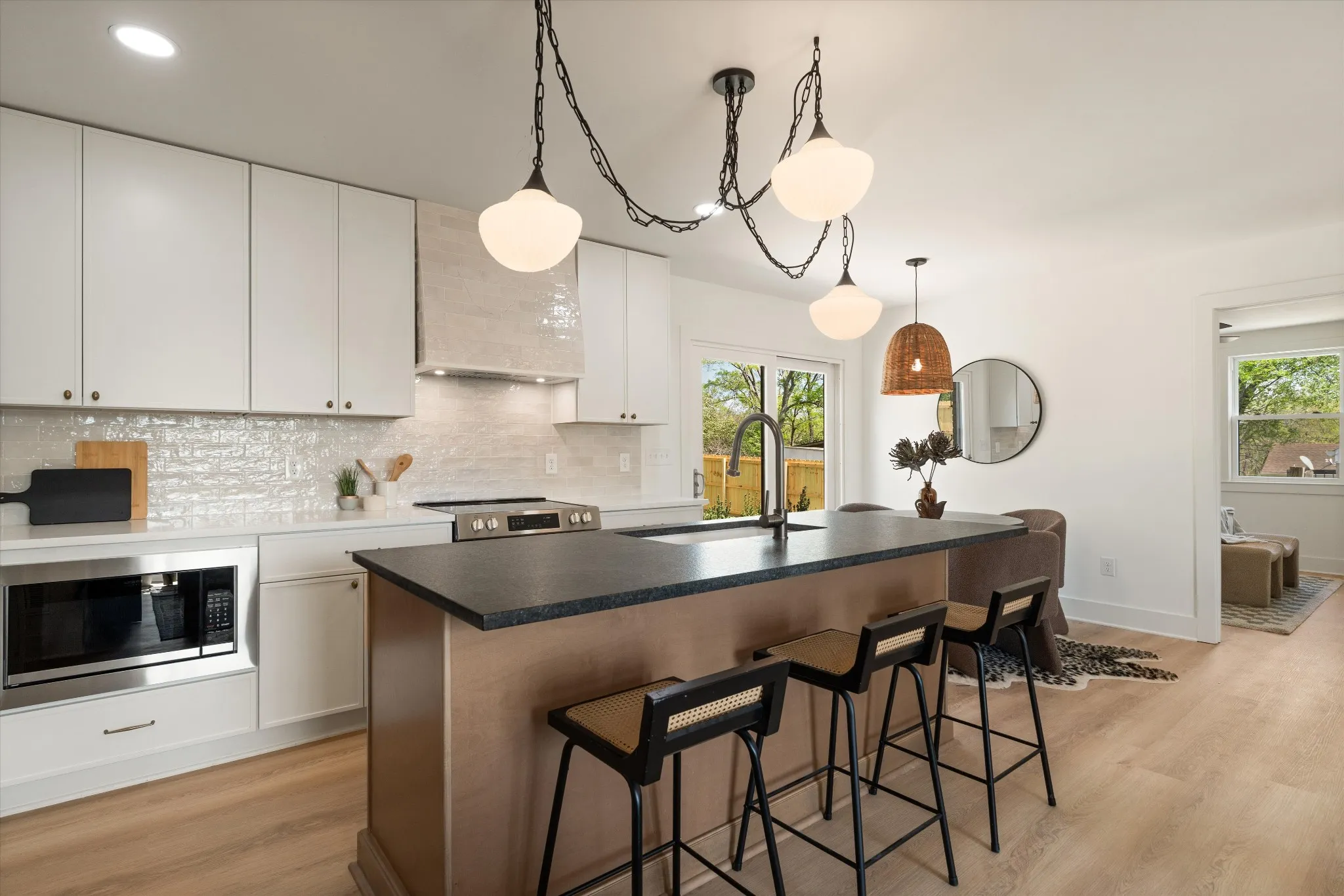 Charming. Elevated. Completely reimagined. Welcome to this beautifully renovated brick ranch in the heart of Madison, where thoughtful design meets everyday livability. Taken down to the studs and rebuilt with intention, this 3-bedroom, 2-bath home blends clean modern finishes with warm, inviting textures throughout. From the moment you arrive, the updated exterior sets the tone—fresh paint, rich wood accents, and a welcoming front entry that feels both timeless and elevated. Step inside to an open, light-filled layout where oversized windows pour in natural light, highlighting the soft neutral palette and wide-plank flooring that flows seamlessly throughout the home.
