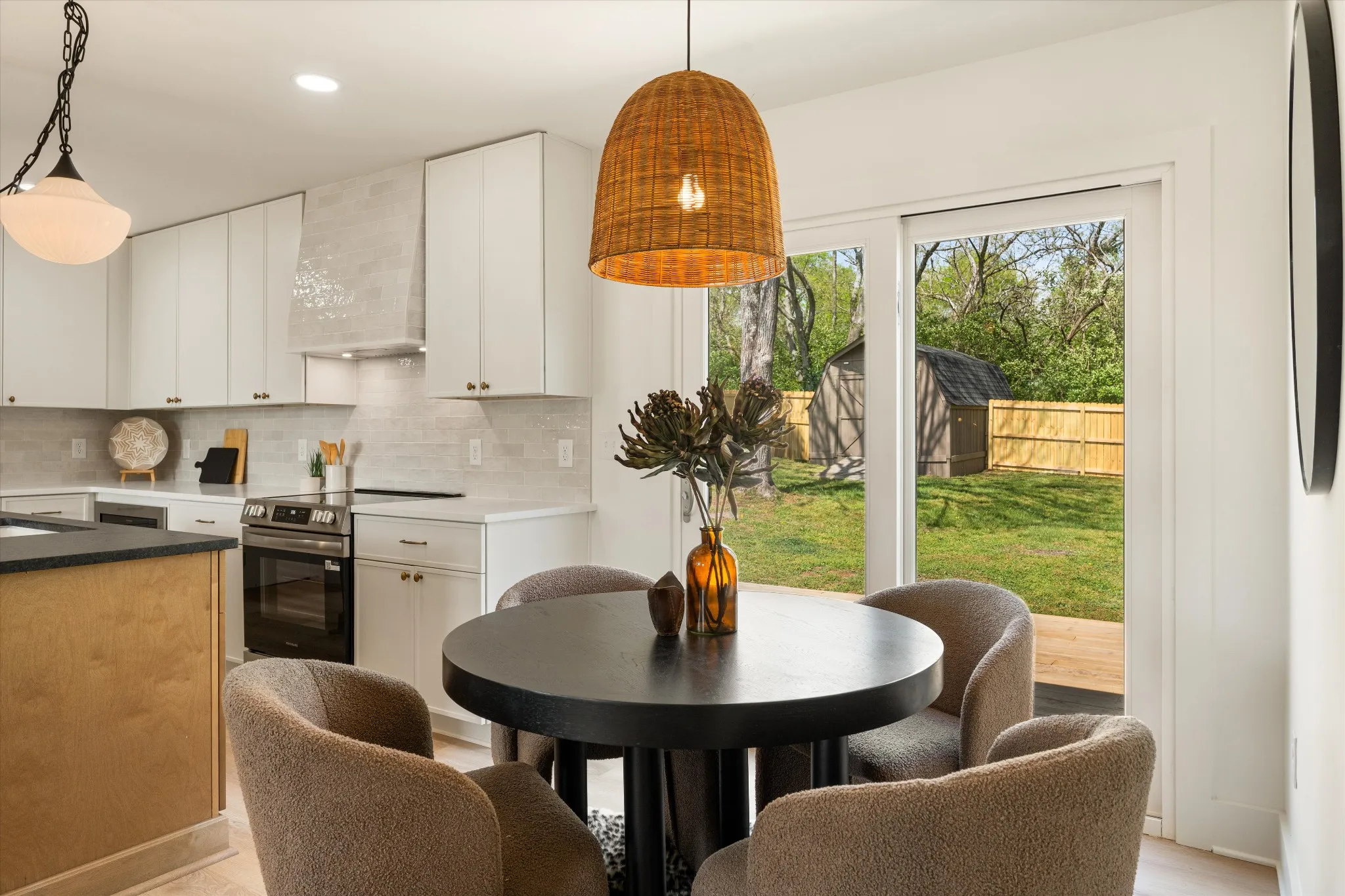 The kitchen is a standout, featuring custom cabinetry, sleek quartz countertops, a statement tile backsplash, and an oversized island perfect for gathering. Designer lighting and carefully curated finishes add depth and character without overwhelming the space. The primary suite is a true retreat, complete with a spa-like bathroom showcasing a stunning arched walk-in shower, dual vanity with warm wood tones, and elevated fixtures that feel straight out of a design magazine. Secondary bedrooms are spacious and bright, each thoughtfully designed with custom closet organization systems for maximum functionality. Step outside to a massive fully fenced backyard offering endless potential for entertaining, pets, or future additions. The back deck creates the perfect extension of living space, ideal for morning coffee or evening gatherings. Located just minutes from East Nashville dining, and local hotspots, this home offers the perfect balance of charm, convenience, and modern design. OPEN HOUSE THIS SUNDAY from 12-4pm