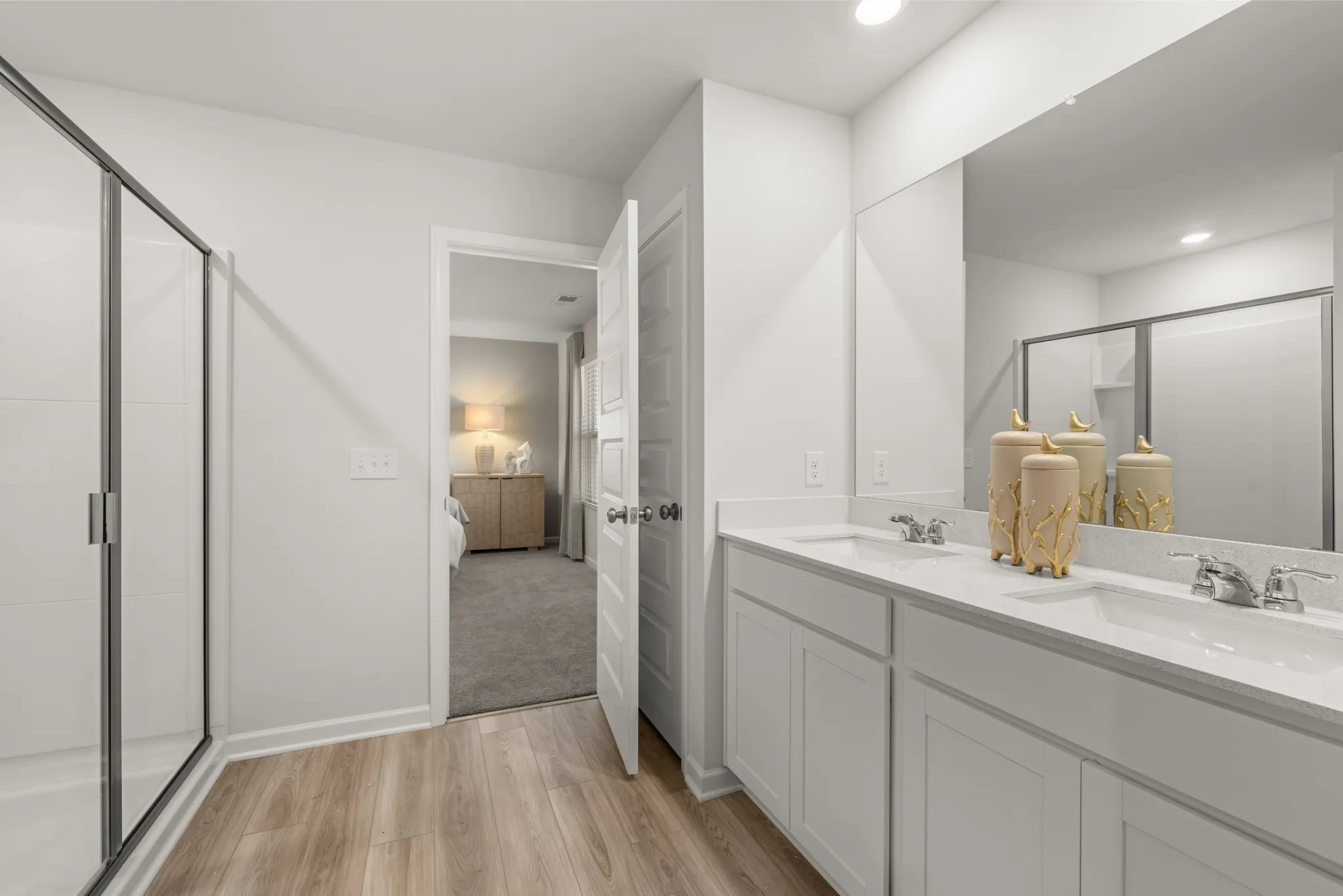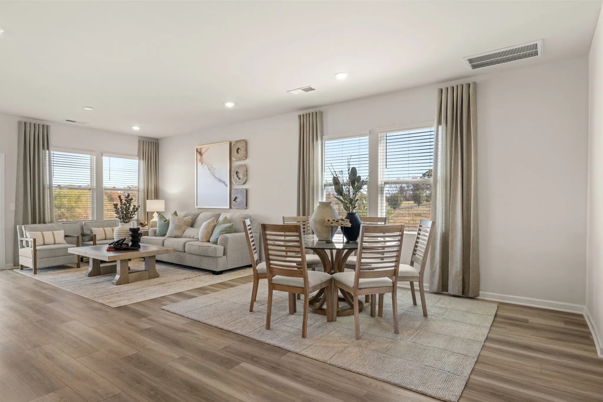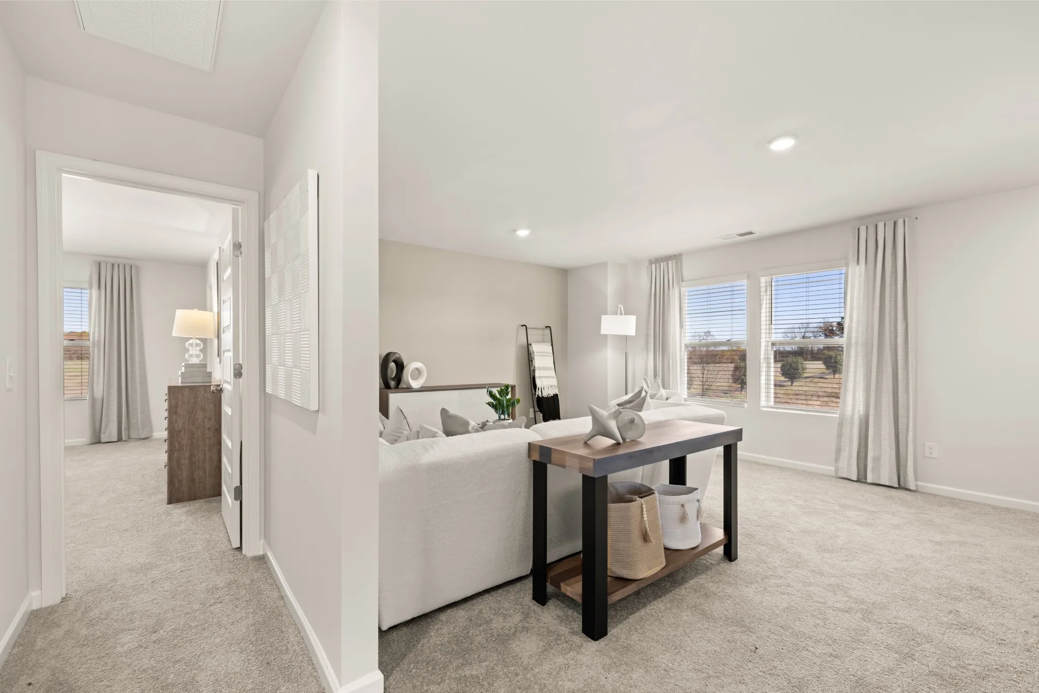 LOT #111 – Ironwood. This new two-story home features a pleasing contemporary design. At the heart of the first floor, the Great Room extends effortlessly to the dining room and modern kitchen in an open-plan layout. Flex space offers versatility. The second floor hosts a bonus room and four bedrooms including a spacious owner’s suite. *Images from a furnished model of this home. Actual configuration and features may vary.