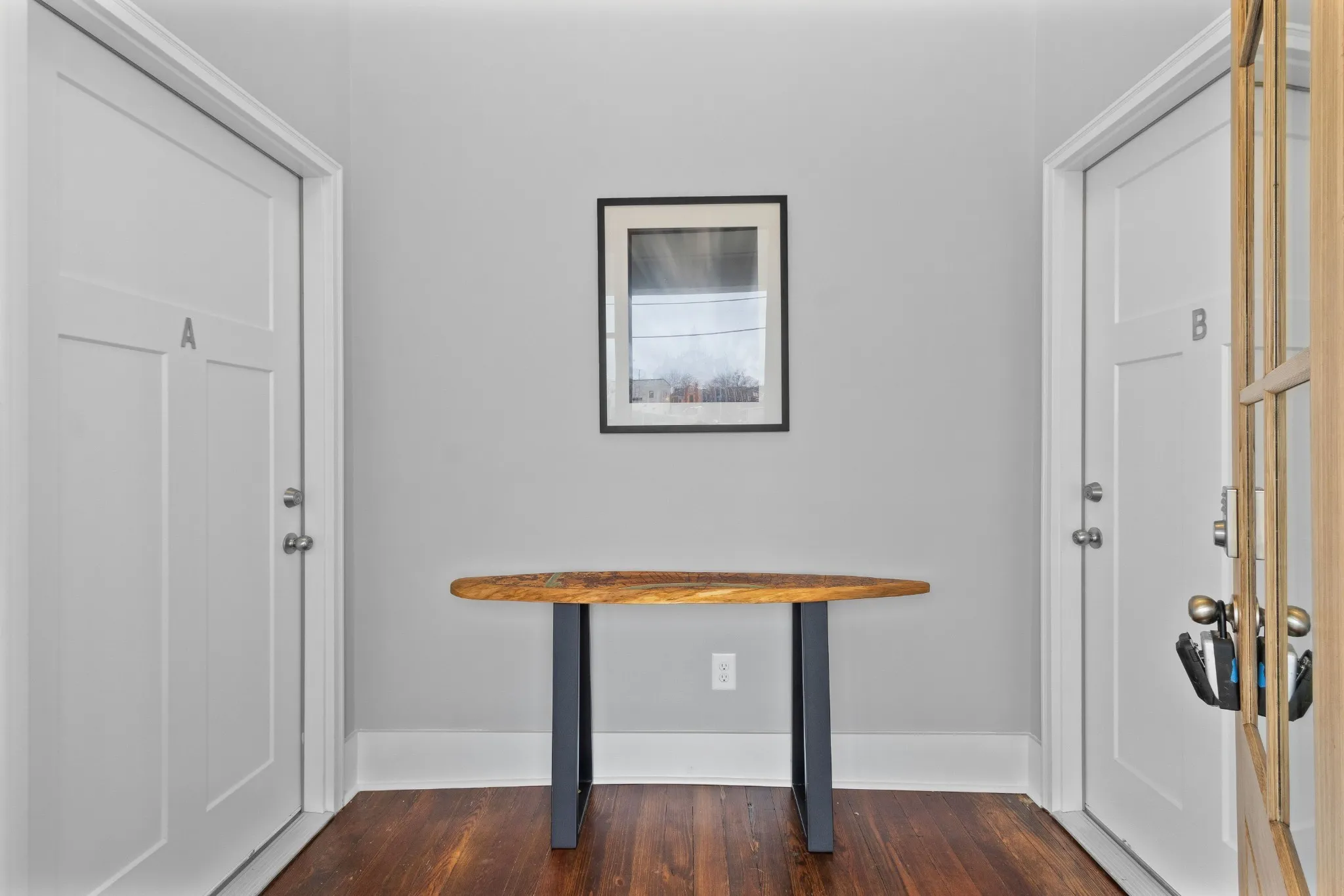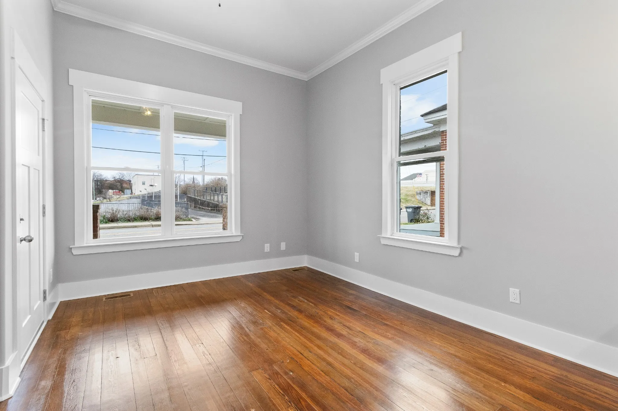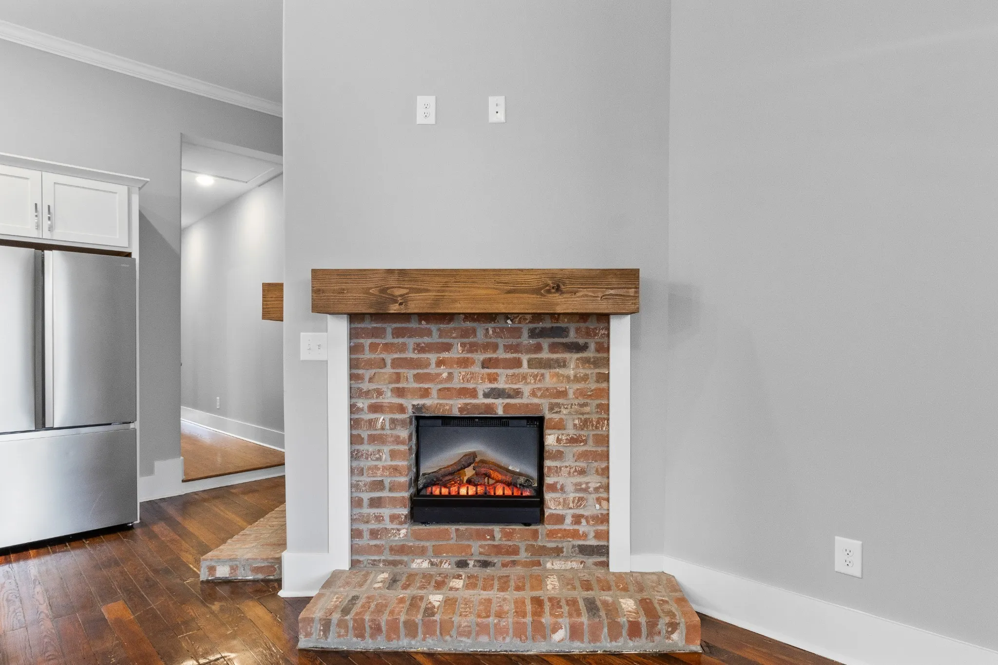 Newly Renovated Downtown Historic Duplex! 4 Corner Fireplace with electric insert. Stackable front loader Washer & Dryer provided.