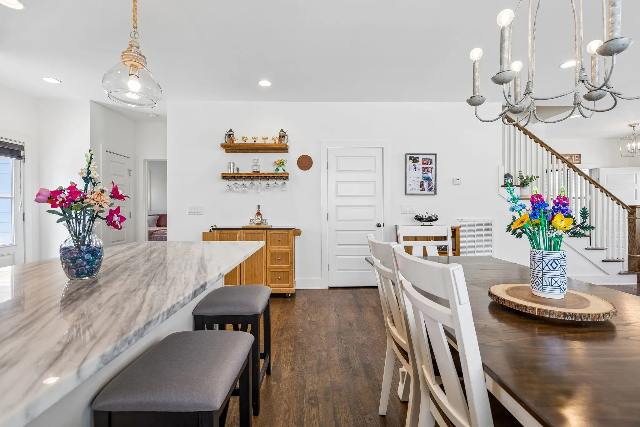 Beautifully maintained 4 bed, 3 bath home built in 2017 offering 2,649 sq ft of thoughtfully designed living space on a quiet street in Woodbine. This home features high-end finishes throughout, including quartzite countertops, hardwood floors, and a bright, open-concept layout ideal for both everyday living and entertaining. The chef’s kitchen is equipped with stainless steel appliances, a large island with seating, and ample cabinetry, flowing seamlessly into spacious living and dining areas filled with natural light. The primary suite is conveniently located on the main level and includes double vanities, a walk-in shower, and generous closet space. Additional bedrooms and flexible living areas provide room for guests, a home office, or bonus space. Enjoy outdoor living with a HUGE fully fenced-in backyard with privacy and plenty of room to relax, play, or entertain. Built in 2017, major systems (HVAC, roof, and water heater) are approximately 8.5 years old, and there is no HOA. Located just minutes from local favorites including Siam Cafe, Degthai, Edessa Restaurant, Taj Indian Restaurant, plus convenient to Woodbine Fresh Market, ALDI, Nashville Zoo at Grassmere, the Thompson Lane Library, and so much more. All appliances remain.
