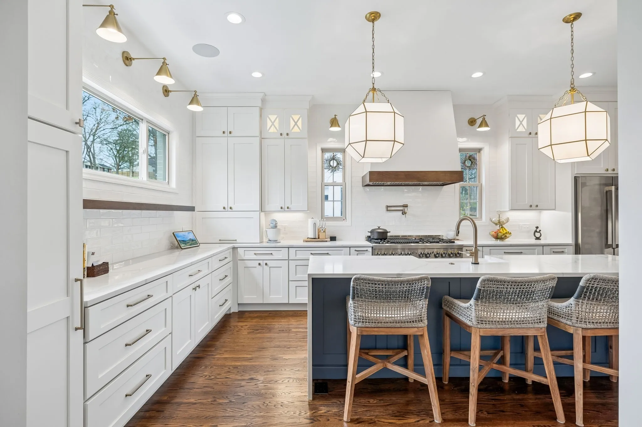 Nestled on a beautifully landscaped 0.91-acre corner lot in the highly sought-after West Meade neighborhood, this lovely 3 to 4 bedroom home blends timeless mid-century character with thoughtfully designed modern updates. At the heart of the home is a newly renovated gourmet chef’s kitchen truly made for entertaining and everyday living. The show-stopping space features a dramatic waterfall island, abundant custom storage, and expansive prep areas that make cooking effortless and enjoyable. Just beyond the kitchen, you’ll find a brand-new butler’s pantry and wet bar complete with a second dishwasher, creating the perfect setup for hosting gatherings both large and intimate. A beautiful new addition expands the living space with a light-filled dining area and great room featuring soaring vaulted ceilings. The wood-burning fireplace, highlighted by hand-laid stone, anchors the room and brings a warmth and character that immediately captures your heart. True to its mid-century design, the home offers distinctive privacy windows and an abundance of natural light, creating a bright and airy feel throughout while maintaining a sense of tranquility. The lower level provides exceptional versatility with a one-car garage bay, dedicated office or 4th bedroom, generous storage, and a spacious recreation room with laundry. From here, step outside to your own private patio retreat featuring a second wood-burning fireplace, perfect for cozy evenings or relaxed outdoor entertaining. With its beautiful setting, inspired renovations, and timeless architectural charm, this West Meade gem truly is a home where dreams become reality.