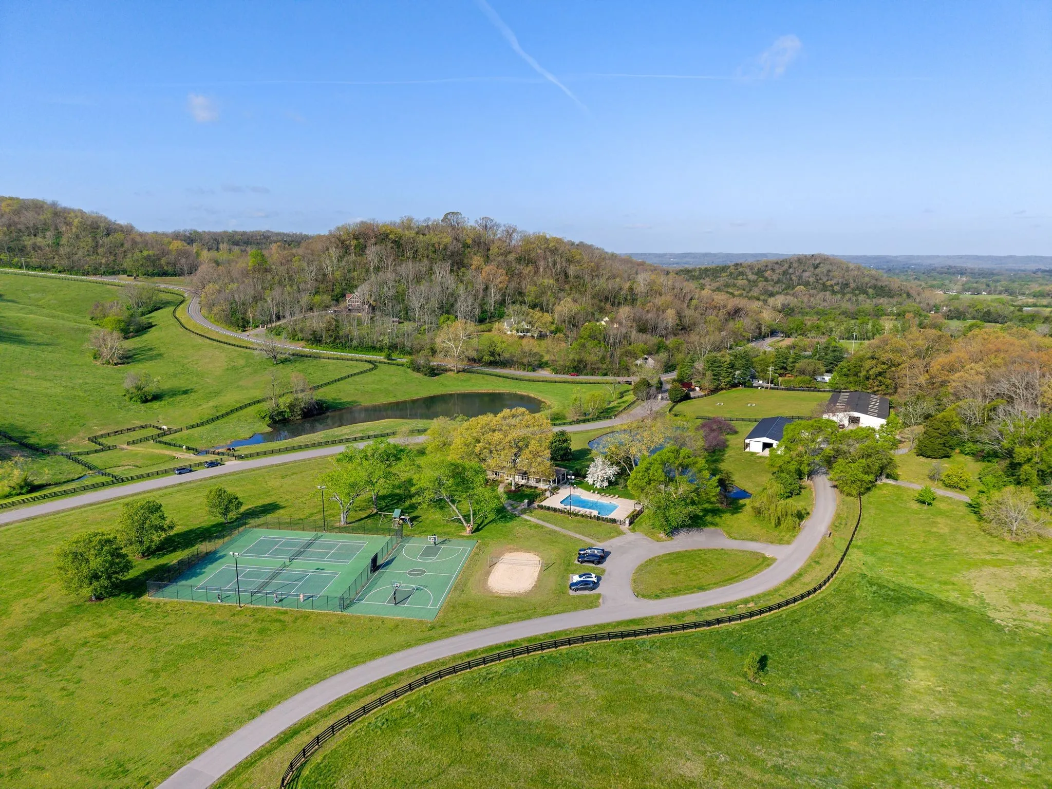 Residents enjoy access to clubhouse, pool, tennis & basketball courts, playgrounds, scenic trails, and stocked ponds, blending luxury with relaxed country living.