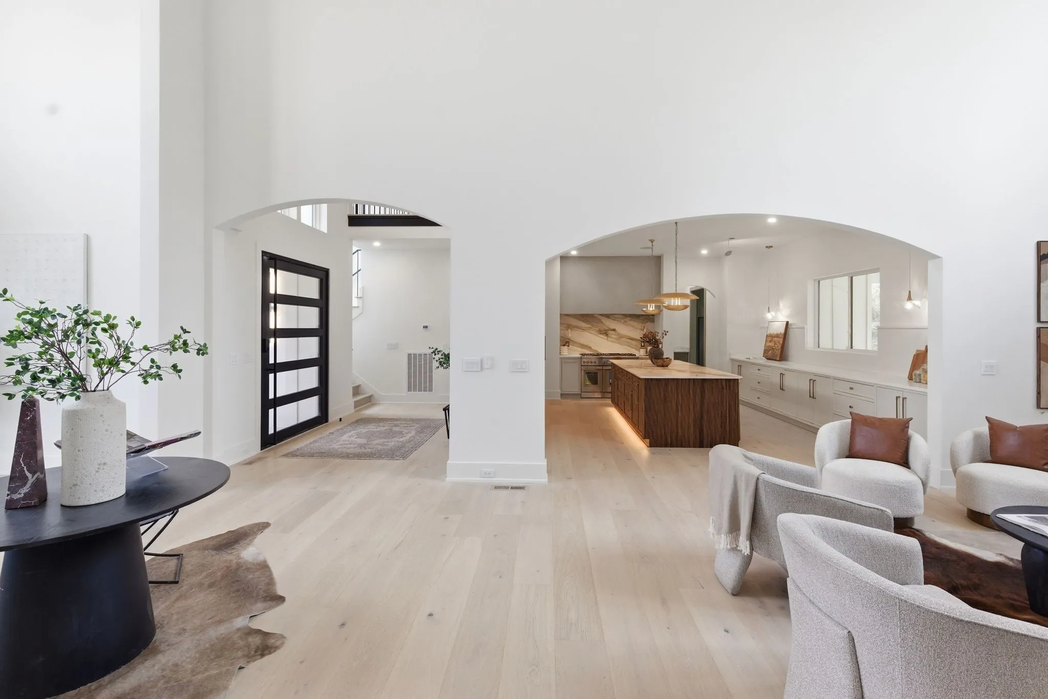Set on a breathtaking two-acre canvas, 6807 Pennywell is a masterful blend of timeless elegance and modern design. From the two-story stone-clad foyer to the soaring 25-foot ceilings in the main living space, every detail has been thoughtfully composed to inspire. The light-filled great room is anchored by one of three fireplaces and flows seamlessly into a bespoke chef’s kitchen featuring a fluted 12-foot island, full-slab backsplash with pot filler, panel-ready appliances, and a stunning scullery with diamond-pattern tile floors.