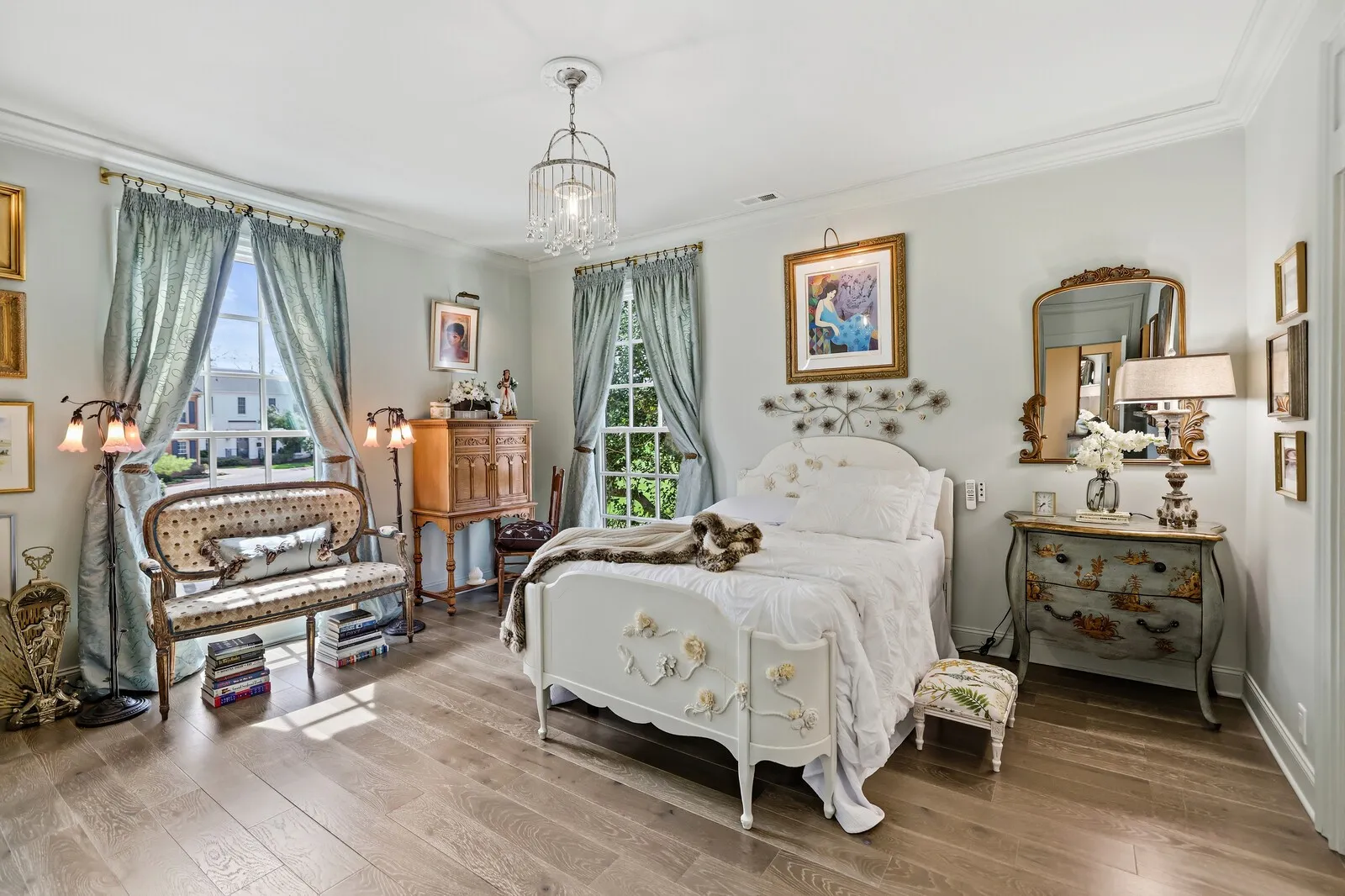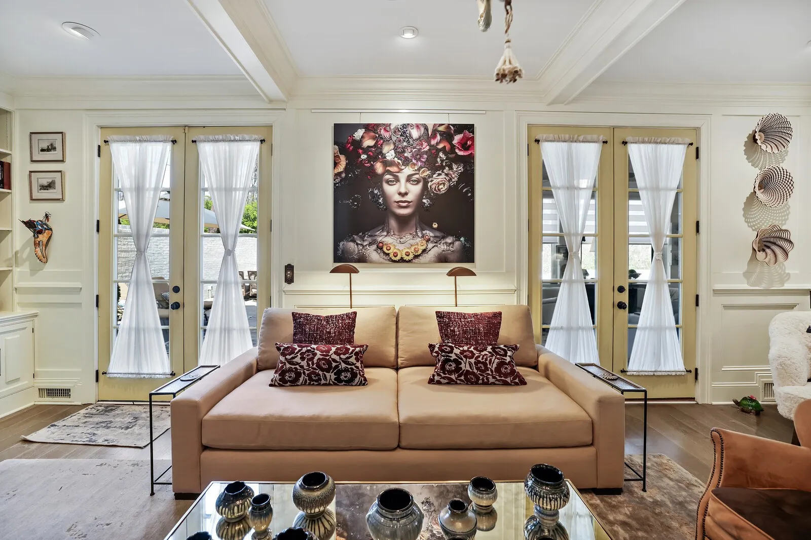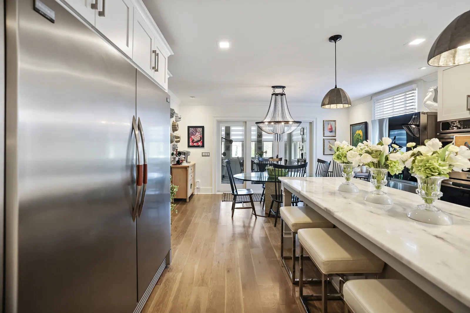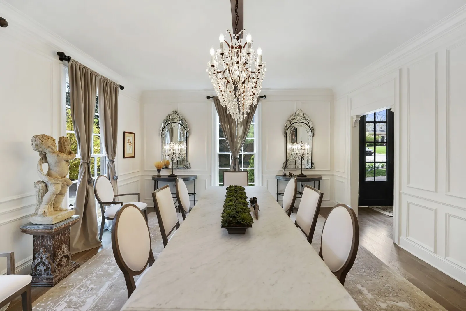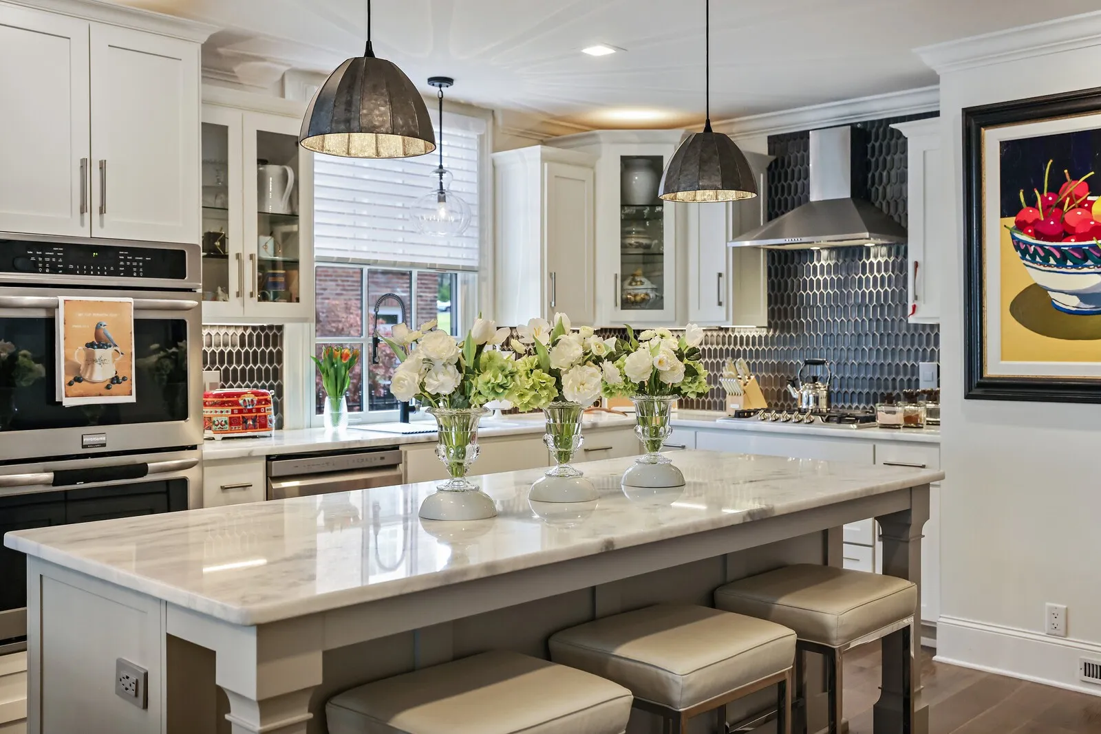 This extraordinary 6-bedroom, 4 full and 3 half bath residence offers over 6,000 square feet of refined living space, blending timeless elegance with thoughtful design at every turn. From the moment you enter, a grand staircase and stunning entryway set the tone for the craftsmanship found throughout, highlighted by Italian-imported hardware, designer lighting, and exquisite finishes. The formal dining room is a true showpiece, featuring a sparkling chandelier and three oversized windows that fill the space with natural light. A sophisticated sitting room with coffered ceilings, cozy fireplace, and a full wet bar nearby, creates the perfect setting for entertaining, while the main living room offers a second fireplace framed by custom built-in bookcases. The kitchen is both functional and beautiful, complete with a large island, stainless steel appliances, and an eat-in dining area. Just beyond, a sunny Florida room opens to the patio, seamlessly blending indoor and outdoor living. Each bedroom suite is thoughtfully designed, offering comfort and privacy. The primary suite is a true retreat, featuring a private office, a luxurious en-suite bath with dual vanities and a stunning tile shower, and a custom walk-in closet. The laundry room stands out with its eye-catching backsplash and elevated design. One of the home’s most unique features is the top-floor “Birdsnest Suite,” located at the front of the home. This private space includes a full bathroom, kitchen area, skylight, and its own laundry, ideal for guests, extended family, or a private studio. Additional highlights include elevator access, a spacious basement with additional guest accommodations, a sunny patio, and an attached 2-car garage. Furnishings are negotiable, offering the opportunity for a truly move-in ready luxury experience. This stunning home delivers space, style, and versatility in every detail. Up to 1% lender credit on the loan amount when buyer uses Seller’s Preferred Lender.