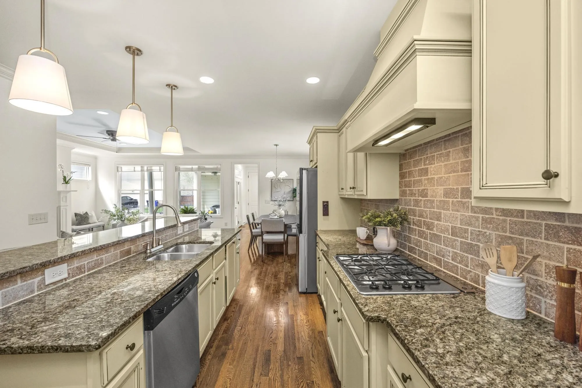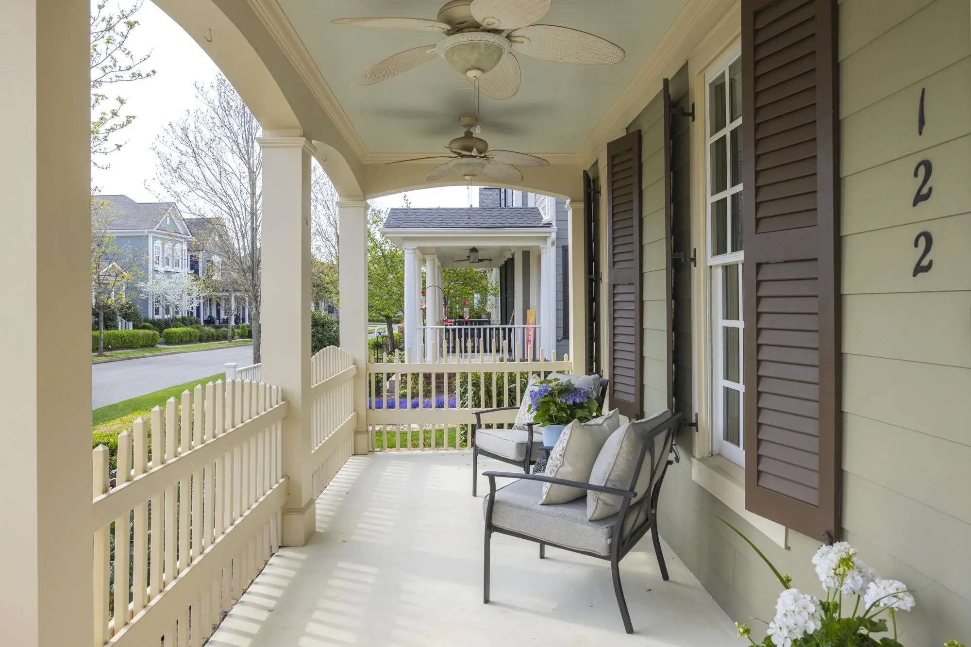 Welcome to this storybook Westhaven jewel, wonderfully located on an idyllic tree-lined street, just a stroll away from the vibrant Town Center. A well maintained gracious home awaits you! The entry foyer, showcasing a beautiful staircase, gives you a glimpse of true hardwood floors, tall ceilings, and fine craftsmanship. Freshly painted throughout, this home provides a delightful floor plan with a main level primary suite and an open spacious den/dining/kitchen design. Gather your family around the den fireplace for tv watching, lively conversation and game nights. The cook in the family will enjoy a well designed kitchen which offers a gas cooktop, an abundance of cabinetry, and an expansive granite raised bar, perfect for serving morning breakfast or overseeing homework. The seller has upgraded the primary bath with a stylish oversized tiled walk-in shower in the bath. Upstairs features three additional nicely sized bedrooms, two baths, and the ultimate spot for a playroom. Mom can keep an eye and ear on everybody, but the toys stay out of sight! 122 Fitzgerald Street boosts three inviting porches: a covered front porch for neighbor visits, a private covered patio for morning coffee, and a new trek rooftop deck overlooking the pretty streetscape. Your furry friends will enjoy is a lushly manicured fenced side yard. Westhaven, one of the most thoughtfully developed communities in Tennessee, offers unparalleled amenities: several pools, clubhouse, sidewalks, tennis courts, lake activities, walking trails, and neighborhood events. The Town Center has literally everything you need: groceries, restaurants, medical offices, post office, shopping, spas, cleaners and more! Schedule a showing and see why you will want to live here! OPEN SUNDAY, April 12th, 2-4. New roof 2024, New H2O tank 2023, New Washer, Dryer and Refrigerator to remain.