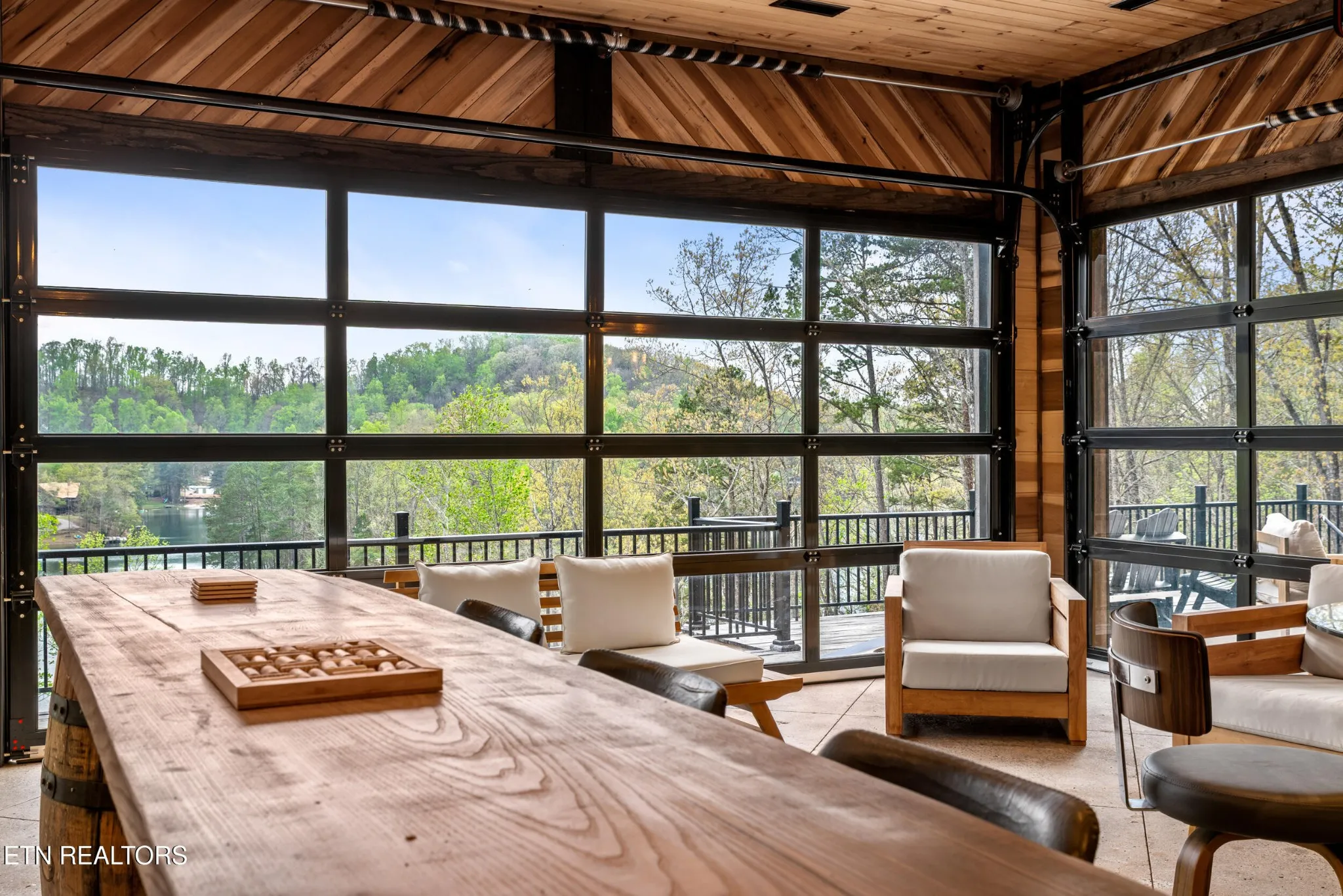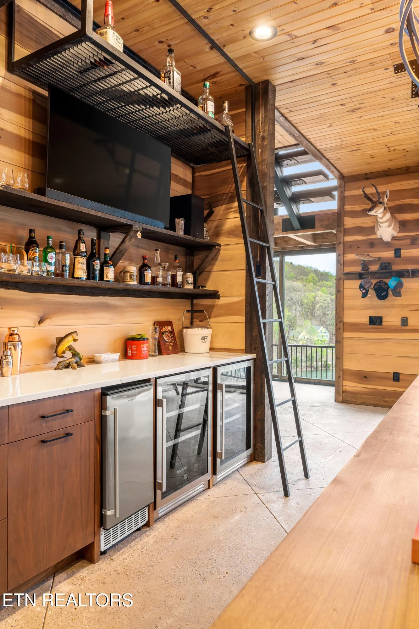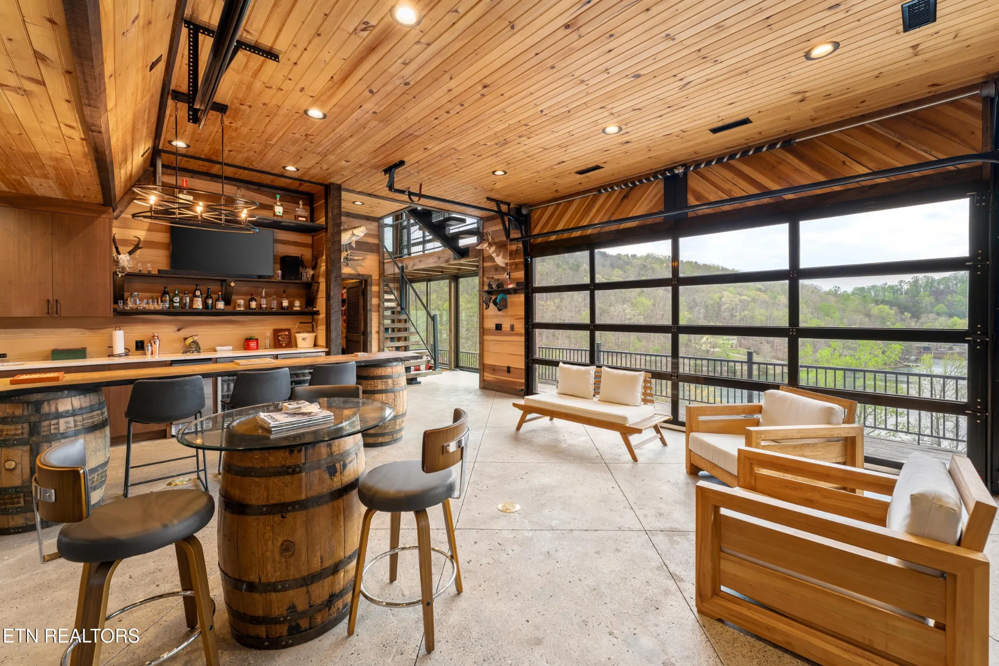 Designed specifically for the ultimate entertainer, the home’s layout ensures the incredible lake and mountain views are never out of sight. The heart of the house is a massive gourmet kitchen with high-end finishes that flows seamlessly into the living areas, but the true showstopper is the innovative outdoor living space. The massive Red Oak decks feature a full wet bar and a revolutionary system of automatic windows that can be lowered during cooler months, allowing you to enjoy the fresh air and scenery year-round without sacrificing comfort. Whether you are hosting a tasting in the full-scale wine cellar or relaxing in the versatile loft area, the home feels intimately connected to its environment.