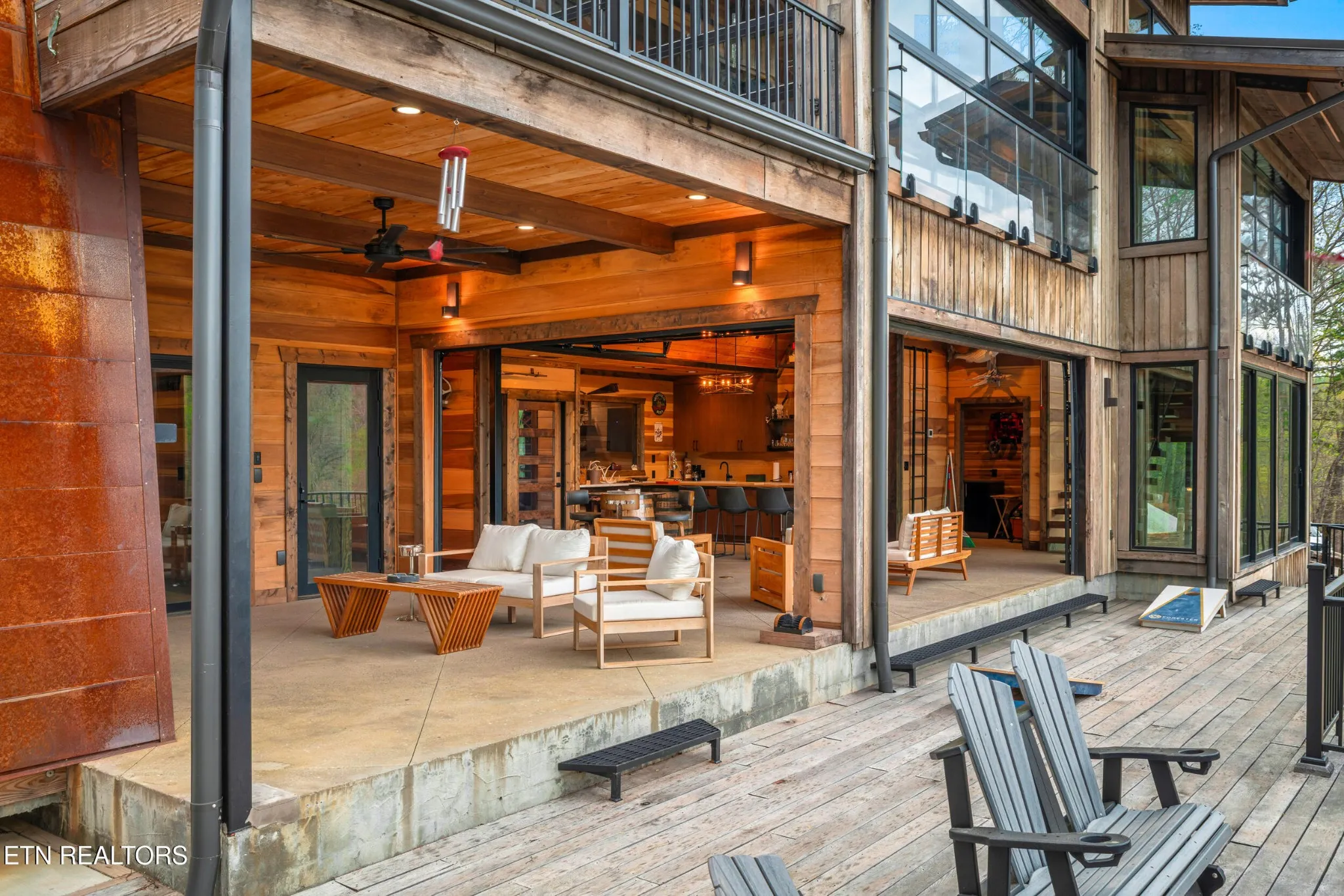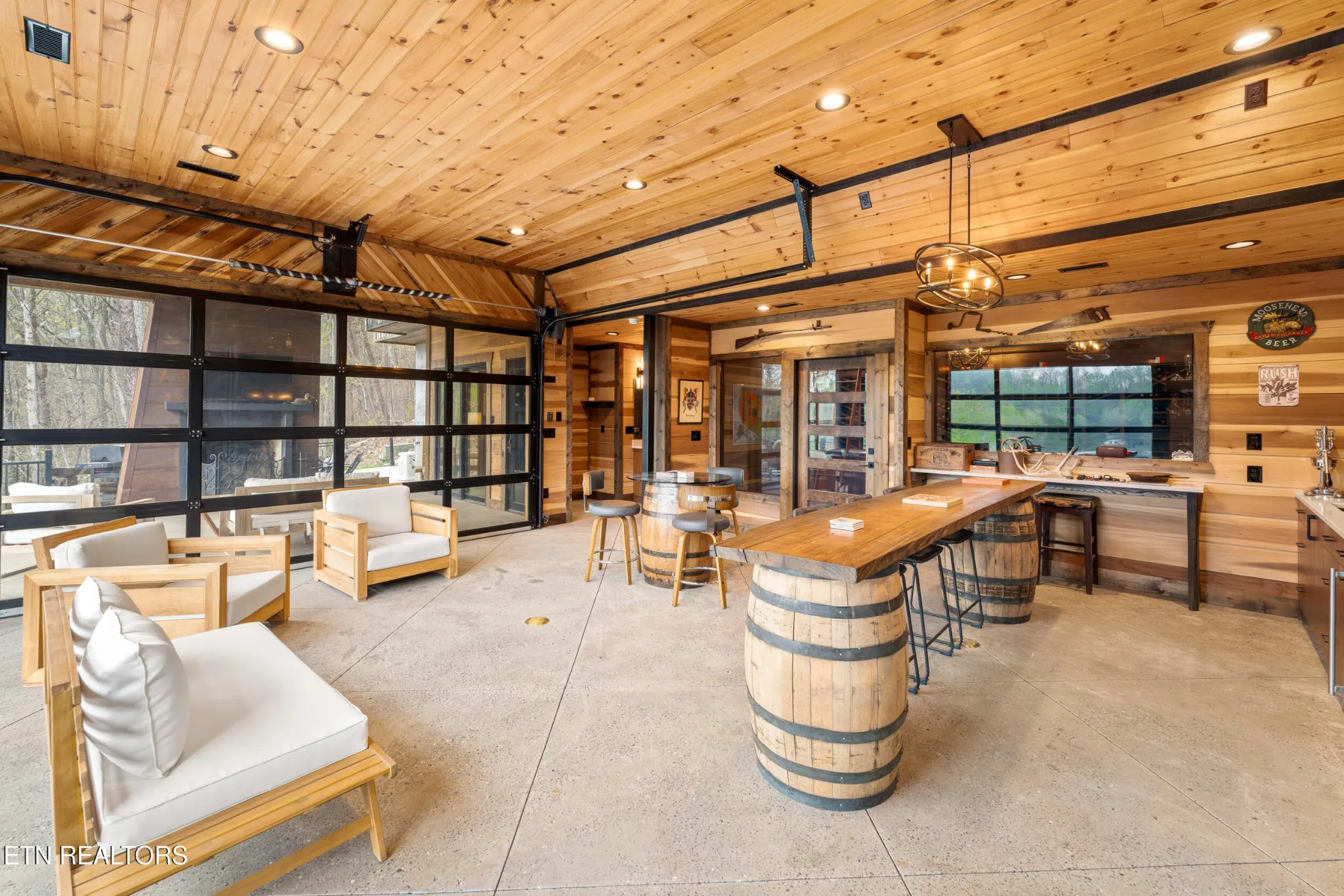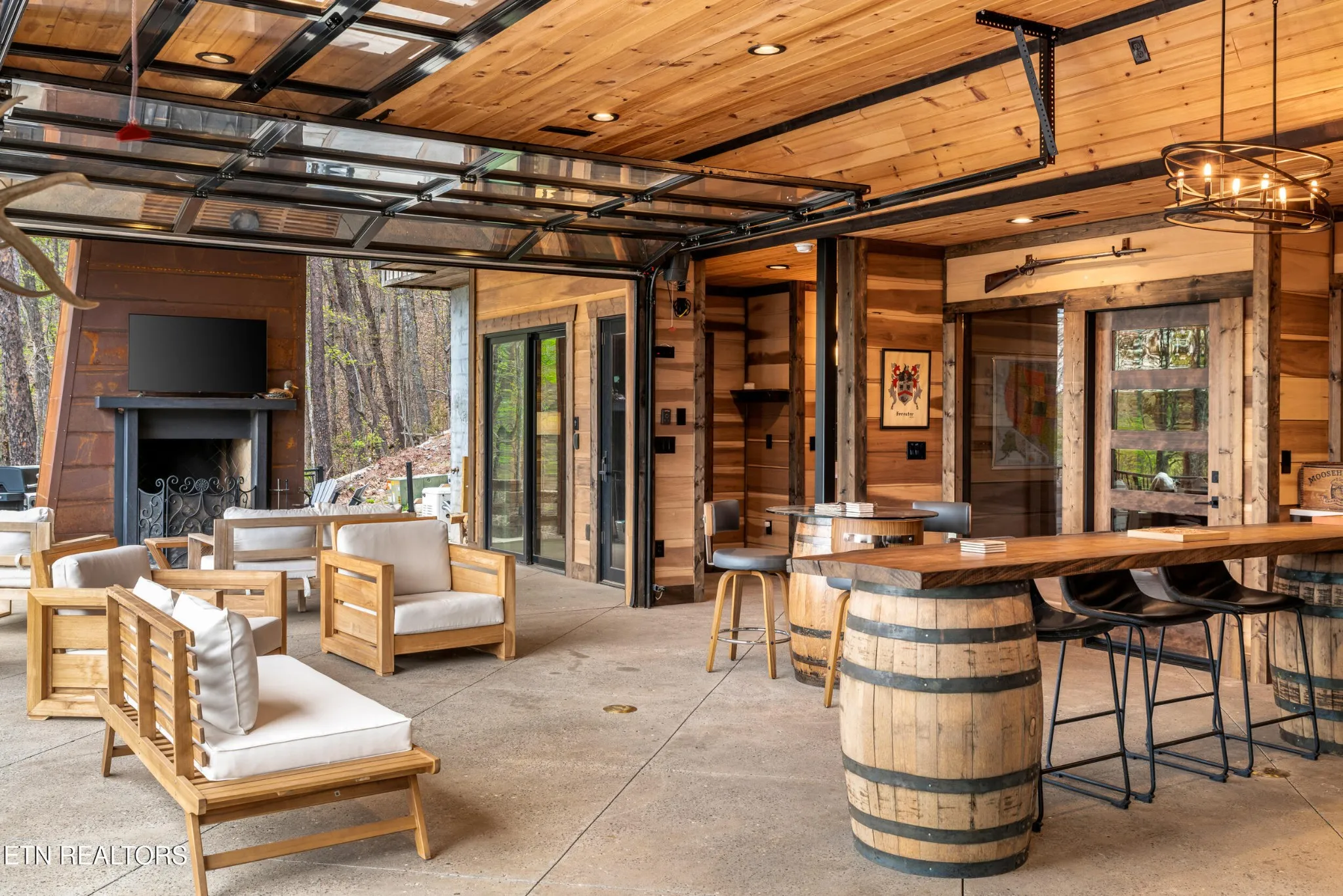 Designed specifically for the ultimate entertainer, the home’s layout ensures the incredible lake and mountain views are never out of sight. The heart of the house is a massive gourmet kitchen with high-end finishes that flows seamlessly into the living areas, but the true showstopper is the innovative outdoor living space. The massive Red Oak decks feature a full wet bar and a revolutionary system of automatic windows that can be lowered during cooler months, allowing you to enjoy the fresh air and scenery year-round without sacrificing comfort. Whether you are hosting a tasting in the full-scale wine cellar or relaxing in the versatile loft area, the home feels intimately connected to its environment.