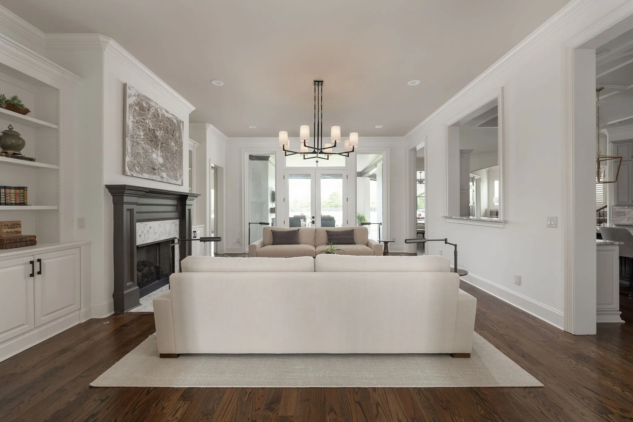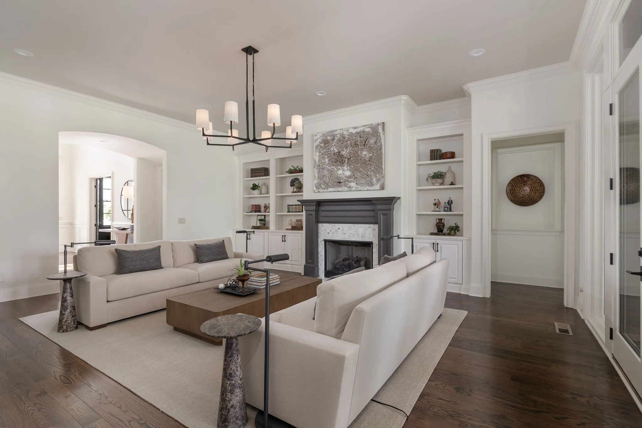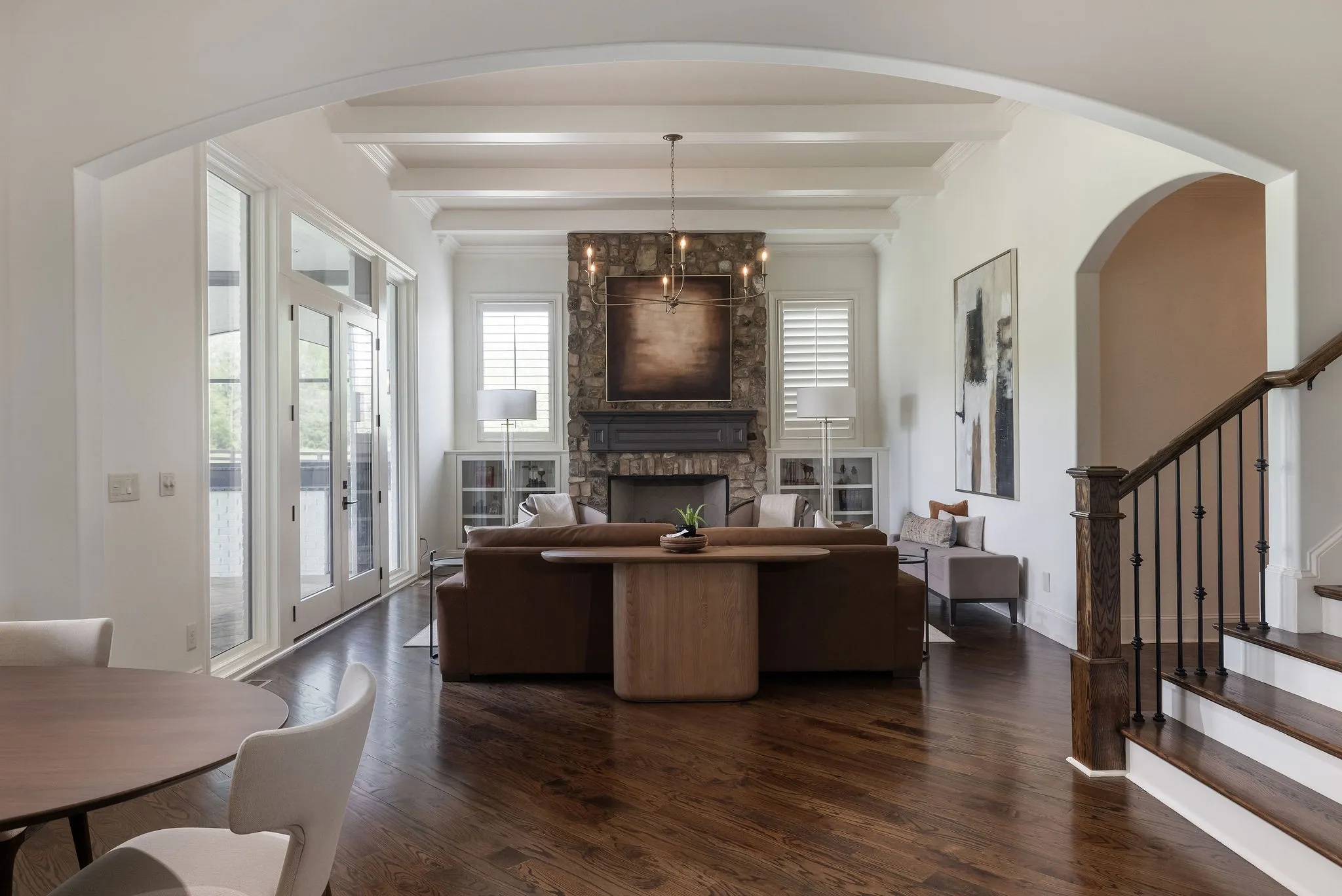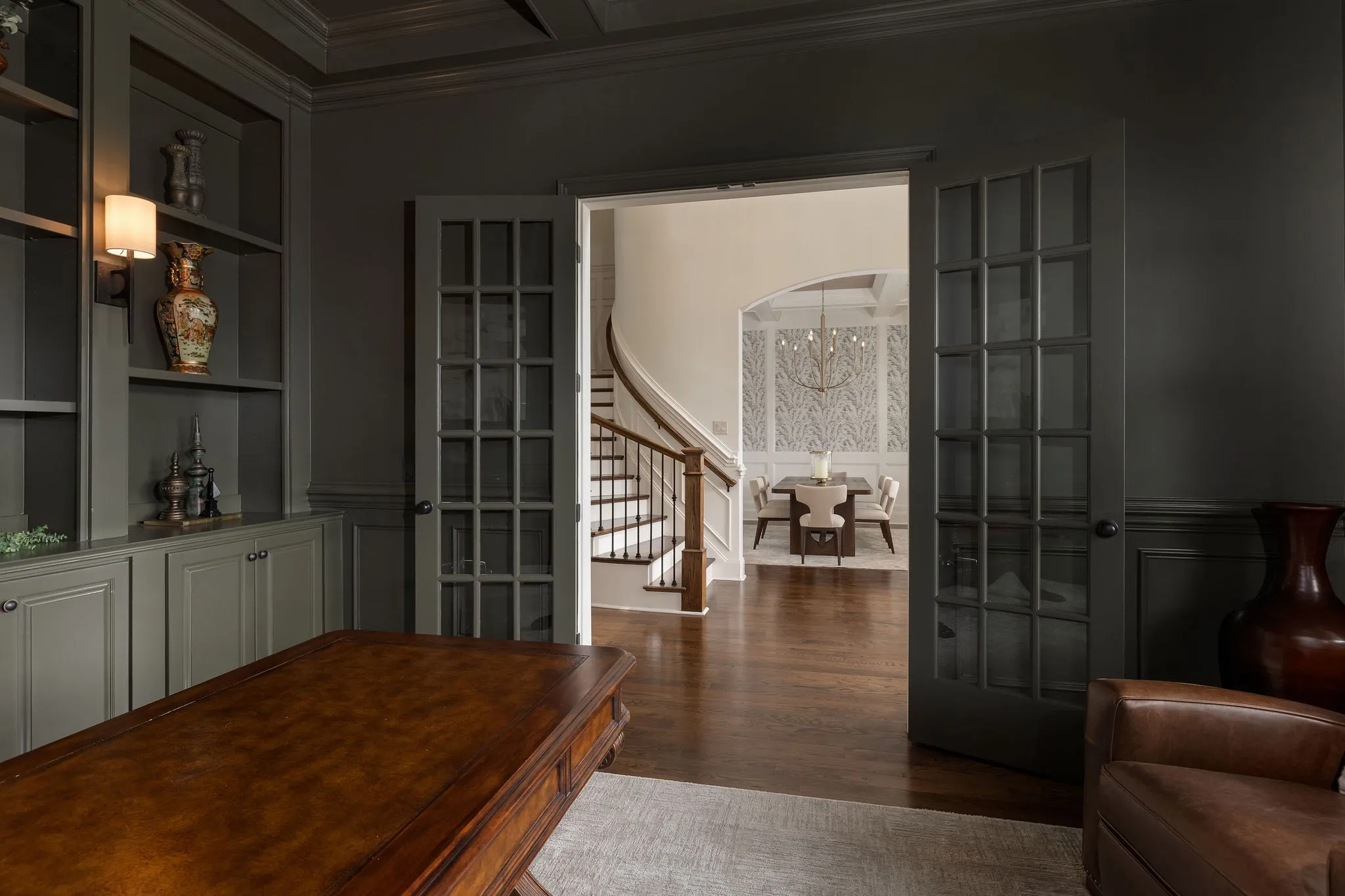 Stunning renovation located in the sought-after Hillsboro Cove community, just a short drive from Historic Downtown Franklin. Situated on over an acre, this meticulously crafted residence offers 5 bedrooms and 5.5 baths, with the primary and guest suites conveniently located on the main level. The heart of the home is the upgraded Chef’s Kitchen, featuring a striking barrel ceiling, Visual Comfort lighting, Kitchen Aid appliances, oversized Island, a hidden office/pantry, and ample storage. Thoughtfully designed for both comfort and entertaining, the main level boasts an elegant dining room with Cole and Son wallpaper, color-drenched office with coffered ceilings and built-ins, spacious living room, a cozy den with stone fireplace, built-ins and bar area. Hardwood Floors throughout the main level. Upstairs, a spacious rec room, flex space, and a theater room provide endless opportunities for relaxation and fun. Step outside to an inviting covered patio, perfect for year-round outdoor living. Enjoy al fresco dining with a built-in gas grill, gather around the fireplace on cool evenings, and take advantage of retractable screens for ultimate comfort. With four garage spaces, abundant closet and storage space, and zoning for Williamson County’s top-rated schools, this exceptional home is truly a must-see! Pool plans designed by JSLA Designs and available upon request!