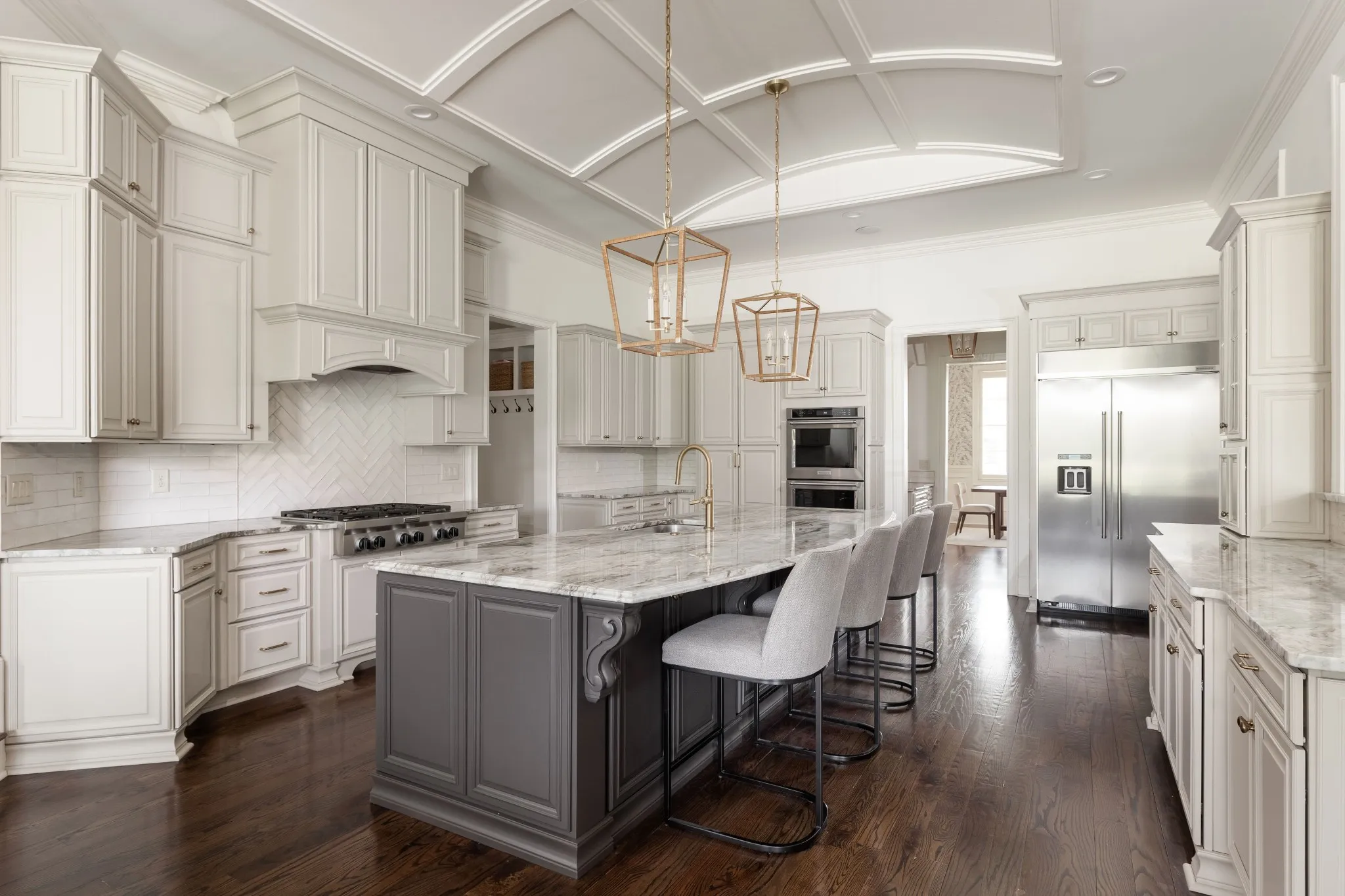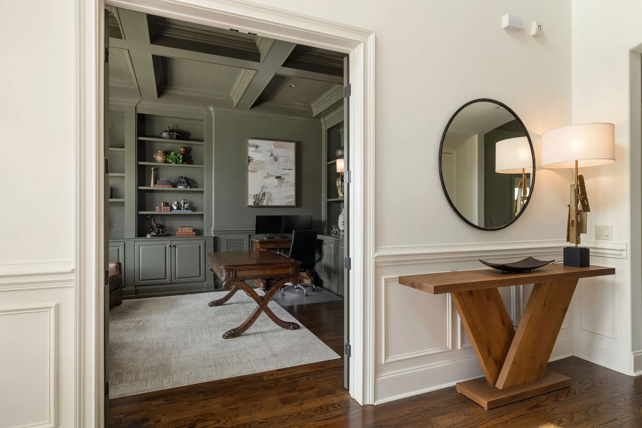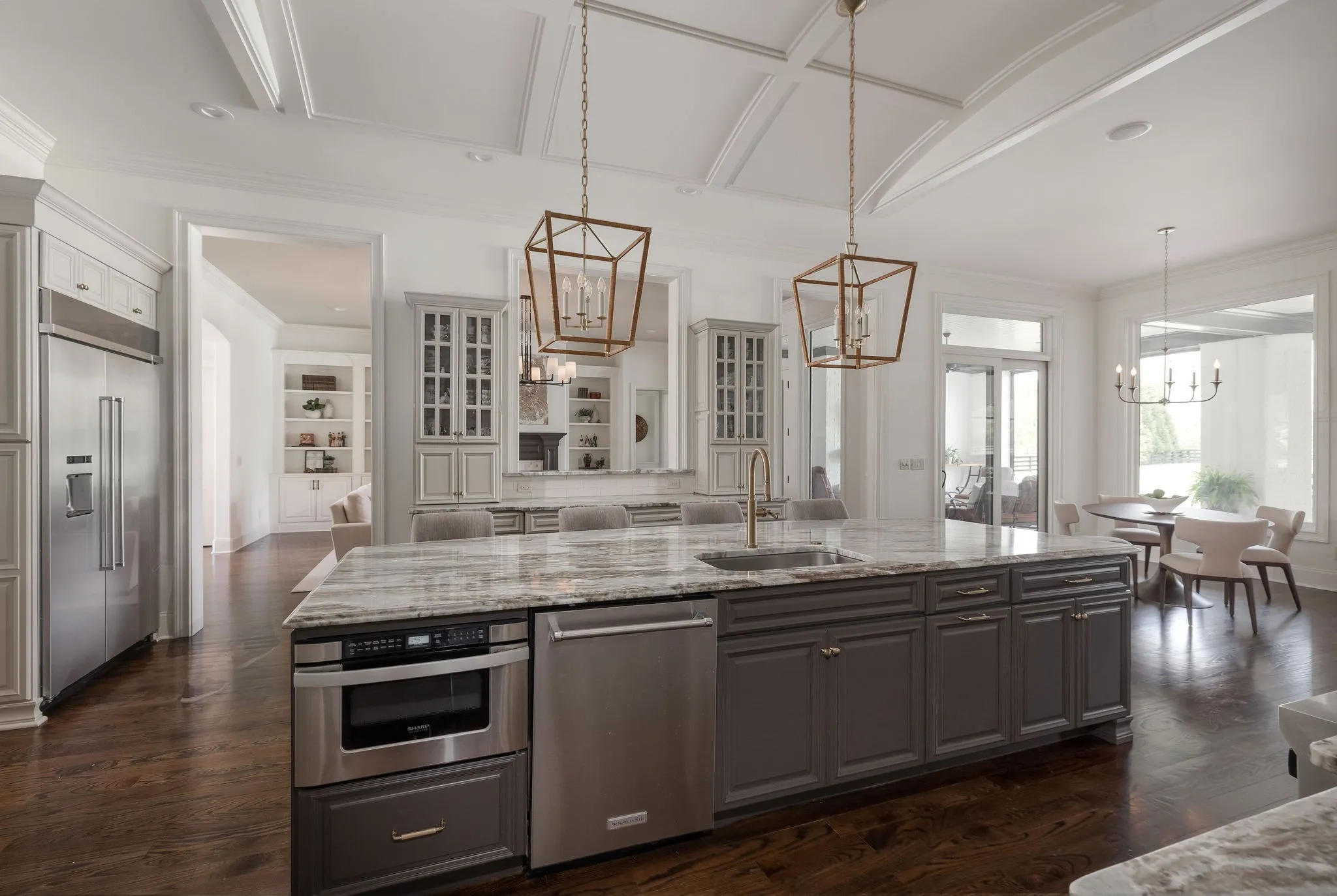 Stunning renovation located in the sought-after Hillsboro Cove community, just a short drive from Historic Downtown Franklin. Situated on over an acre, this meticulously crafted residence offers 5 bedrooms and 5.5 baths, with the primary and guest suites conveniently located on the main level. The heart of the home is the upgraded Chef’s Kitchen, featuring a striking barrel ceiling, Visual Comfort lighting, Kitchen Aid appliances, oversized Island, a hidden office/pantry, and ample storage. Thoughtfully designed for both comfort and entertaining, the main level boasts an elegant dining room with Cole and Son wallpaper, color-drenched office with coffered ceilings and built-ins, spacious living room, a cozy den with stone fireplace, built-ins and bar area. Hardwood Floors throughout the main level. Upstairs, a spacious rec room, flex space, and a theater room provide endless opportunities for relaxation and fun. Step outside to an inviting covered patio, perfect for year-round outdoor living. Enjoy al fresco dining with a built-in gas grill, gather around the fireplace on cool evenings, and take advantage of retractable screens for ultimate comfort. With four garage spaces, abundant closet and storage space, and zoning for Williamson County’s top-rated schools, this exceptional home is truly a must-see! Pool plans designed by JSLA Designs and available upon request!