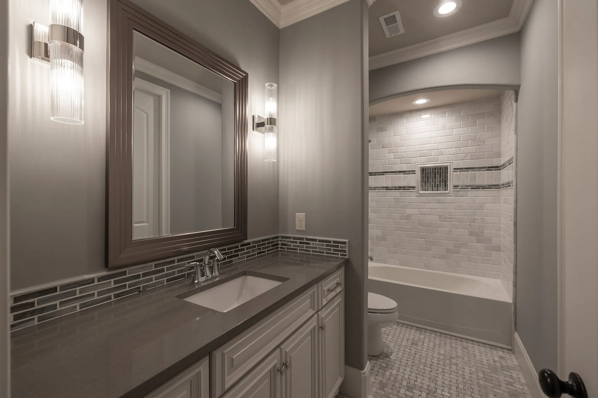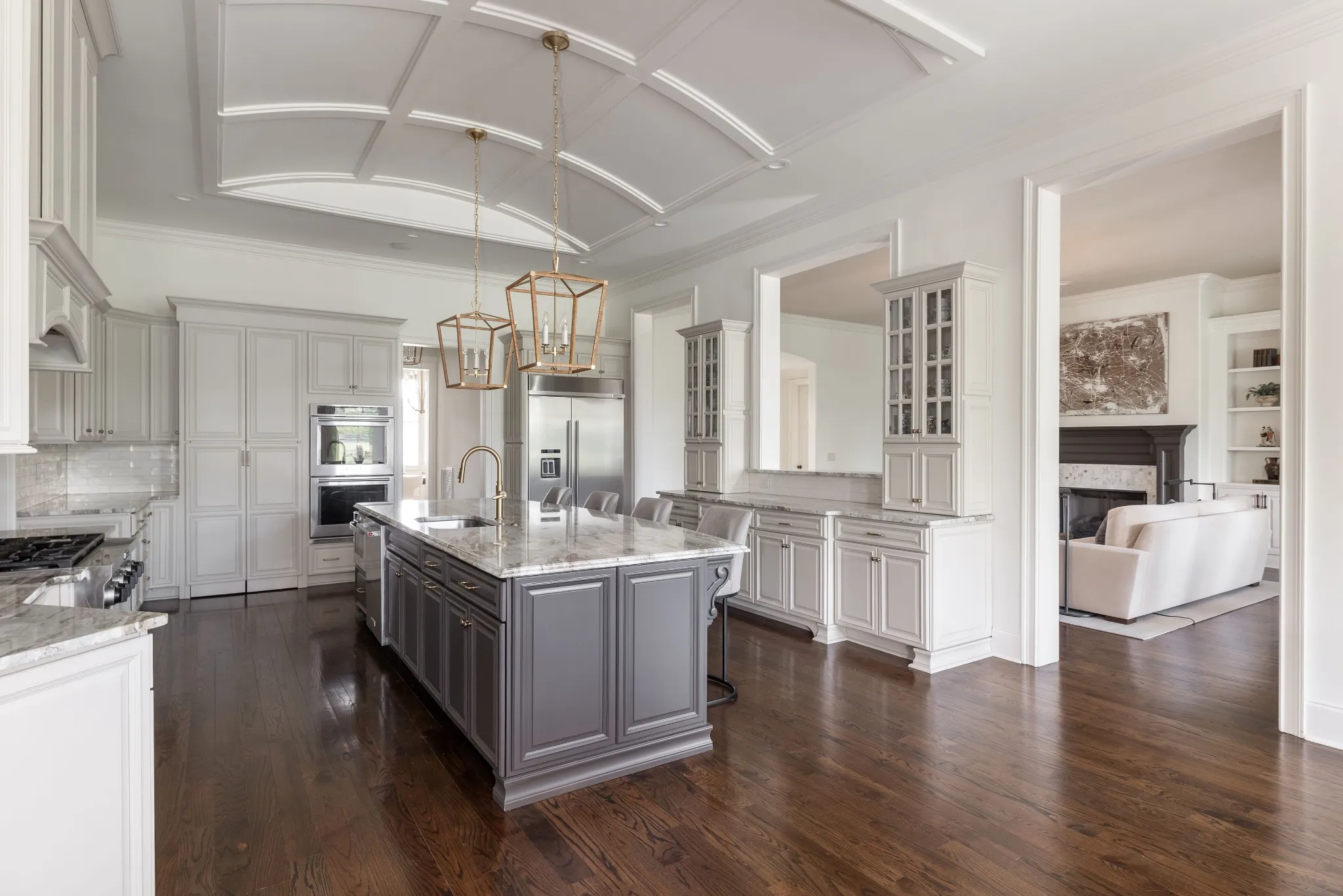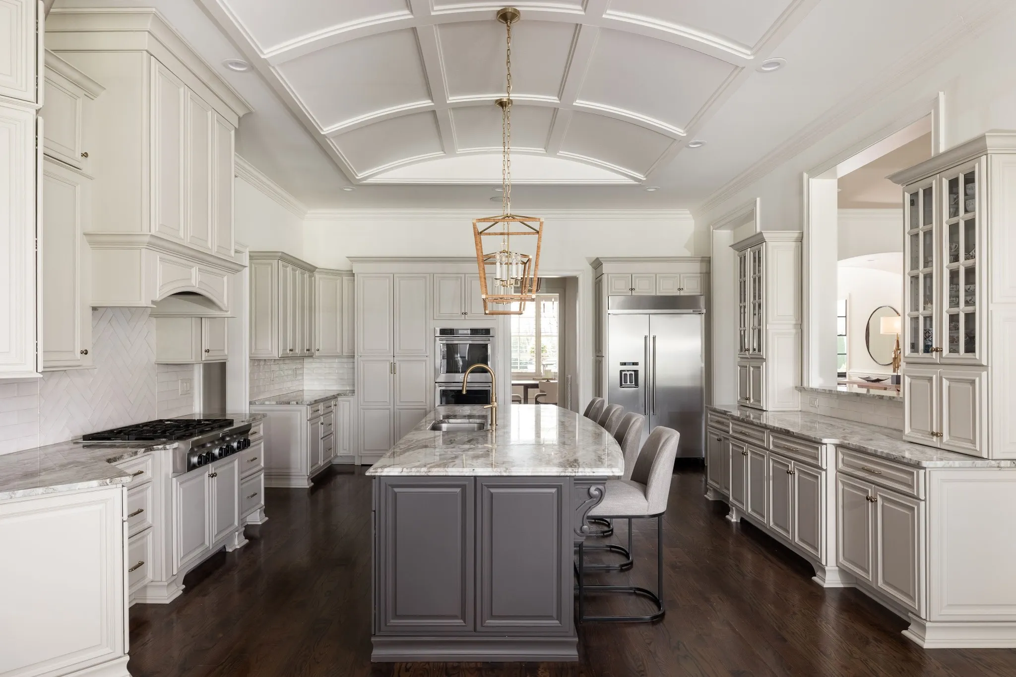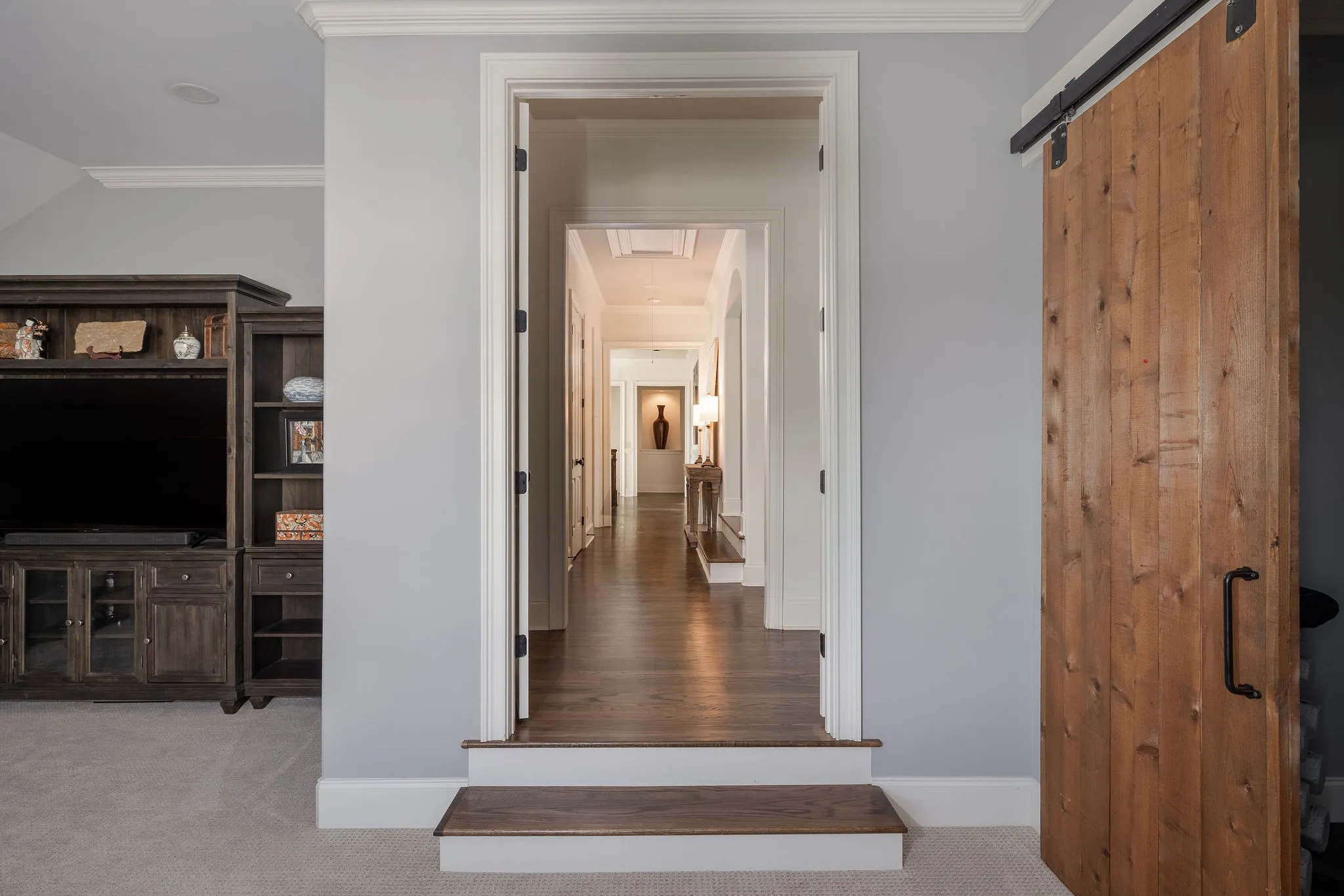 Stunning renovation located in the sought-after Hillsboro Cove community, just a short drive from Historic Downtown Franklin. Situated on over an acre, this meticulously crafted residence offers 5 bedrooms and 5.5 baths, with the primary and guest suites conveniently located on the main level. The heart of the home is the upgraded Chef’s Kitchen, featuring a striking barrel ceiling, Visual Comfort lighting, Kitchen Aid appliances, oversized Island, a hidden office/pantry, and ample storage. Thoughtfully designed for both comfort and entertaining, the main level boasts an elegant dining room with Cole and Son wallpaper, color-drenched office with coffered ceilings and built-ins, spacious living room, a cozy den with stone fireplace, built-ins and bar area. Hardwood Floors throughout the main level. Upstairs, a spacious rec room, flex space, and a theater room provide endless opportunities for relaxation and fun. Step outside to an inviting covered patio, perfect for year-round outdoor living. Enjoy al fresco dining with a built-in gas grill, gather around the fireplace on cool evenings, and take advantage of retractable screens for ultimate comfort. With four garage spaces, abundant closet and storage space, and zoning for Williamson County’s top-rated schools, this exceptional home is truly a must-see! Pool plans designed by JSLA Designs and available upon request!