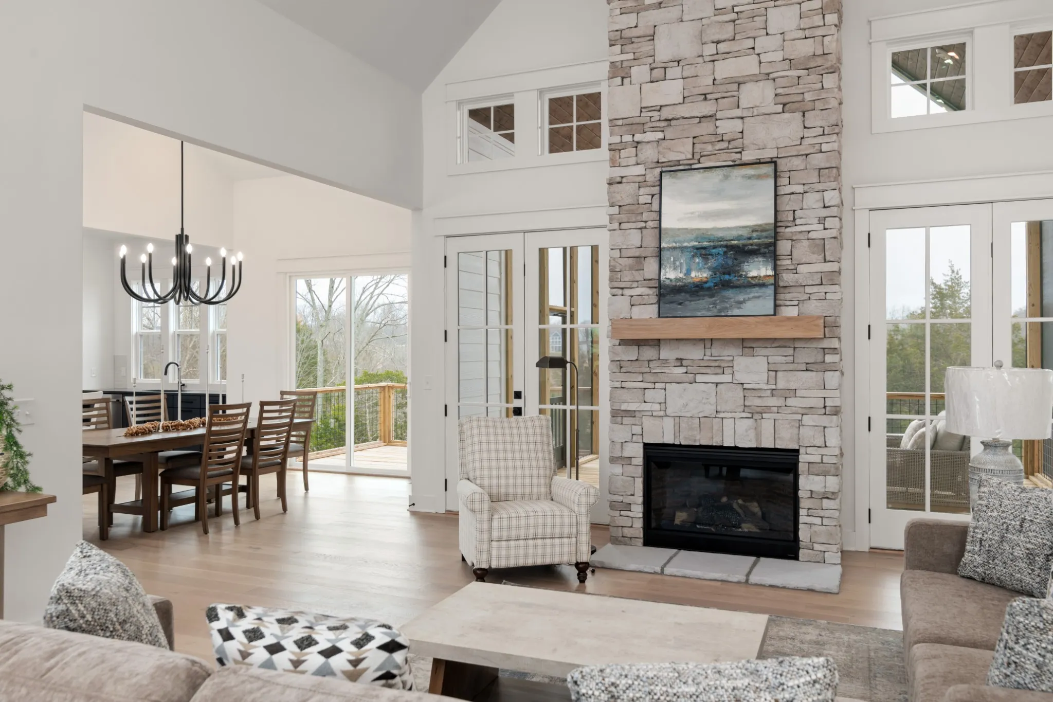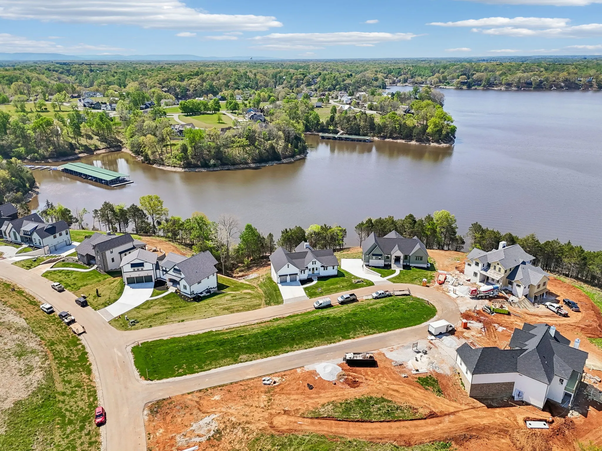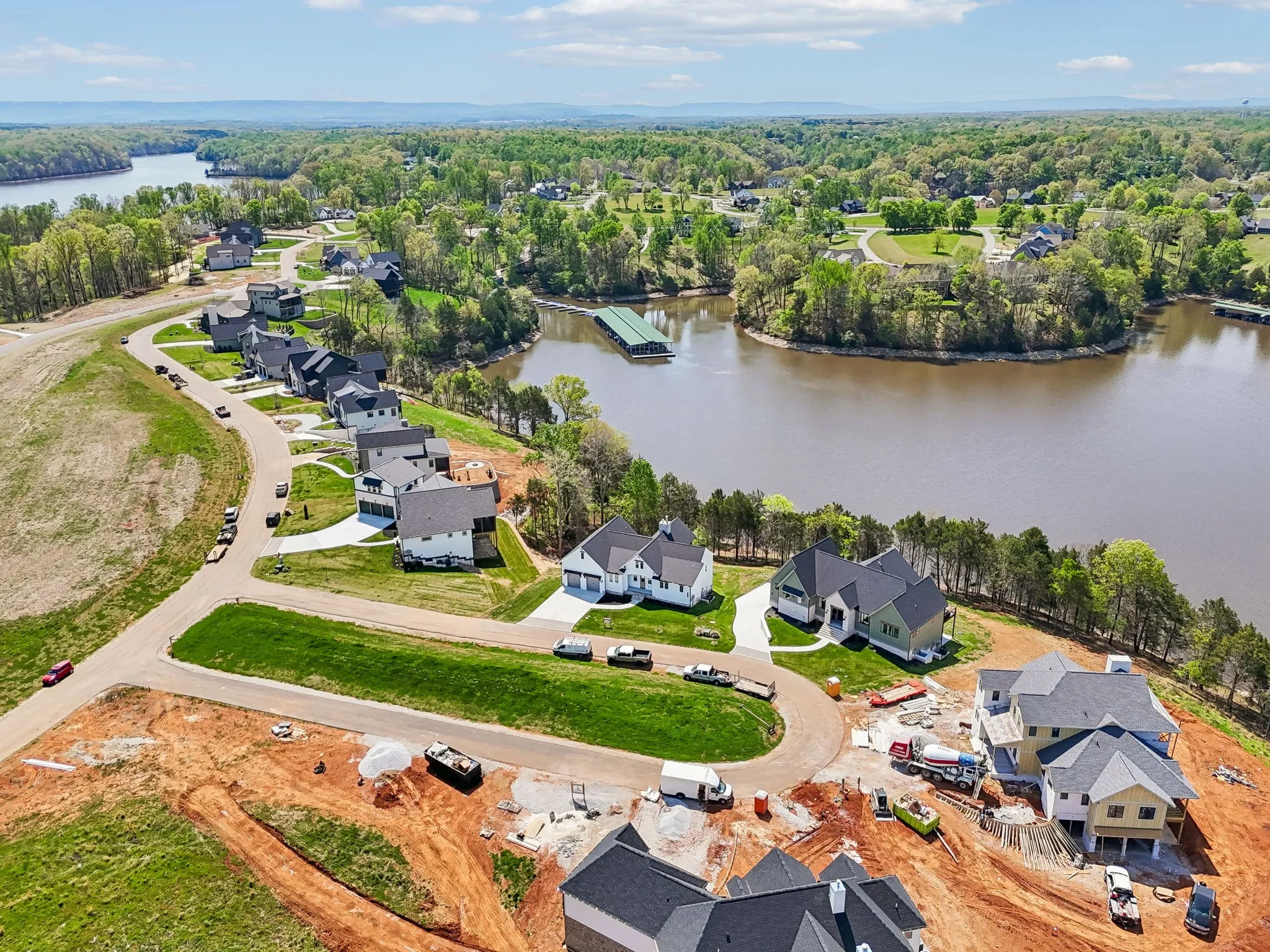 Welcome to lakeside living in the prestegious Fanning Bend community on scenic Tims Ford Lake in Winchester, TN. This newly built, 4 Bed, 4.5 bath home blends timeless design with high-end finishes, while maximizing the gorgeous lake views. The open floor plan features vaulted ceilings, rich hardwoods, and expansive windows that flood the home with natural light. A stunning stone fireplace anchors the great room, while the gourmet kitchen shines with JennAir appliances, quartz countertops, custom cabinetry, a walk-in pantry and a large island. The serene primary suite includes a spa-like bath and walk-in closet, while the guest rooms all have their own bathrooms, providing ample accomodations for visitors. Enjoy outdoor living on the screened in porch and multiple decks, surrounded by beautifully landscaped grounds. Owners also enjoy exclusive access to Fanning Bend’s clubhouse, lakeside pool, and cozy outdoor lounges with wood-burning fireplaces. Your deeded boat slip offers direct access to Tims Ford Lake for boating, fishing, and relaxing on the water. Whether a weekend escape or full-time haven, this home delivers luxury, comfort, and connection to nature in one of Tennessee’s premier waterfront communities