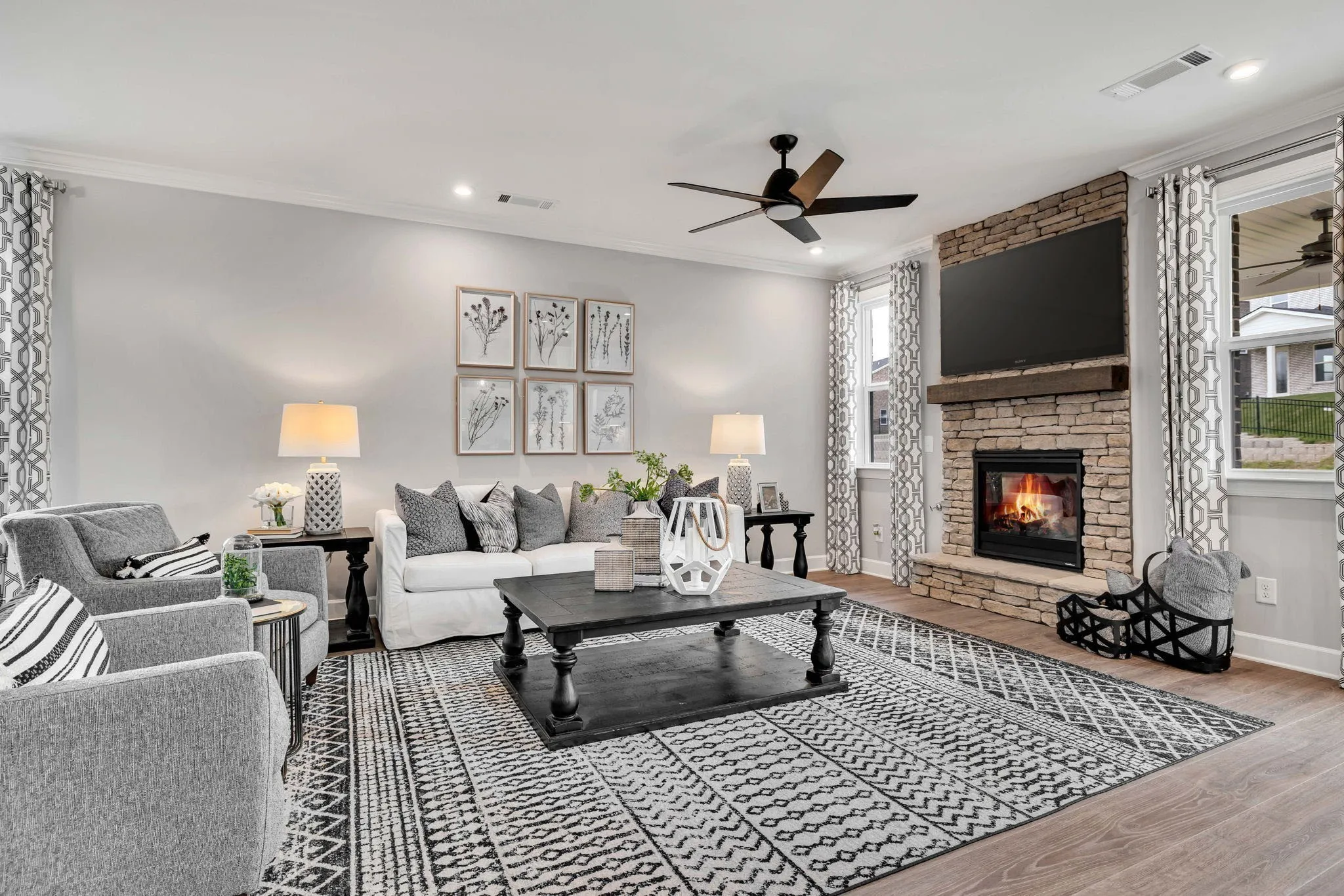 Welcome to The Ellington — A beautifully designed home offering space, flexibility, and elevated finishes throughout. This thoughtfully crafted floor plan features a spacious open-concept layout perfect for both everyday living and entertaining. The main level includes a cozy fireplace in the family room, a private guest suite, powder room, and a dedicated study ideal for working from home. Upstairs, you’ll find four additional bedrooms plus a versatile loft space — perfect for a media room, playroom, or second living area. The expansive primary suite offers a large walk-in closet and an extended vanity area for added comfort and convenience. Personalize your home at no additional cost by choosing from two designer kitchen layouts and two primary bath configurations. Enhance your outdoor living with the option of adding a covered rear porch or bright morning room. Enjoy impressive, included features such as, hard surface flooring throughout main living areas downstairs, tile flooring in all wet areas, chef’s kitchen with double wall ovens and gas cooktop, quartz countertops and designer tile backsplash, stylish finishes and thoughtful upgrades throughout! Located in the desirable Waterford Park community, you’ll be just 5 minutes from Providence Marketplace, offering convenient access to shopping, dining, and everyday essentials. Be sure to ask about our incentive available for April!