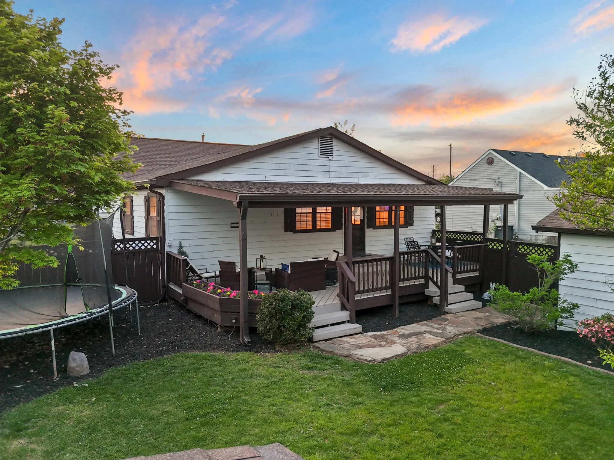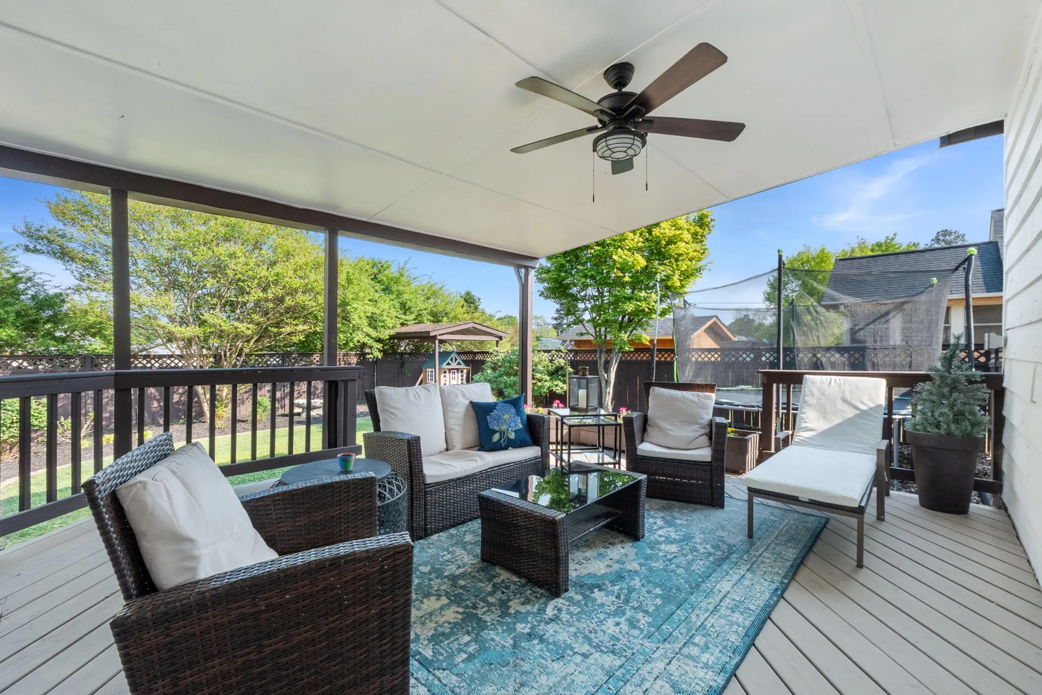 Step outside to a covered porch designed for gathering–whether you’re hosting friends for game day or enjoying a quiet evening at home. A large, fully fenced yard leaves room to enjoy the family in privacy and serenity.