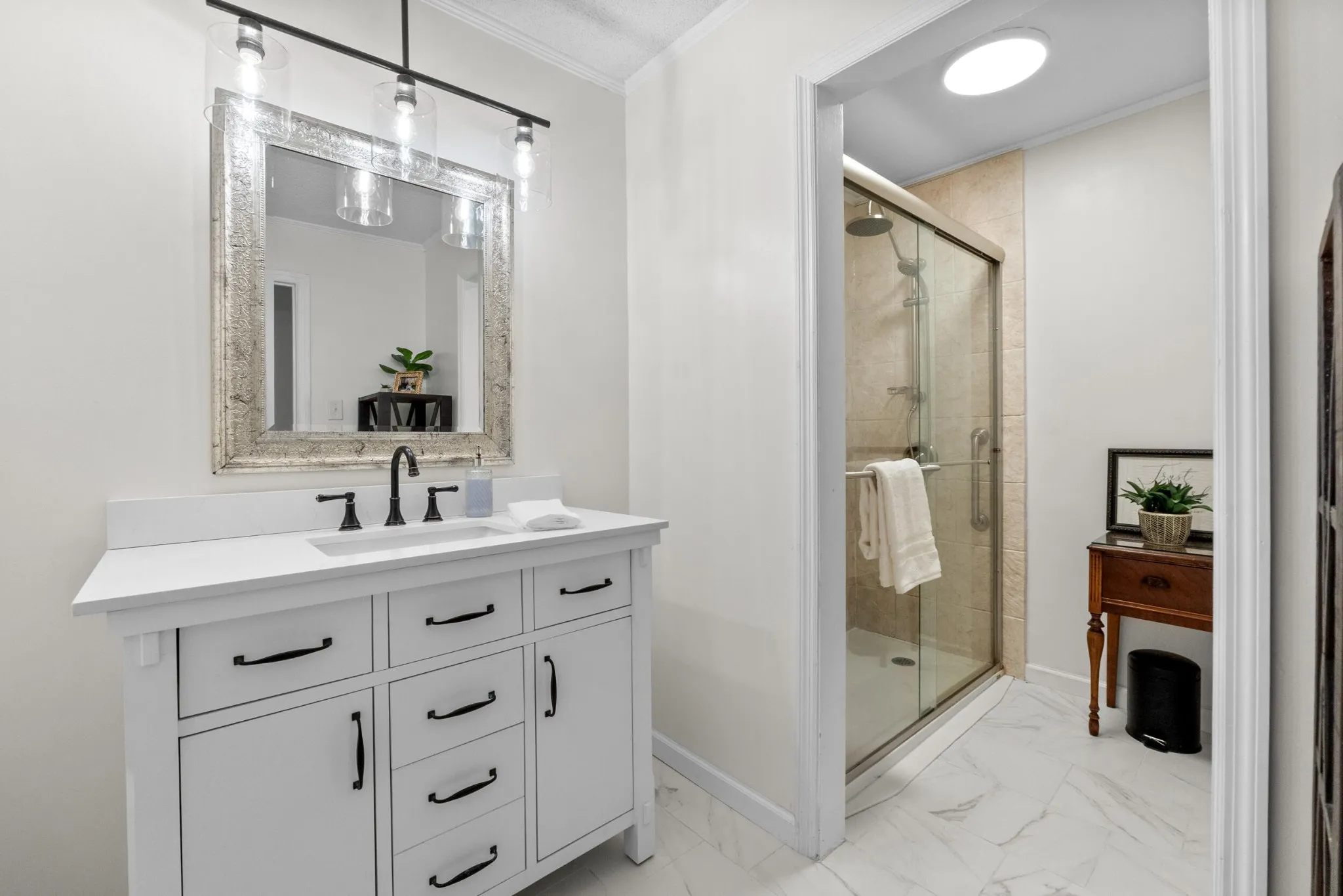 Welcome home to this beautifully updated three-bedroom, two-bath home where style and functionality come together in the premier development area of East Ridge and Camp Jordan. The heart of the home features hardwood floors and a spacious, open-concept layout that seamlessly connects the kitchen, dining, and living areas; perfect for effortless entertaining and easy, everyday living. The redesigned master suite offers a high-end spa experience with marble and gold accents. Each of the oversized bedrooms offers room to grow, work, or unwind, providing flexibility for a variety of lifestyles.