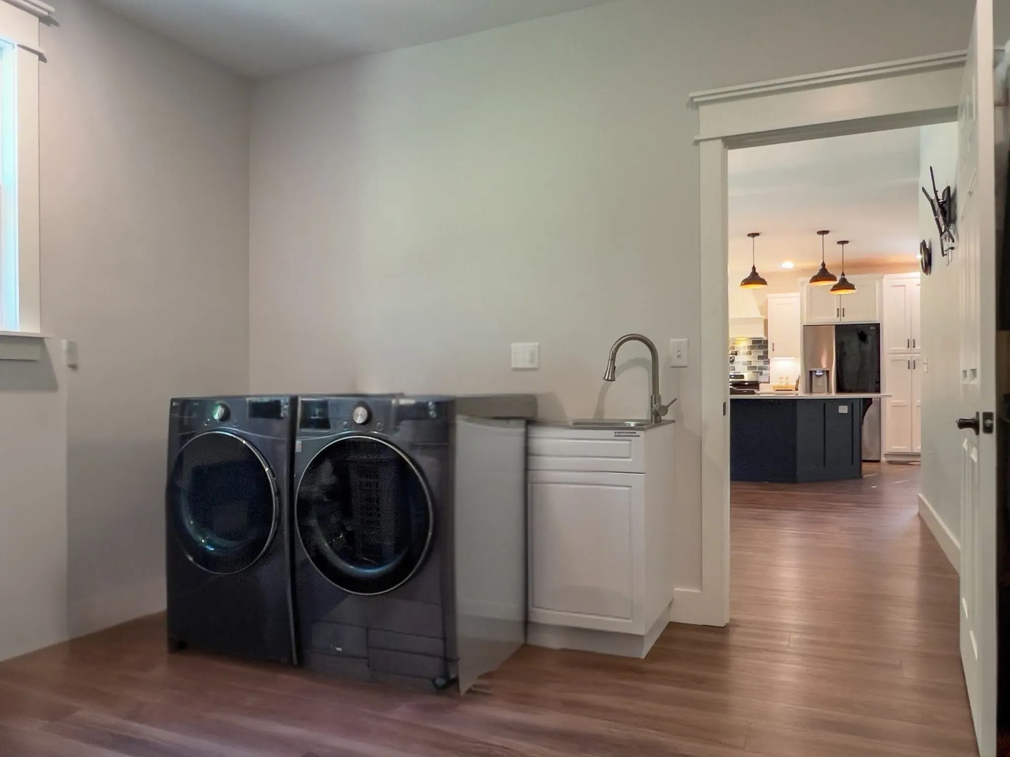 Inside offers 4 SPACIOUS BEDROOMS, including DUAL PRIMARY SUITES—one on the main level and one upstairs—plus 3.5 luxurious baths with cultured marble-tiled showers and elegant finishes. Designed for all generations, the main level is wheelchair accessible with an open, inviting floor plan and luxury vinyl plank flooring throughout.