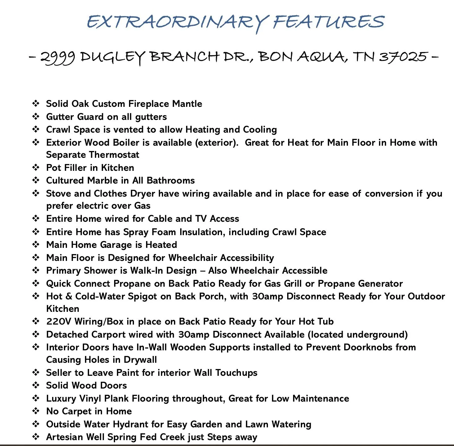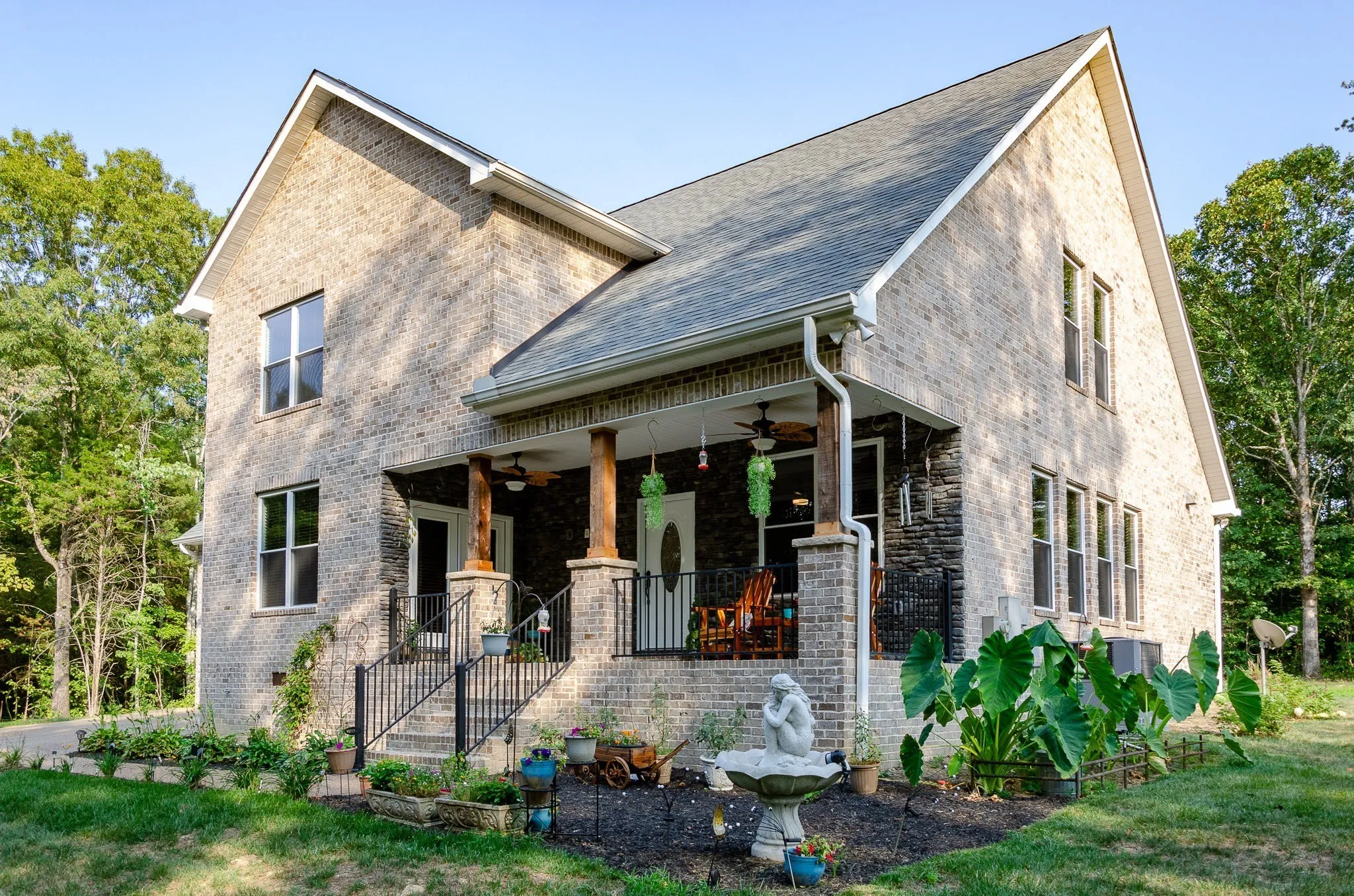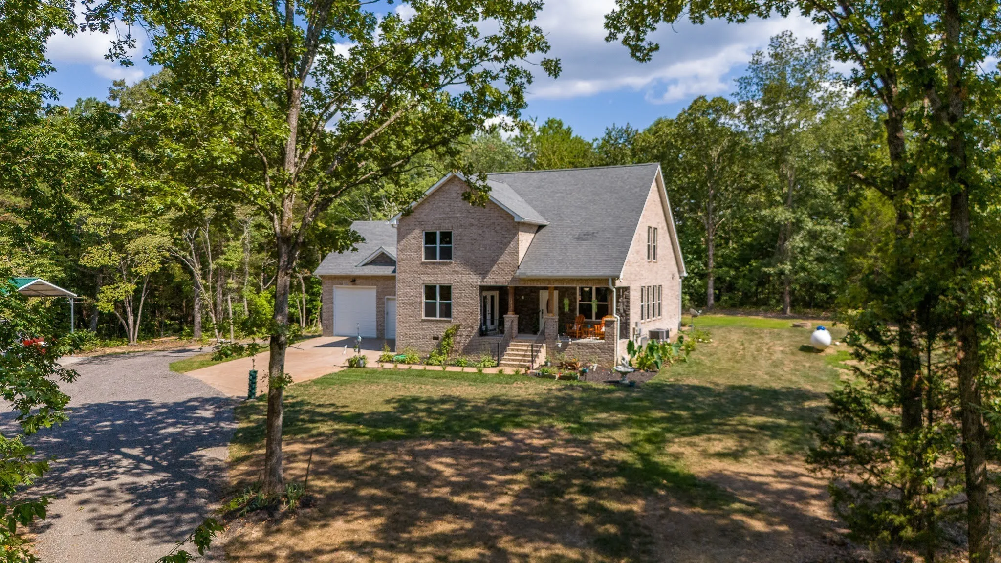 Peaceful country living meets modern craftsmanship – 10 pristine wooded acres in Bon Aqua, complete with a year-round Artesian spring-fed creek. Lush scenery and endless possibilities for a mini farm, gardens, trails, or your own private retreat, this property is truly ONE OF A KIND. This ALL BRICK Craftsman-style home with a maintenance-free exterior blends timeless charm with refined upgrades, all surrounded by the beauty of nature.