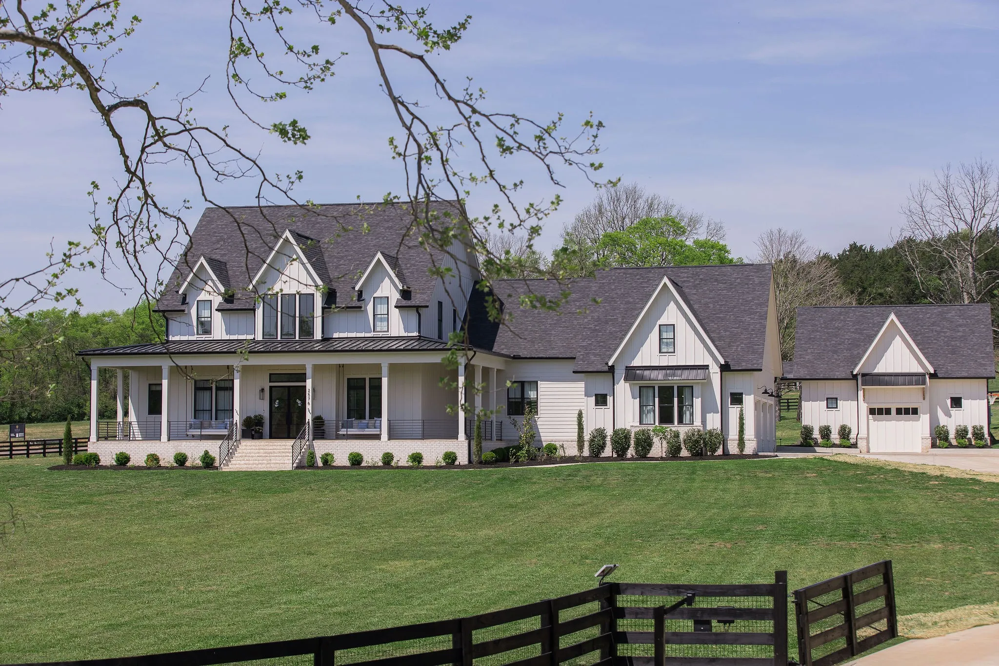 Discover luxurious organic modern farmhouse living at its finest! Set on 5, fully fenced, acres in historic Franklin, TN, this one-of-a-kind, custom-built home sets the standard with a perfect blend of top shelf design and styling, on 5 peaceful country acres, just minutes from the convenience of the best shopping and restaurants Franklin has to offer. This property allows you too truly have it all. Built in 2024, this home features 5 bedrooms, 6.5 baths and over 6,000 square feet of living space as well as a dedicated guest house with a full kitchenette, bedroom, bathroom, laundry and garage space. Inside, the home boasts professionally designed and decorated finishes throughout that are truly magazine worthy including the upstairs “sister suite” which has been featured by Pottery Barn. The kitchen features premium appliances and an oversized quartz countertop island with matching backsplash and a walk-in butler’s pantry. The living room brings in tons of natural light showcasing the fireplace and custom built in shelving. All bedroom’s conveniently feature ensuite bathrooms, and the upstairs features an oversized bonus/playroom. Step outside to find a brand-new custom built 4 stall horse barn ready for your touch. Use it as intended as a 4-stall horse barn, or turn it into your dream music studio, a professional workout facility or even a workshop or party space. Your options are endless so bring your imagination. Watch the sunset on the covered front or back porch, outfitted with Timber tech decking or watch the sunrise with a fresh coffee and kids playing in the yard on the built-in swing set and in ground trampoline. Scout Creek Farm is what luxury modern farmhouse dreams are made of. Peaceful, private and perfectly designed, just 5 minutes from all Franklin, TN has to offer.