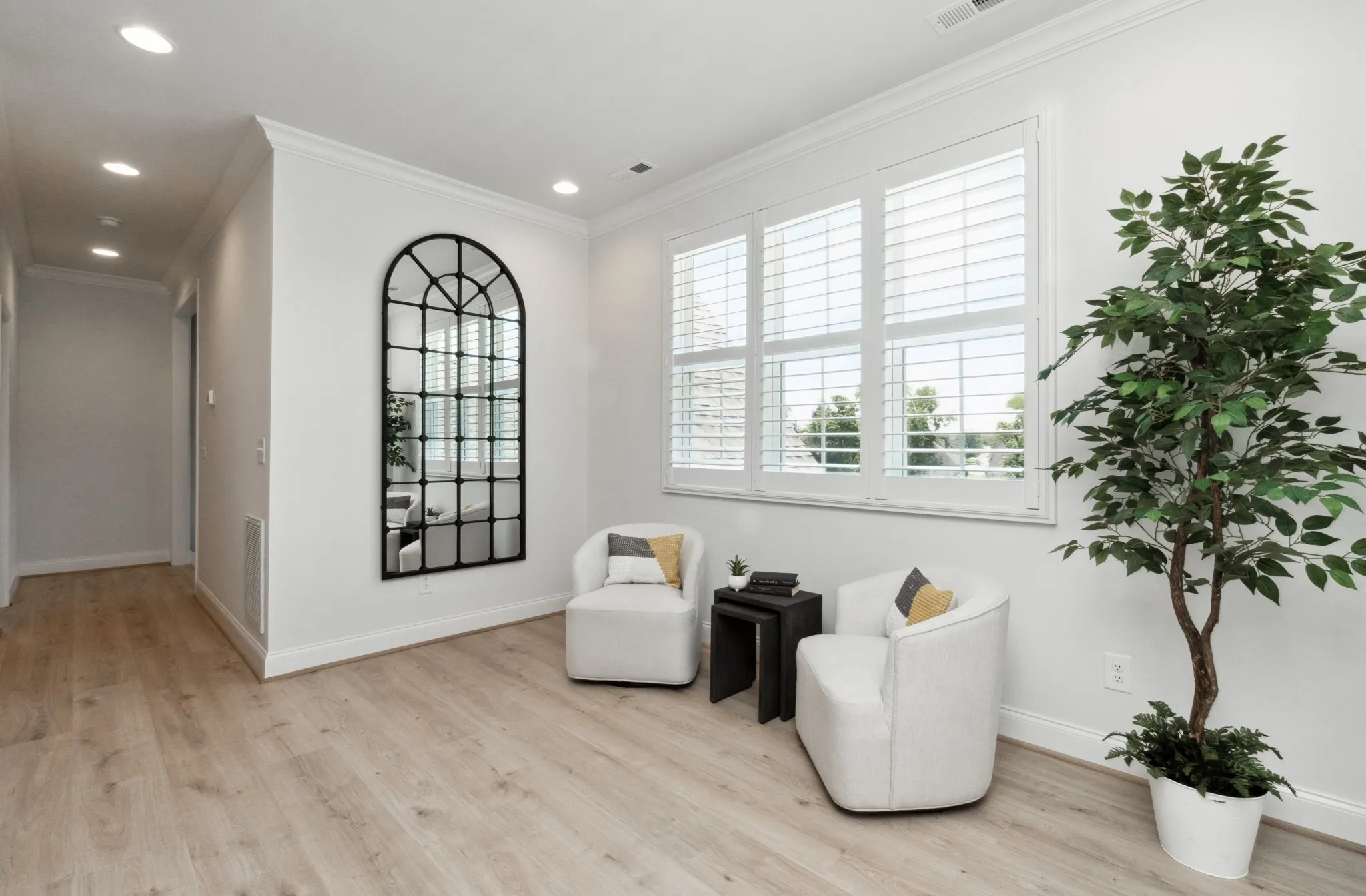 Upstairs offers two additional bedrooms, two full baths, a cozy sitting area, and a large bonus room. Abundant natural light throughout enhances the home’s warm, inviting feel.