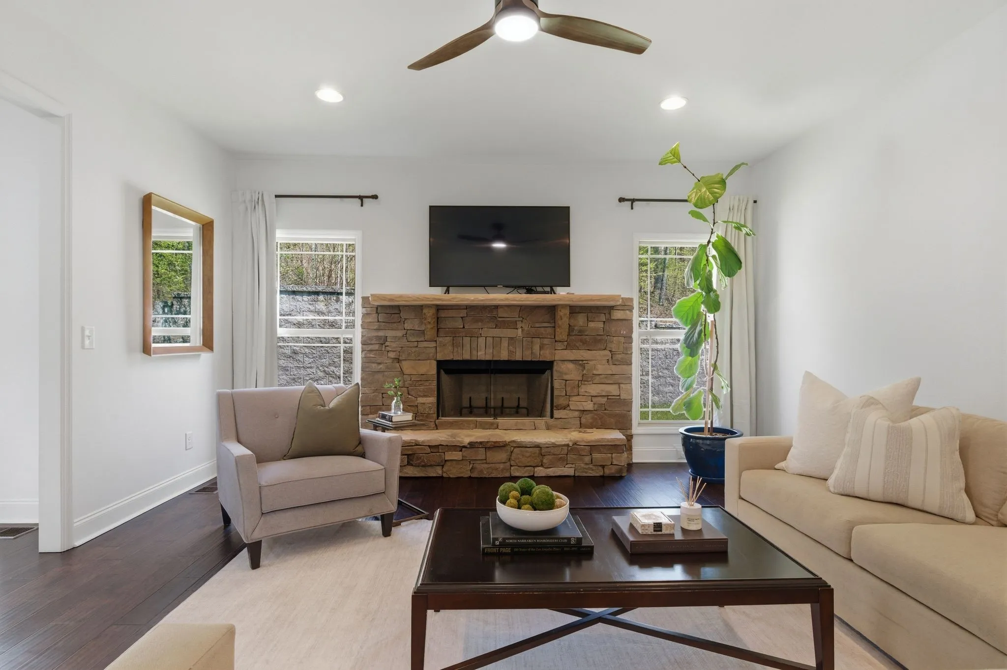 - Construction Materials: Stone, Hardboard Siding