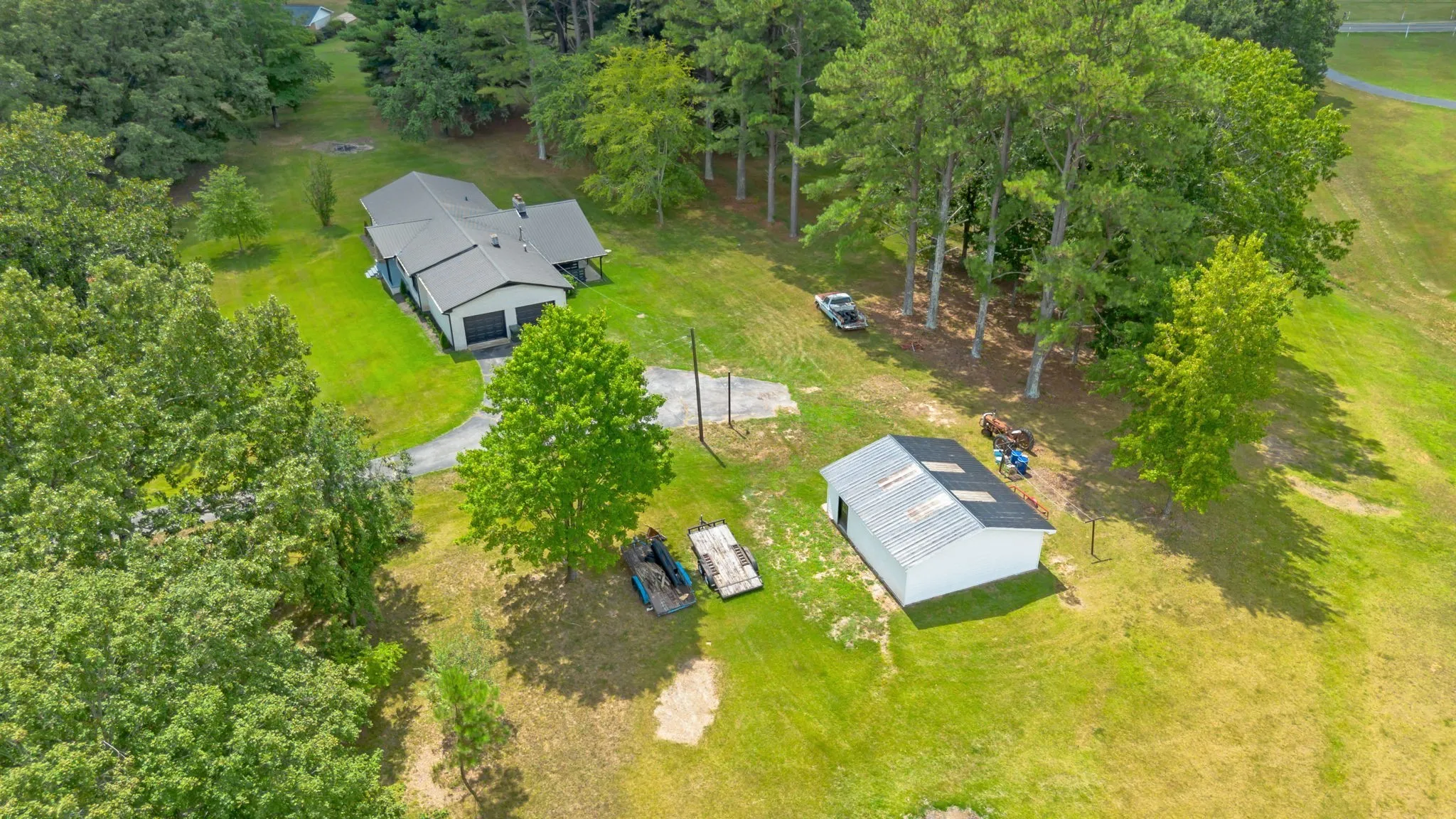 Charming 3BR/2BA home set on 5 private acres, offering the perfect blend of comfort and country living. Fresh interior paint and updated lighting create a bright, welcoming feel throughout. The home features a durable metal roof with new gutters and downspouts, plus recent upgrades including new garage doors and a new hot water heater. The full-length walk-out basement provides endless potential—ideal for expansion, storage, or a workshop—and includes a wood-burning furnace for added efficiency. Enjoy peaceful views from both the covered front and back porches, surrounded by mature trees and open space. An additional outbuilding offers flexibility for farm equipment, storage, or a hobby shop. Property is on city water and sewer. Conveniently located near the Centerville Golf Course.
