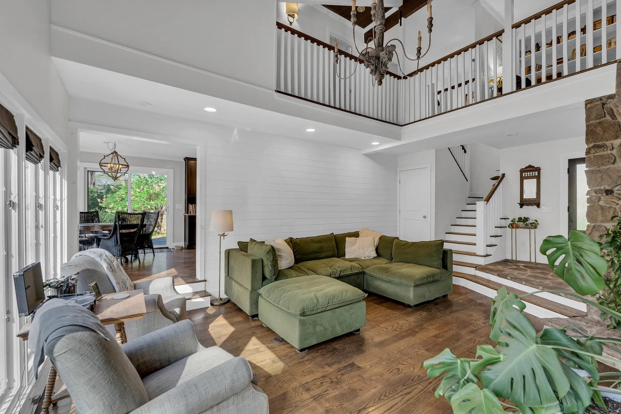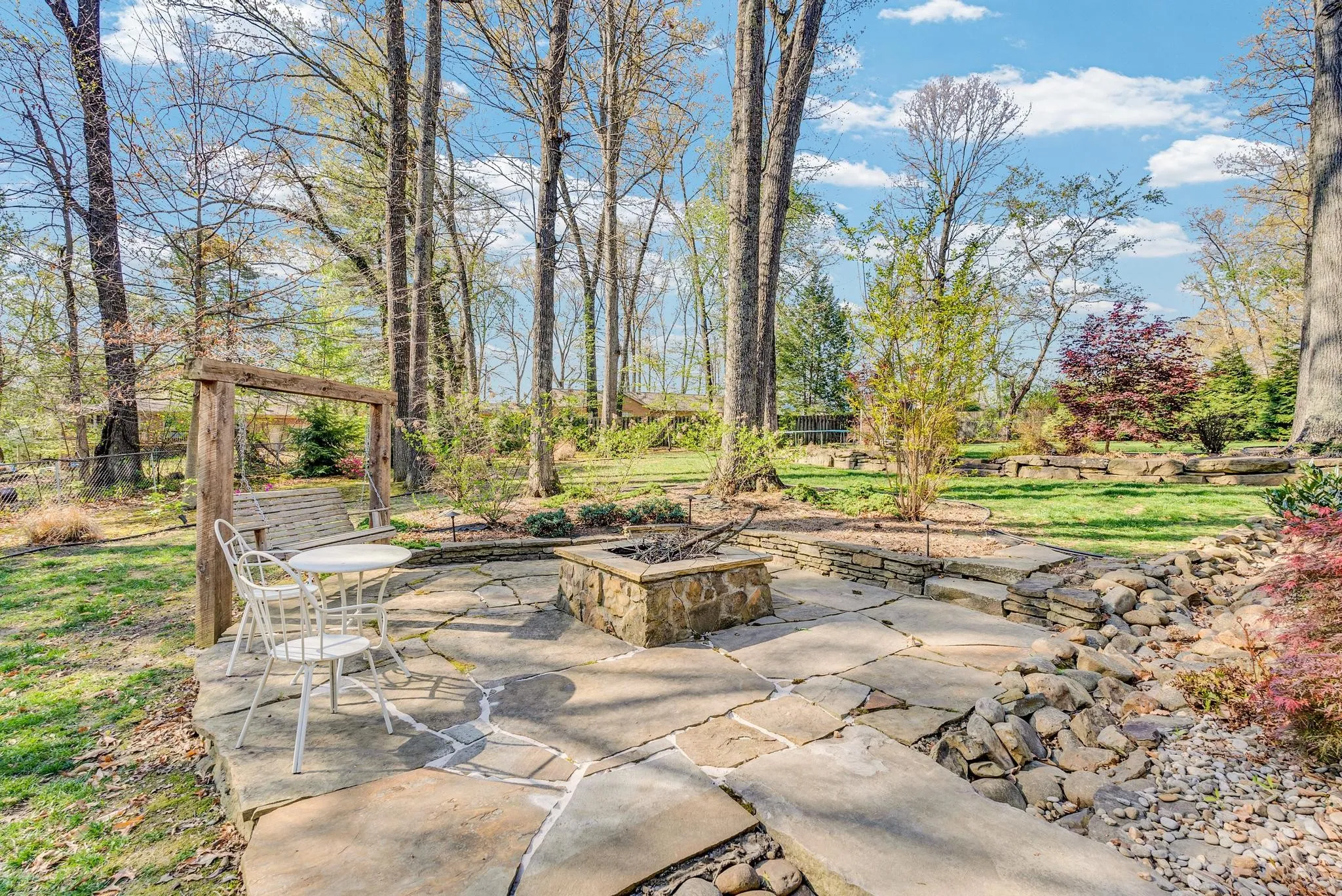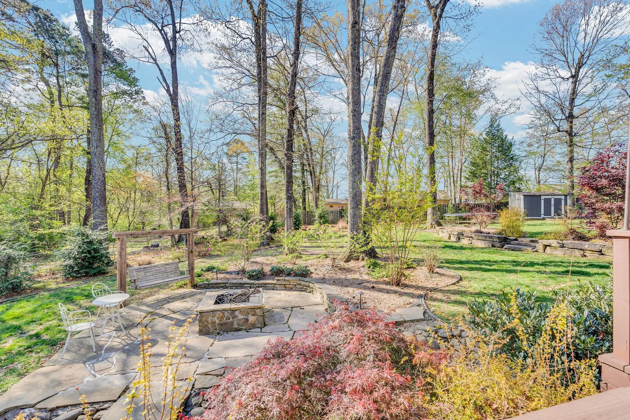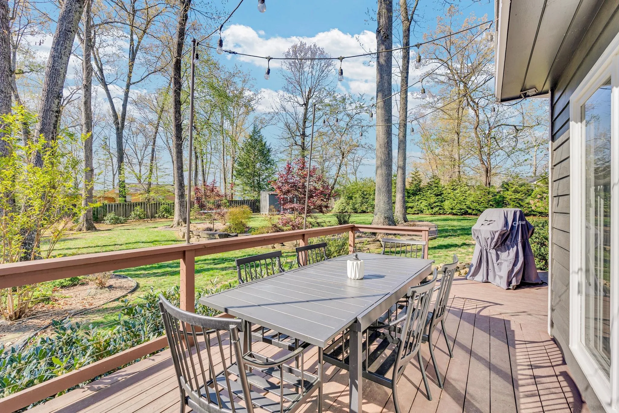Exceptional 4-bedroom, 2.5-bath contemporary residence set on a private, tree-lined lot in an established setting. A striking architectural exterior with rich charcoal tones, dramatic rooflines, and manicured landscaping creates unforgettable curb appeal. Inside, sophisticated living spaces are anchored by a stunning floor-to-ceiling stone fireplace, blending timeless elegance with modern design. The updated kitchen features stylish finishes, quality cabinetry, and ample workspace, and is seamlessly connected to the living room—perfect for everyday living and entertaining. On the opposite side of the living room, a dedicated dining room provides a defined yet accessible space for hosting gatherings. A spacious bonus room offers flexibility for a home office, media room, or additional living space to suit your needs. Step outside to an expansive deck overlooking a park-like, fully fenced backyard—an ideal setting for relaxing, entertaining, or enjoying the peaceful natural surroundings. Expansive windows invite natural light and serene views throughout, while the thoughtfully designed floor plan ensures effortless flow for both refined entertaining and everyday comfort. Surrounded by mature trees and lush seasonal color, this property offers a rare blend of privacy, luxury, and architectural character—truly a standout residence that combines modern sophistication with natural beauty.