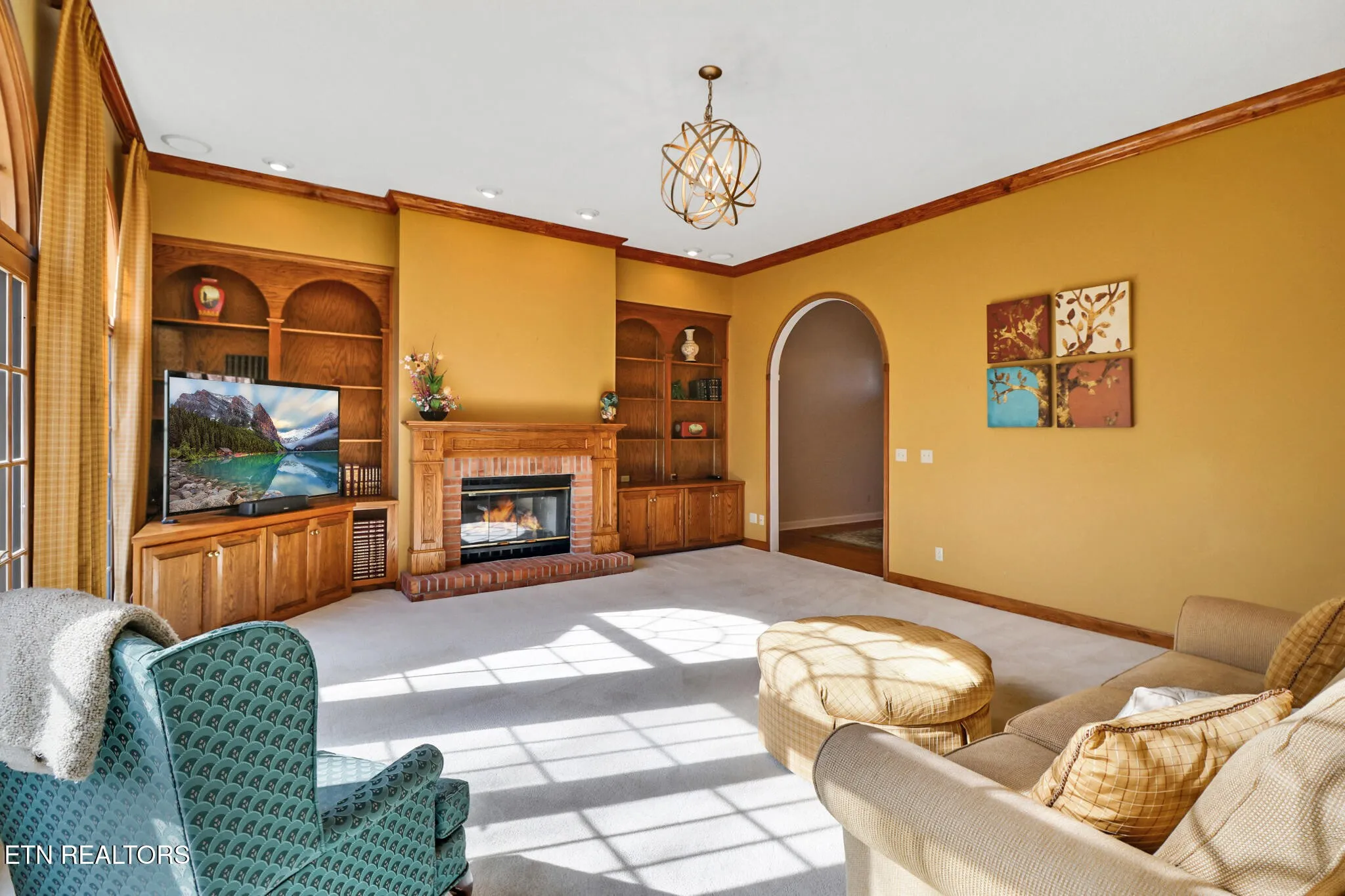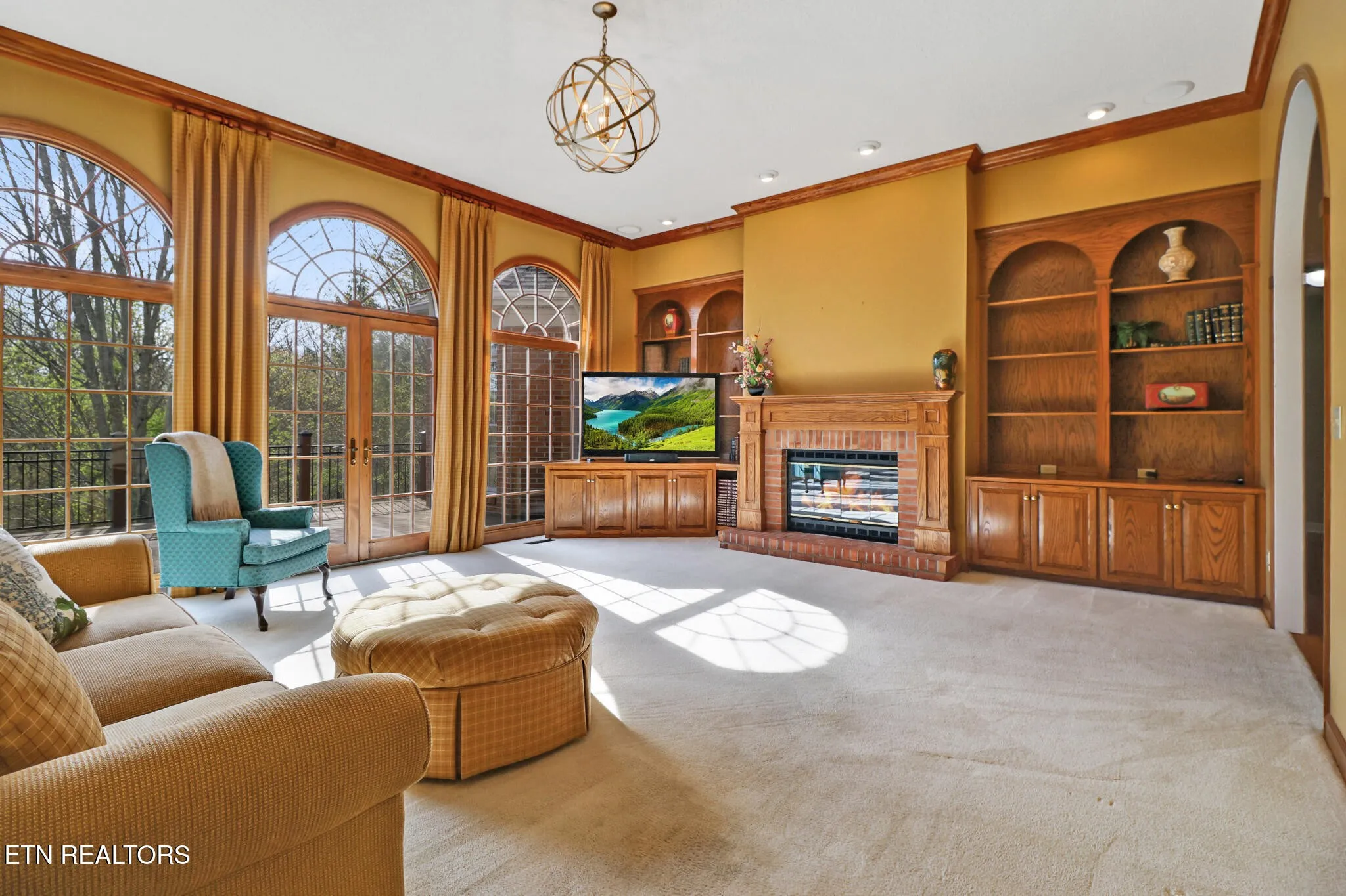 One-of-a-kind, custom all-brick home on a paved circular driveway with professional landscaping and mature hardwoods for exceptional privacy. Enter a grand foyer beneath soaring ceilings, elegant crown molding, and gleaming hardwood floors. The formal dining room is ideal for family gatherings. Any chef’s dream kitchen features custom cabinetry, granite countertops, center island, large pantry, and a sunny breakfast nook overlooking the private backyard and wildlife. Enjoy morning coffee on the screened porch or relax on the open deck off the kitchen–perfect for grilling and outdoor living. The spacious family room offers a gas fireplace, custom built-ins, and Bose surround sound. The luxurious master suite includes a bay-window sitting area, dual closets, double vanities, whirlpool tub, and a tiled walk-in shower. Two generous main-floor bedrooms share a Jack-and-Jill bath, and an additional bedroom with full bath is upstairs. A library/office with built-in shelving provides a quiet workspace. The walkout basement features a finished bonus room plus two additional rooms for storage or future finishing. Outside amenities include a paved basketball court with a covered picnic area and peaceful walking surroundings. Schedule a showing today to experience this spectacular home.