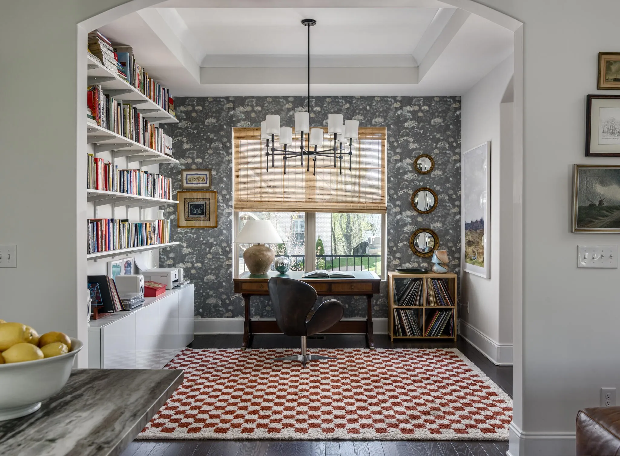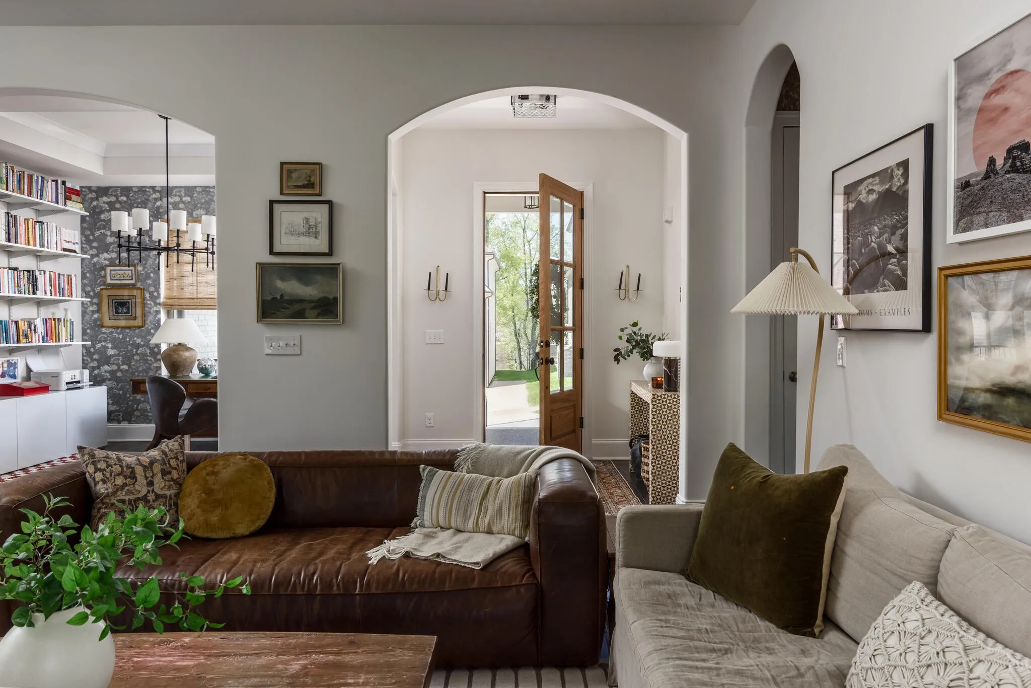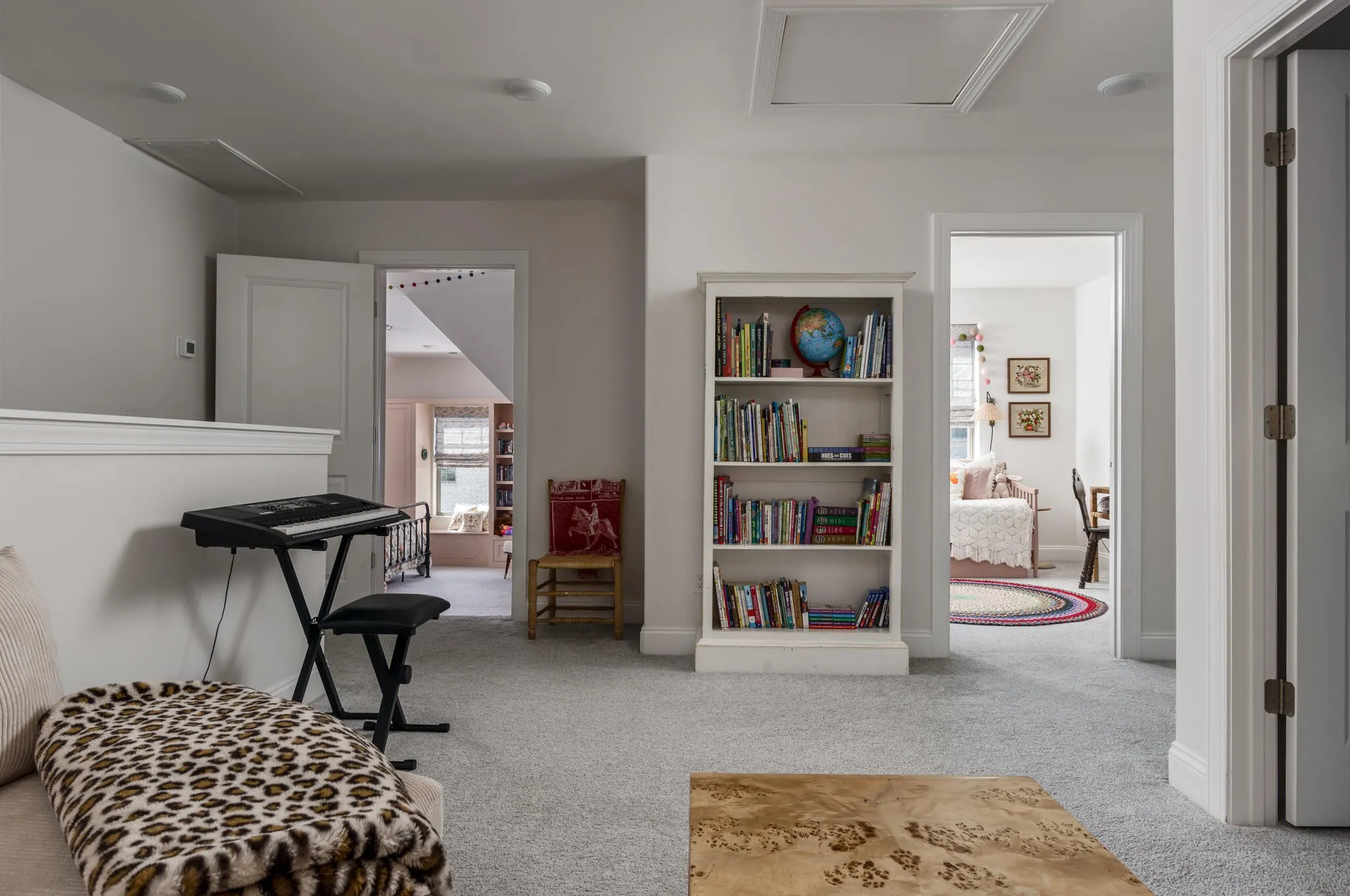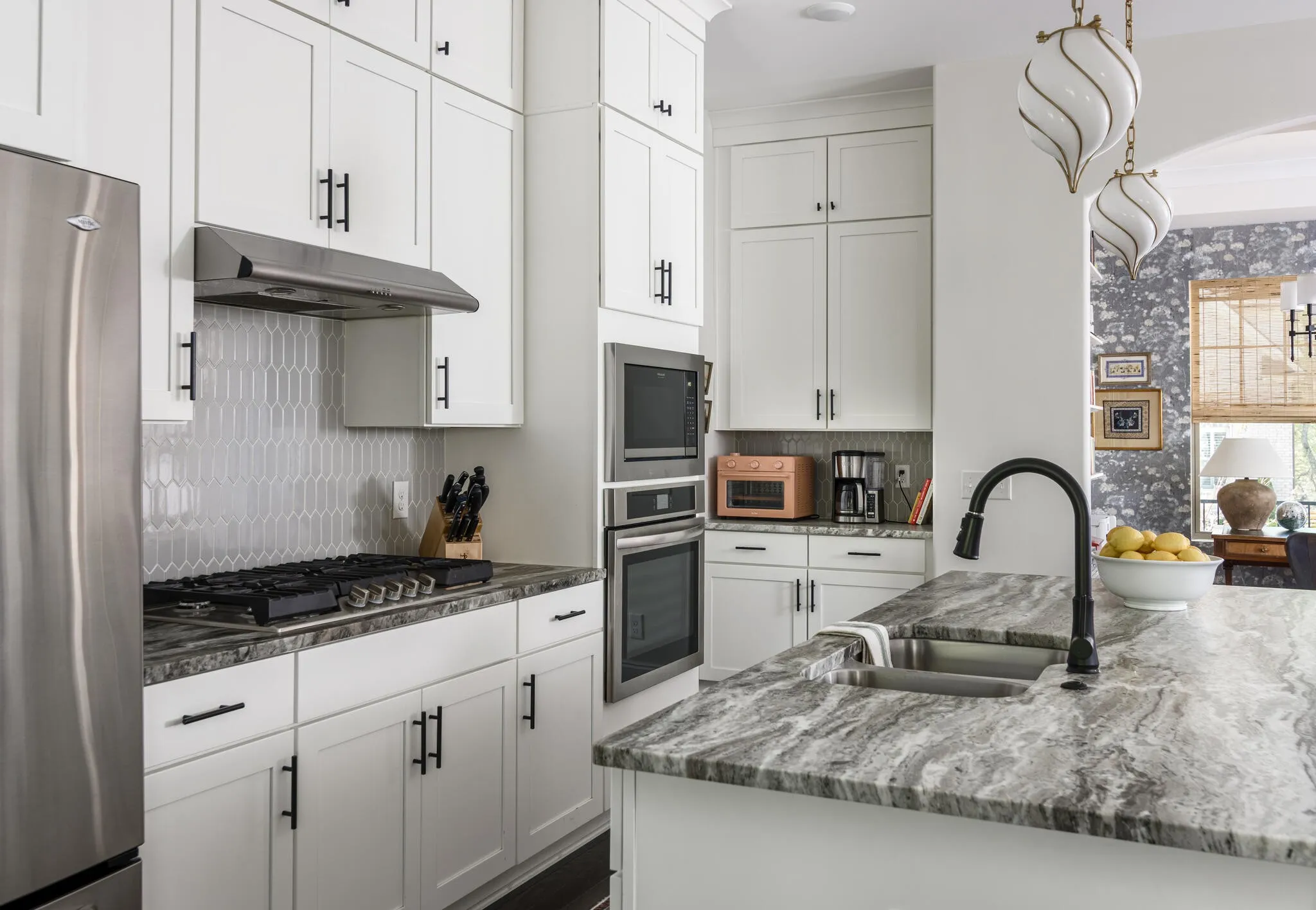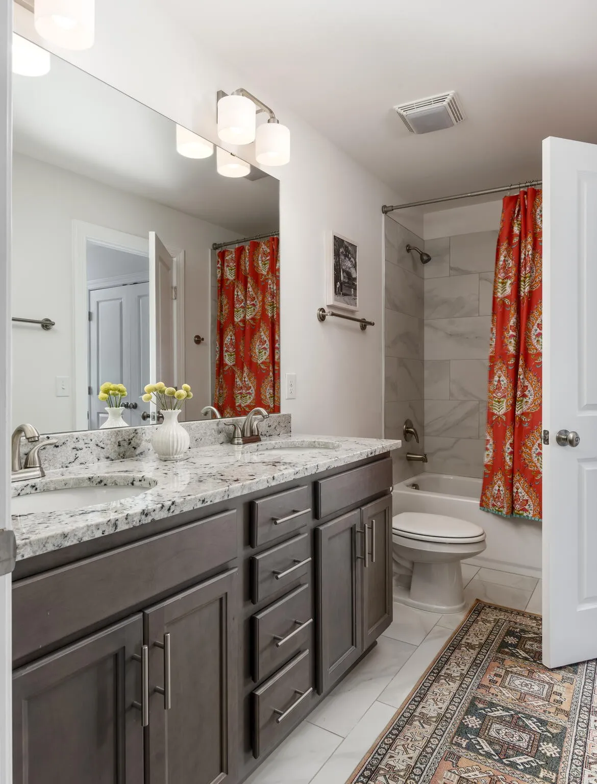 Inside, natural light fills the home from every angle and shifts beautifully throughout the day. The layout is open, connected, and thoughtfully designed for everyday living. The kitchen serves as the heart of the home, where daily life unfolds and simple moments turn into lasting memories. With two distinct living spaces, there is room for everyone, from cozy movie nights upstairs for the kids to a separate downstairs retreat where adults can unwind. Just beyond the back door, the expansive deck, completed in Fall 2025, extends your living space outdoors. Enjoy dinner in the open air, laughter drifting through the trees, and relaxing in the hot tub as the day winds down. Weekend mornings begin with coffee and peaceful views to start the day, while fall evenings are perfect for watching a football game in the crisp air. Thoughtful upgrades add both character and function throughout. Custom closets in the primary and upstairs bedrooms, along with quality built-ins in the large upstairs bedroom featuring Rejuvenation hardware, offer both practicality and style. Designer wallpaper and high-end light fixtures bring warmth and personality to each space.