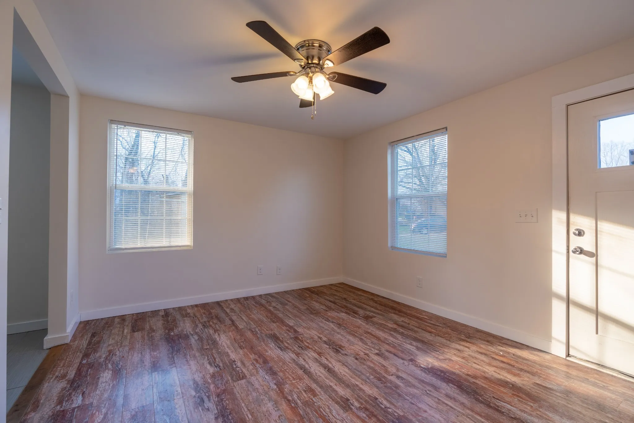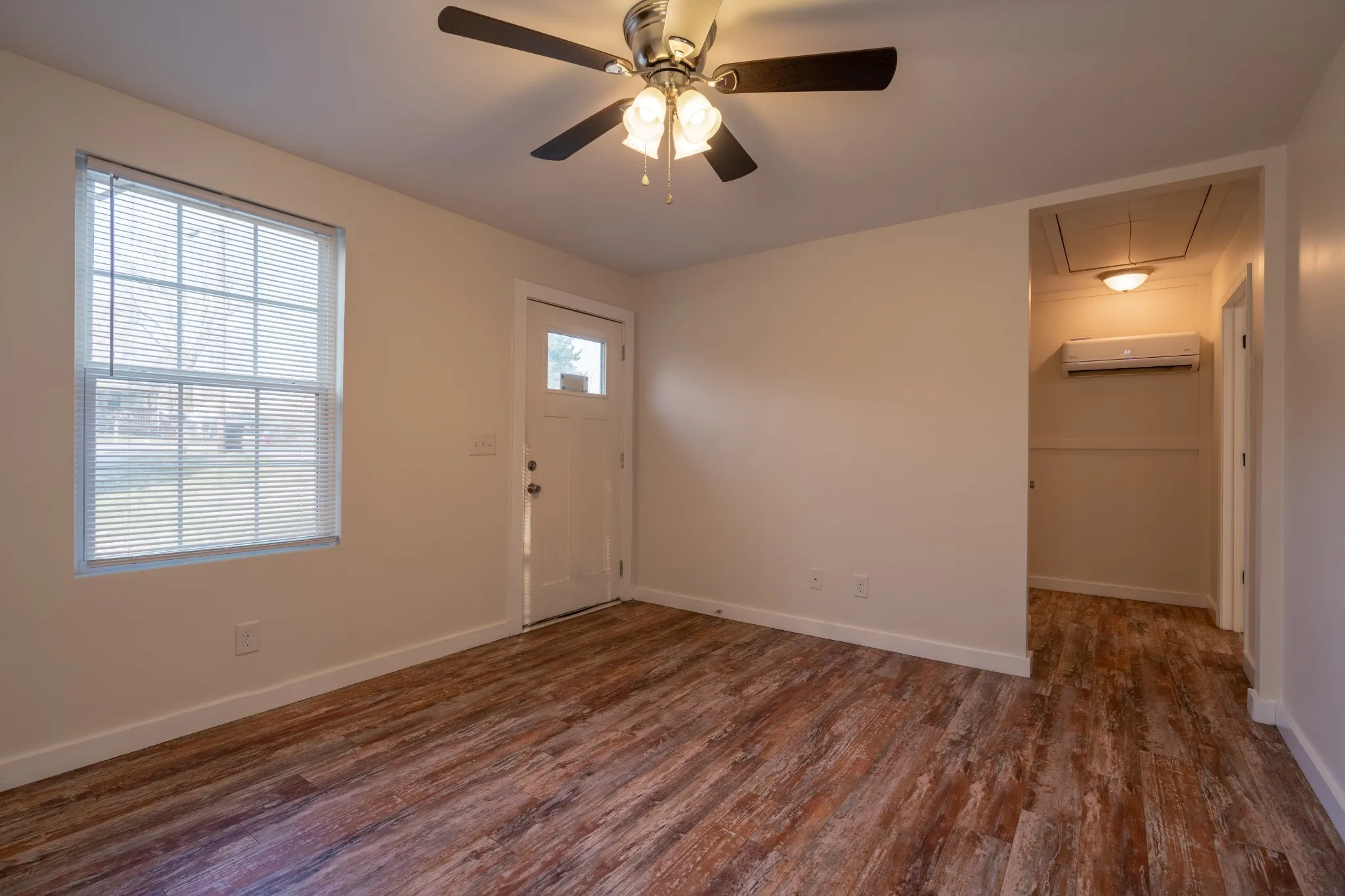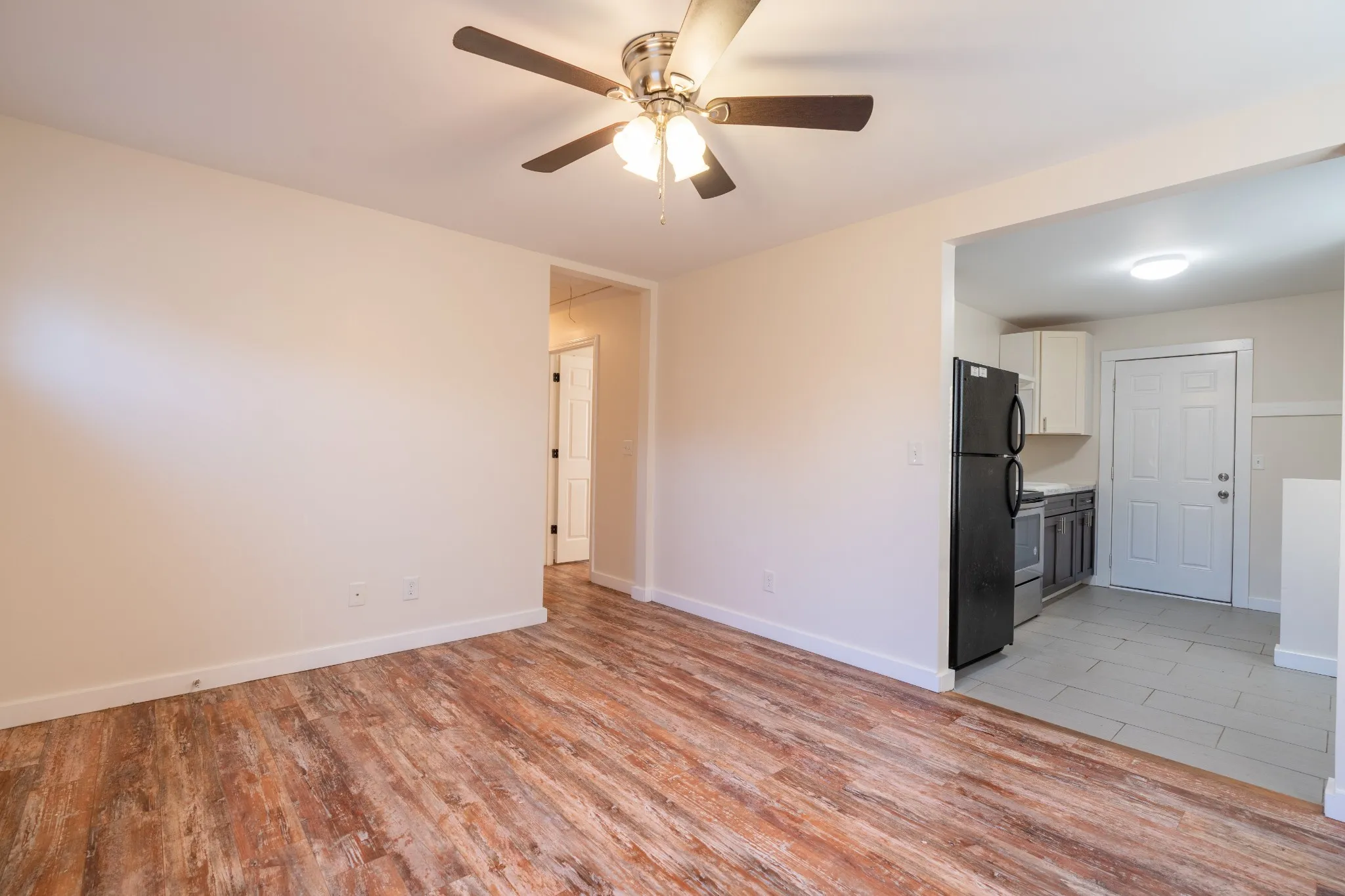 26 Chestnut Drive is a newly renovated duplex with both units having one bedroom and one full bathroom – just minutes from Fort Campbell, Austin Peay State University, Liberty Park Marina and the new F&M Arena. The residence features a spacious living room with a ceiling fan and beautiful LVP flooring. Off of the living room is the kitchen that comes equipped with a stove, fridge, microwave and washer and dryer. The bathroom has a single sink vanity sink and shower/tub combo. The bedroom has a utility closet that houses the washer and dryer connections and an additional closet for clothing. The bedroom also has a ceiling fan and LVP flooring.