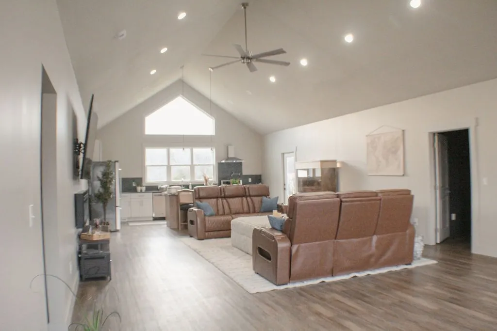 Modern farmhouse living in the heart of Gallatin, TN! This custom built home features an open concept layout with soaring ceilings, abundant natural light, and a chef inspired kitchen complete with granite countertops, stainless steel appliances, and an oversized island perfect for gathering. The spacious living area flows effortlessly for both entertaining and everyday comfort. In addition to the main living spaces, the home includes a versatile flex room that could serve as a home office, media room, playroom, or additional sleeping space depending on your needs. Outside, the impressive 40 by 60 detached shop offers endless possibilities for storage, hobbies, or business use. Situated on a scenic lot with a peaceful creek along the back of the property and located in the highly desirable Liberty Creek school zone, this property offers the perfect balance of style, function, and location. Come see it in person because it truly looks even better than the photos.