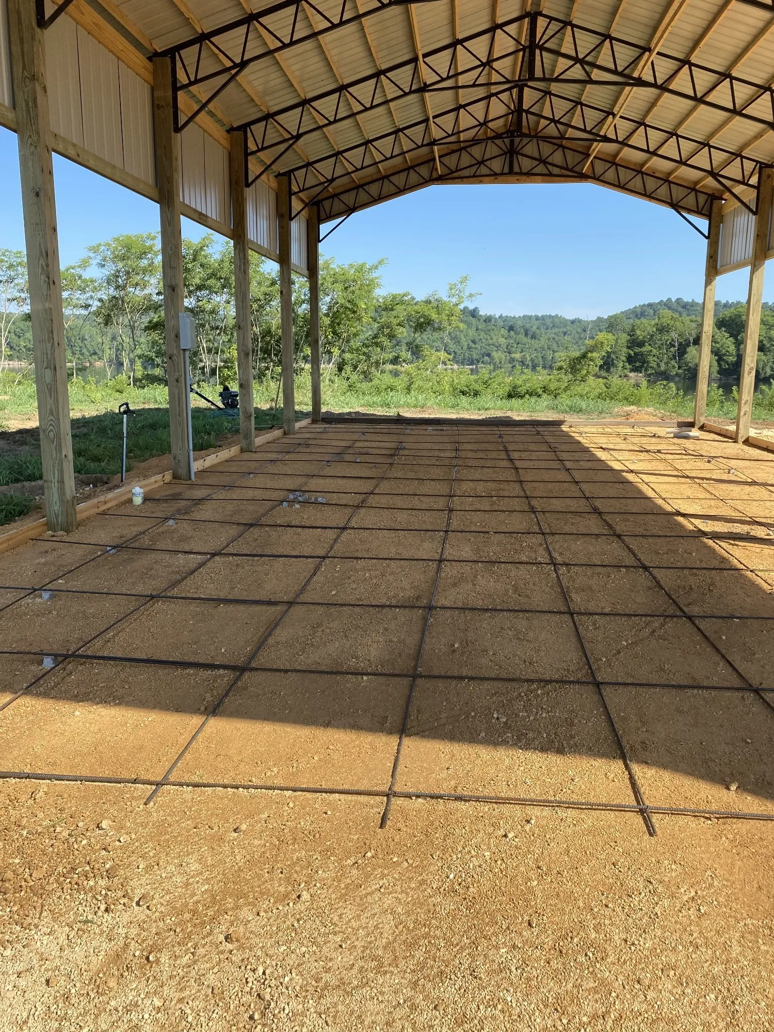 Spectacular waterfront lot with 60′ of frontage on Kentucky Lake/Tennessee River in the gated Paradise Landing development. Paradise Landing is a gated RV community with common areas and private boat ramp/dock. Located in Clifton, TN about 2 hours from Nashville. No HOA. Owners pay annual maintenance fee of $564. Desirable location on high ground. Built in 2022, the 30X60 pavilion, which can accommodate two large RV’s, has a massive 6″ thick concrete pad with 4000# PSI fiber mix reinforced rebar to withstand the weight of the heaviest RV’s. Two 50/30 amp electrical panels and 3 sewer connections. Pex Plumbing. Additional gravel pad configured for any RV. LED lighting and fully conduited electrical with weatherproof switches and outlets. Large beach for relaxing and playing. Unobstructed views of the water, wildlife and bald eagles on nearby island. Owners recently added lots of gravel, sunscreens down the sides that keep it cooler and give some privacy. Big 8″ posts for sails.