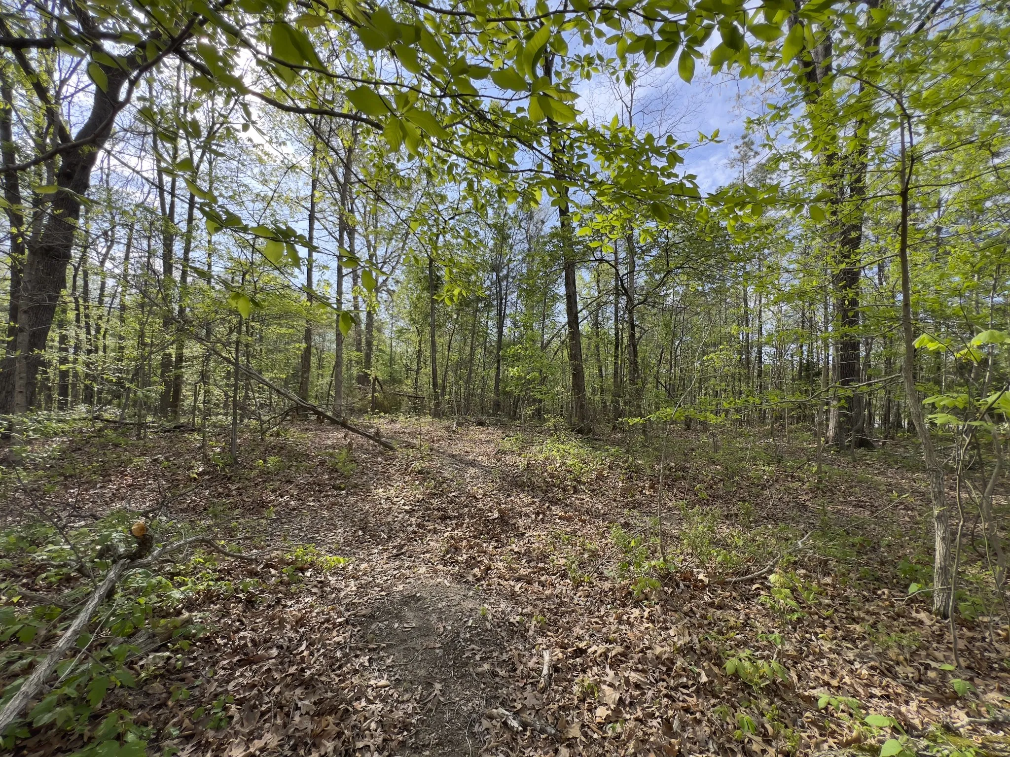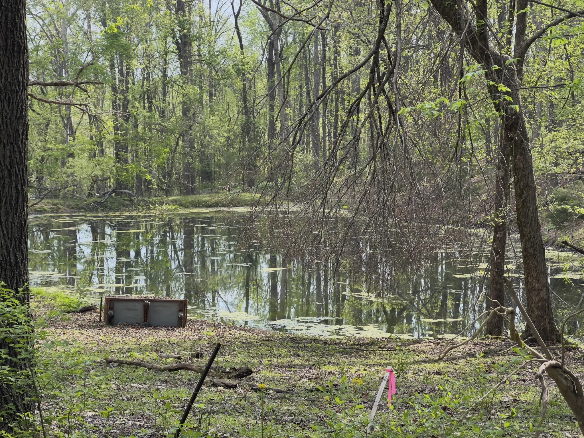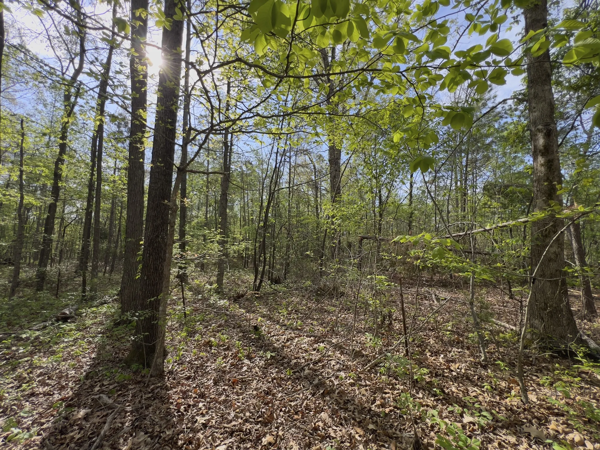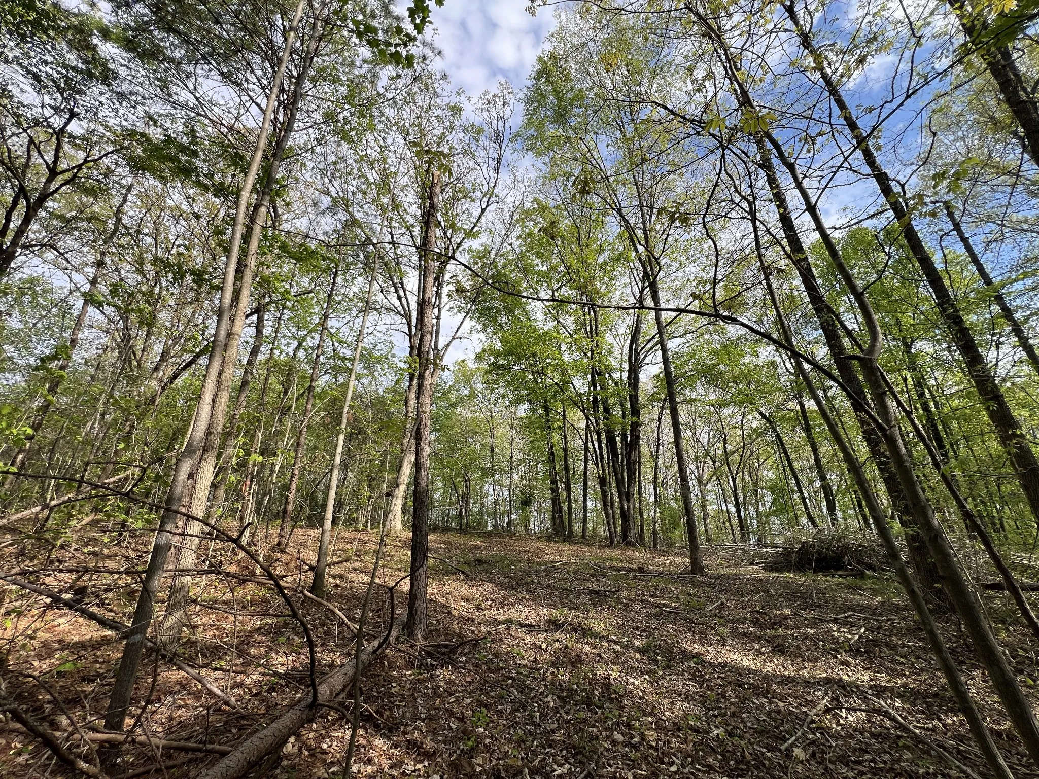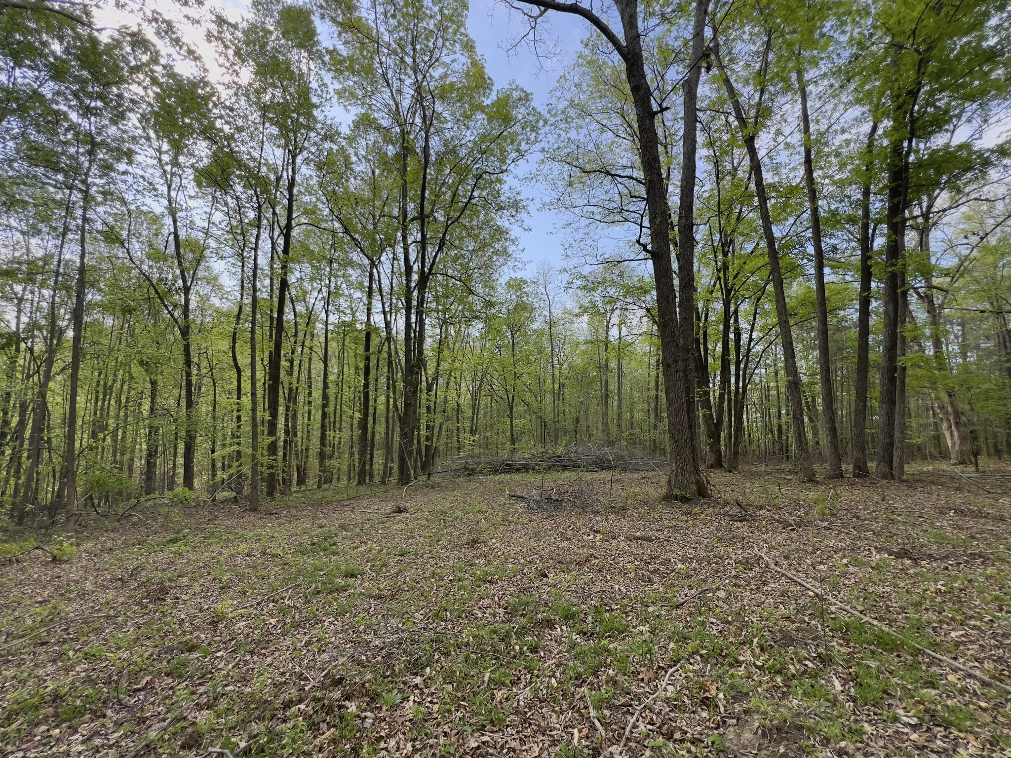 The land features mature timber with a mix of level to gently sloping terrain, ideal for a custom home site. Scenic surroundings with a neighboring pond add to the overall appeal.