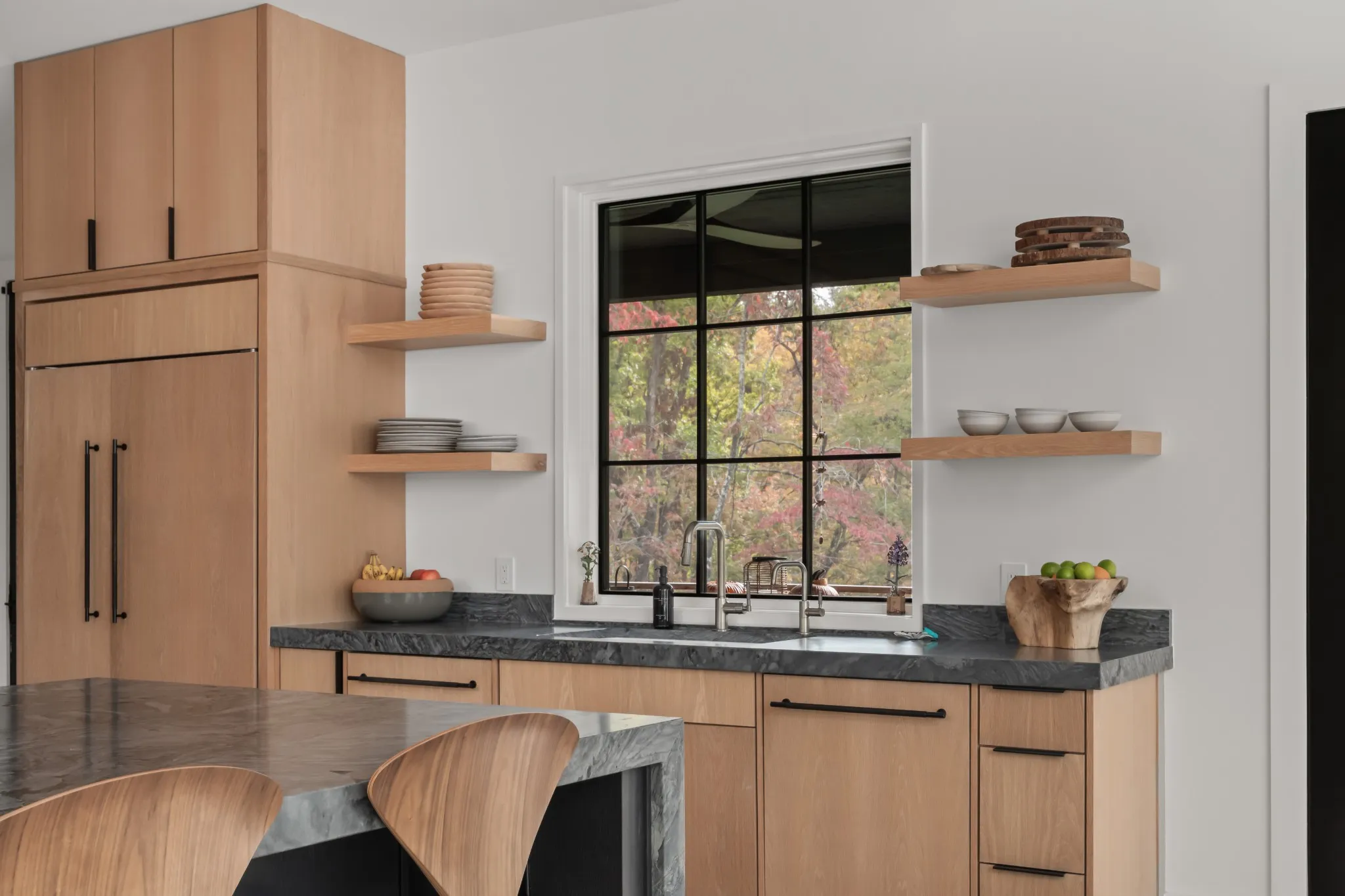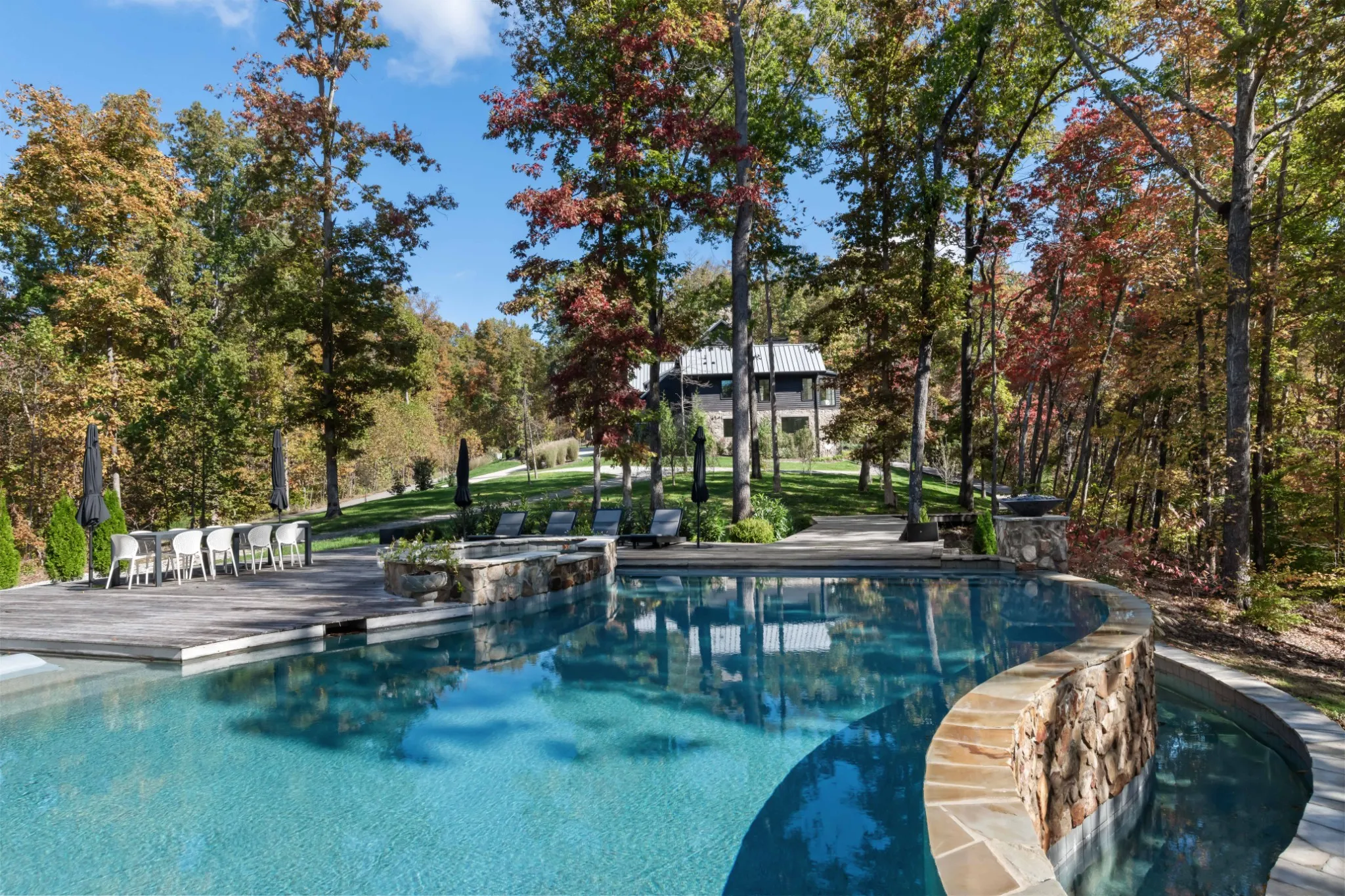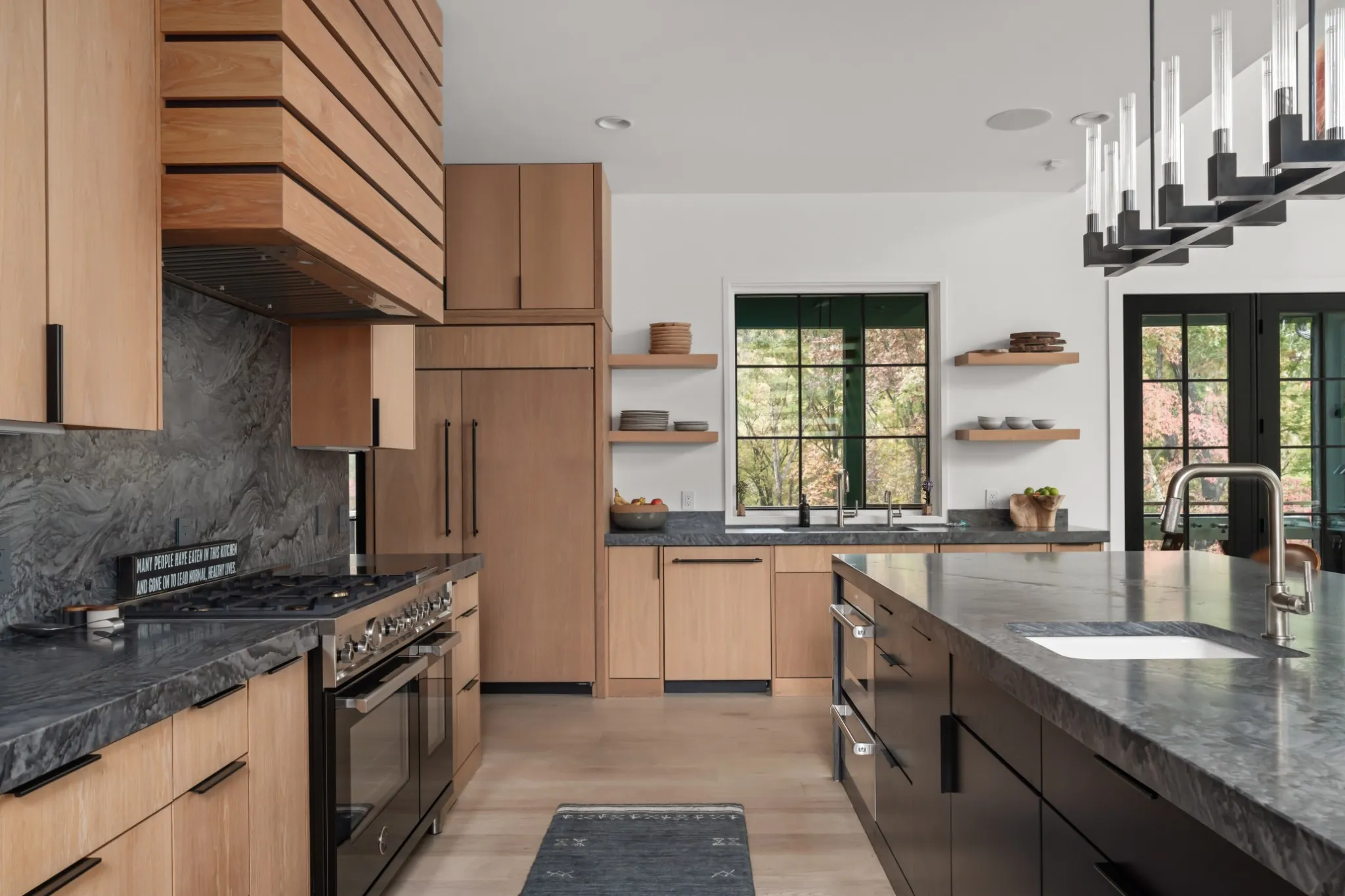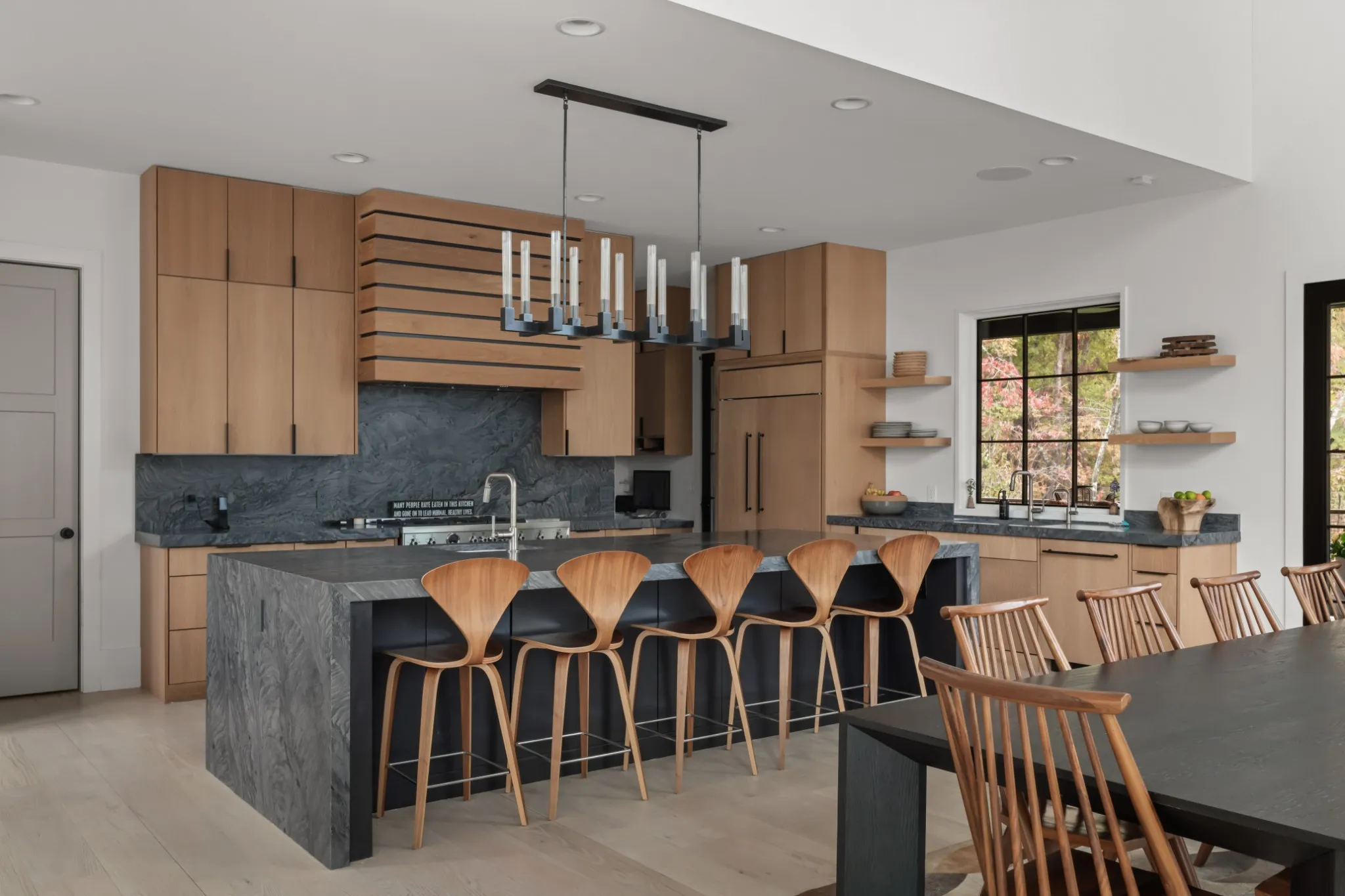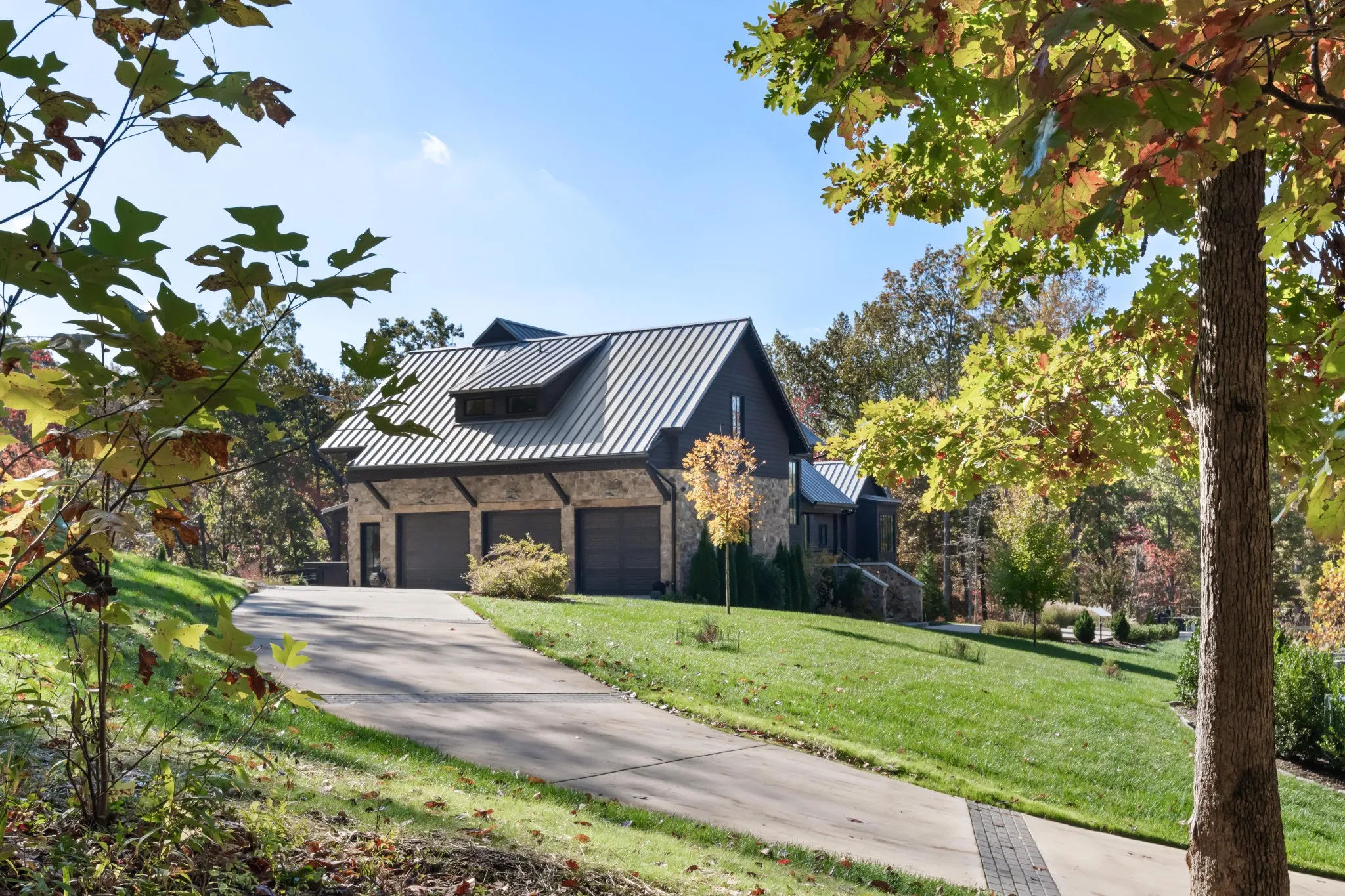 Welcome to your Blackberry Mountain–inspired retreat on 20+ acres in Franklin, overlooking the Natchez Trace Parkway. This custom home blends modern design with serene, pastoral living, featuring natural stone, cedar siding, a standing seam metal roof, warm wood cabinetry, walls of windows, and striking details like floating stair treads and designer lighting.