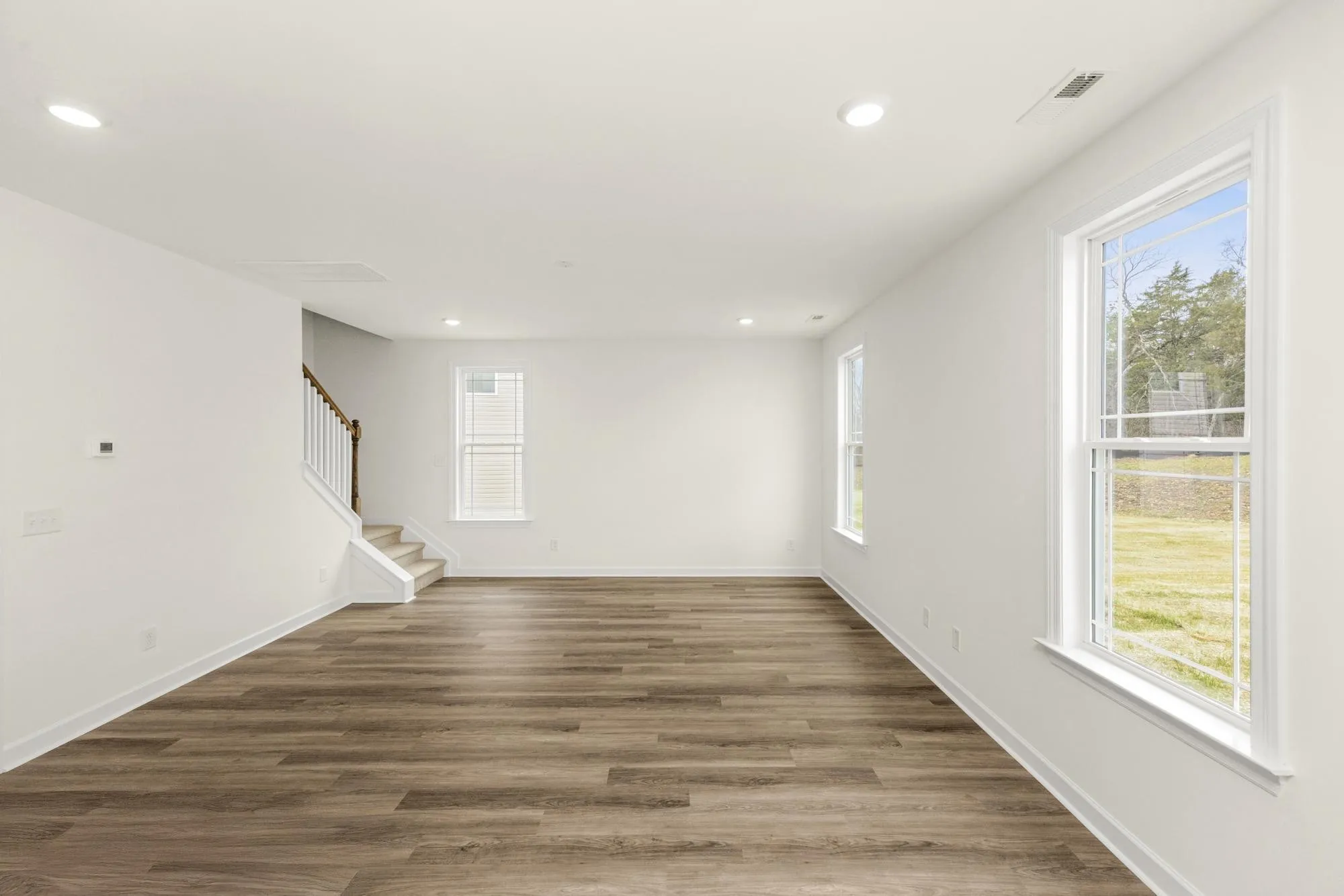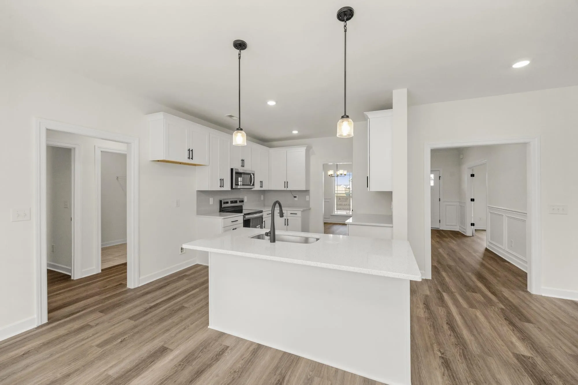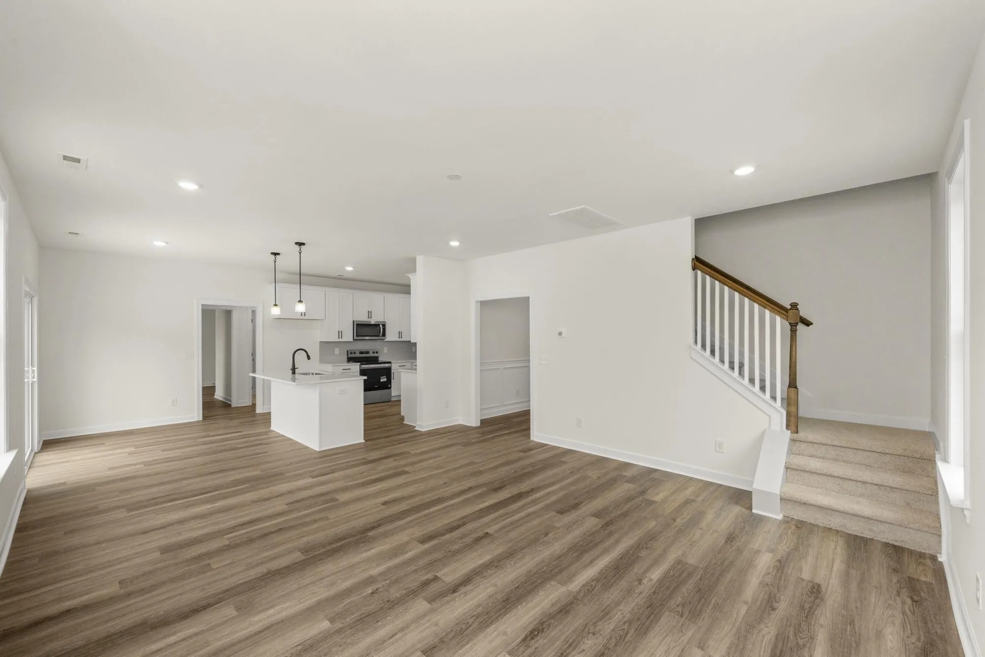 Welcome home to the Lockwood 3, a stunning, move-in-ready home offering over 3,000 square feet of thoughtfully designed living space. The main floor features beautiful luxury vinyl plank flooring and modern matte black fixtures throughout, creating a sleek and cohesive look. You’ll find a private home office behind elegant French doors, as well as a guest bedroom and full bath perfect for visitors. The heart of the home is the chef-inspired kitchen, complete with 42″ white shaker soft-close cabinets, stainless steel appliances, and an oversized island that overlooks both formal and informal dining areas.