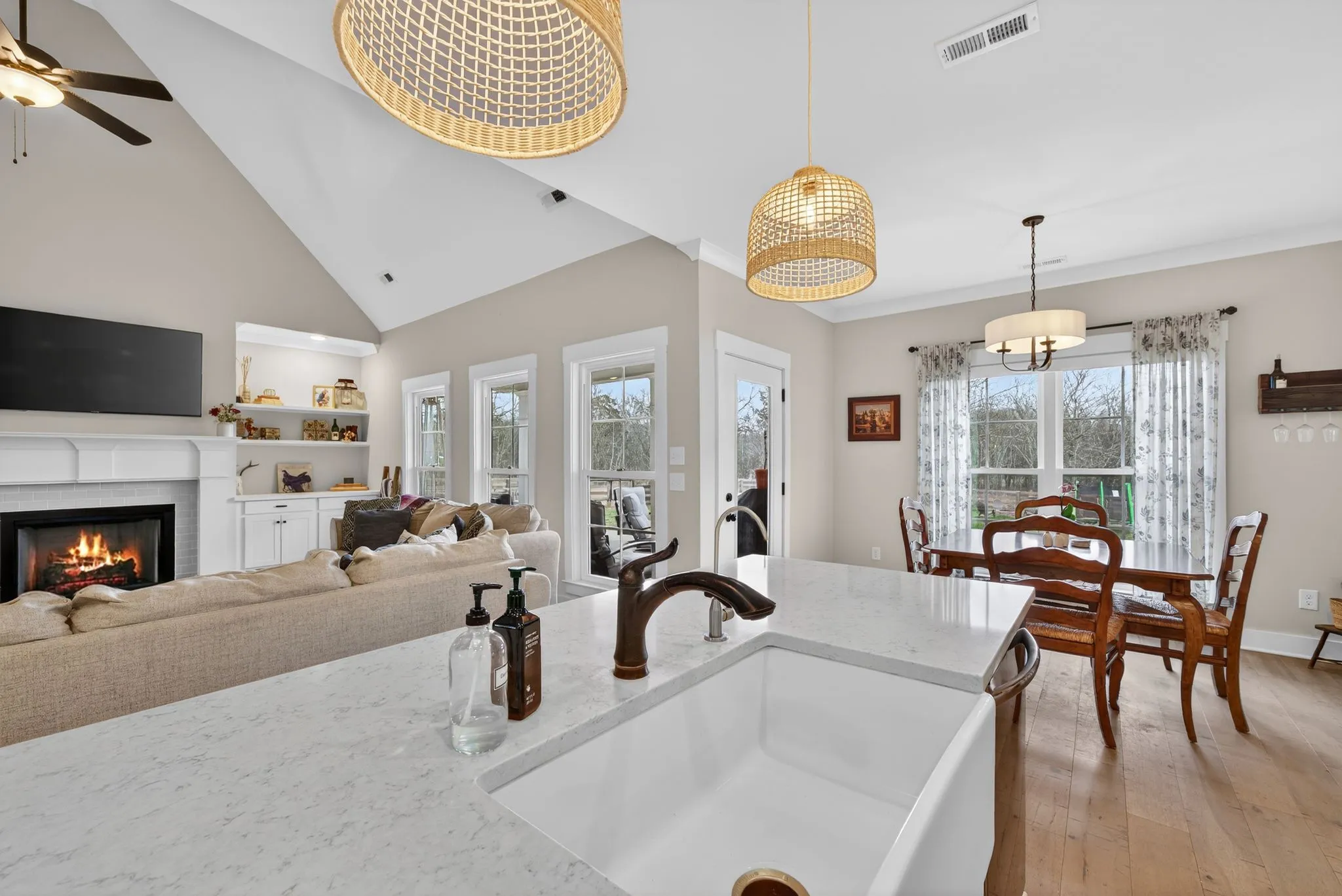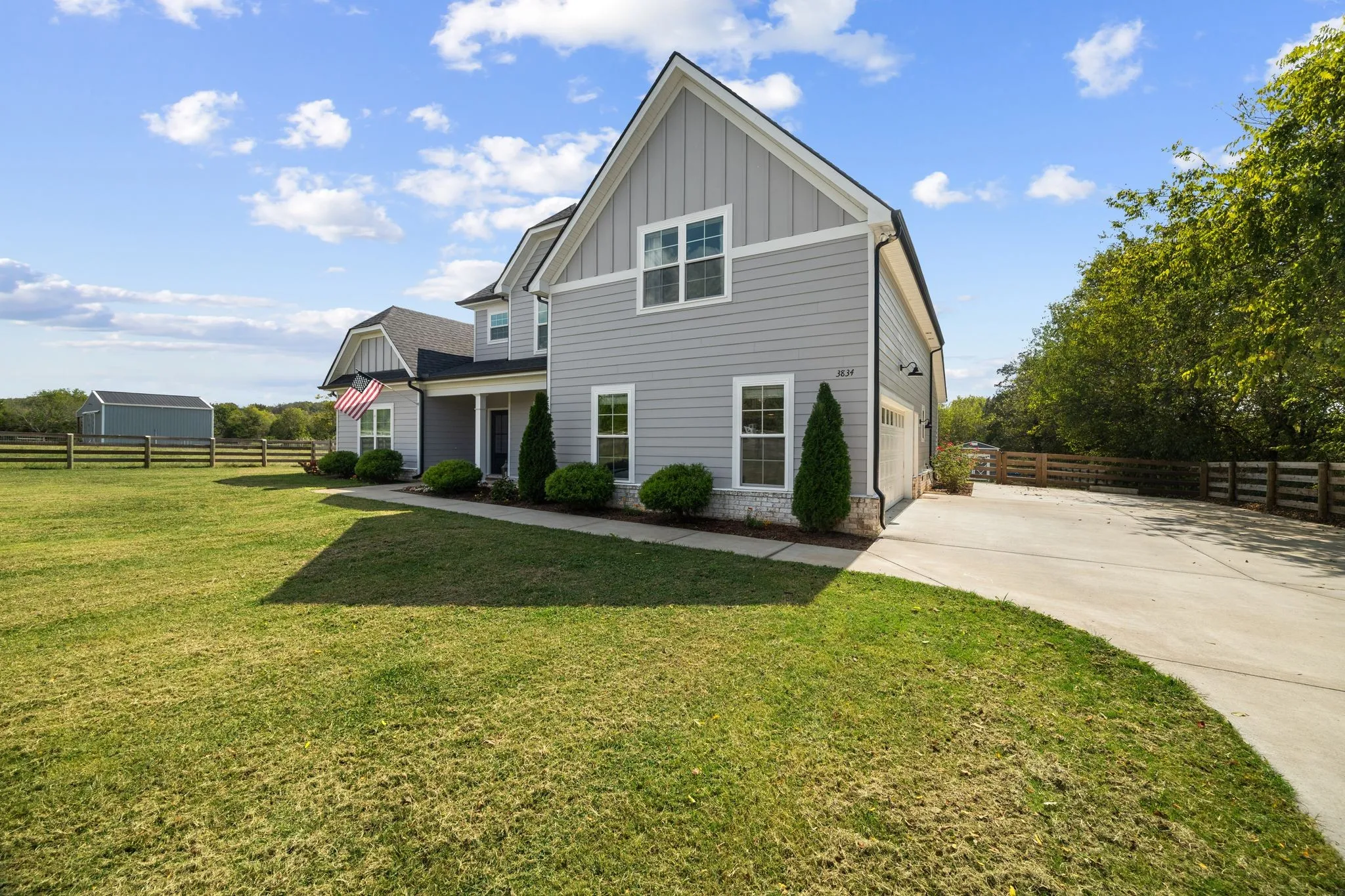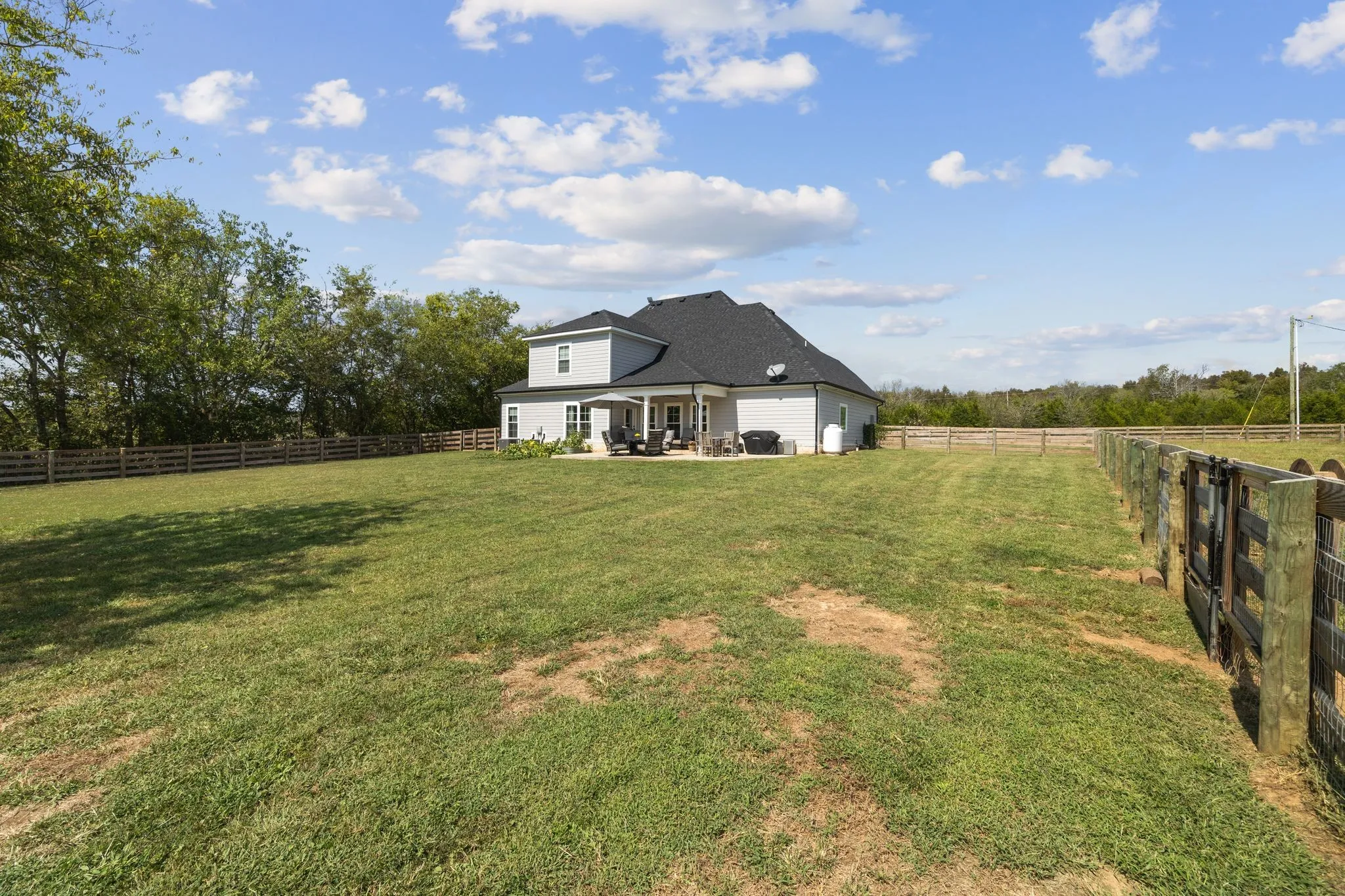 Looking for a turnkey mini farm with acreage and privacy — yet still close to town? Welcome to 3834 Holly Grove Road, a rare 5-acre country farmhouse outside city limits offering the freedom to bring horses, goats, chickens, trailers, RVs, and more. This fully fenced property is thoughtfully divided into two pastures plus a separate front and backyard area, creating a safe and functional setup for animals, hobbies, and everyday living. The 24×24 metal pole barn is fully equipped with utilities and was recently built out in 2024 to include multiple stalls and a tack room, with additional space for equipment or storage. A 16×10 Graceland wood shed adds even more versatility. Inside the home, the open floor plan features three bedrooms, a large bonus room, and an oversized flex room that easily functions as a fourth bedroom, making this home ideal for growing families, multigenerational living, or work-from-home needs. The primary suite is located on the main level, and high-end finishes throughout include granite countertops, tile backsplash, soft-close cabinets and drawers, stainless steel appliances, a kitchen nook for everyday meals, a separate dining area for gatherings, a gas fireplace, tall ceilings, and large windows that flood the living space with natural light. Enjoy peaceful mornings and relaxing evenings on the covered front and back porches while taking in the wide-open Tennessee views. Additional features include abundant storage, new garage storage racks, a reverse osmosis water filtration system, a septic tank replaced in 2022, brand-new field lines installed in 2024, and a fire pit in the backyard. Located in the welcoming community of Lascassas and just minutes from daily conveniences and approximately 45 minutes to Nashville, this move-in-ready mini farm offers the perfect blend of country living, modern comfort, usable land, and long-term value — a place where your animals have room to roam and your family truly feels at home.