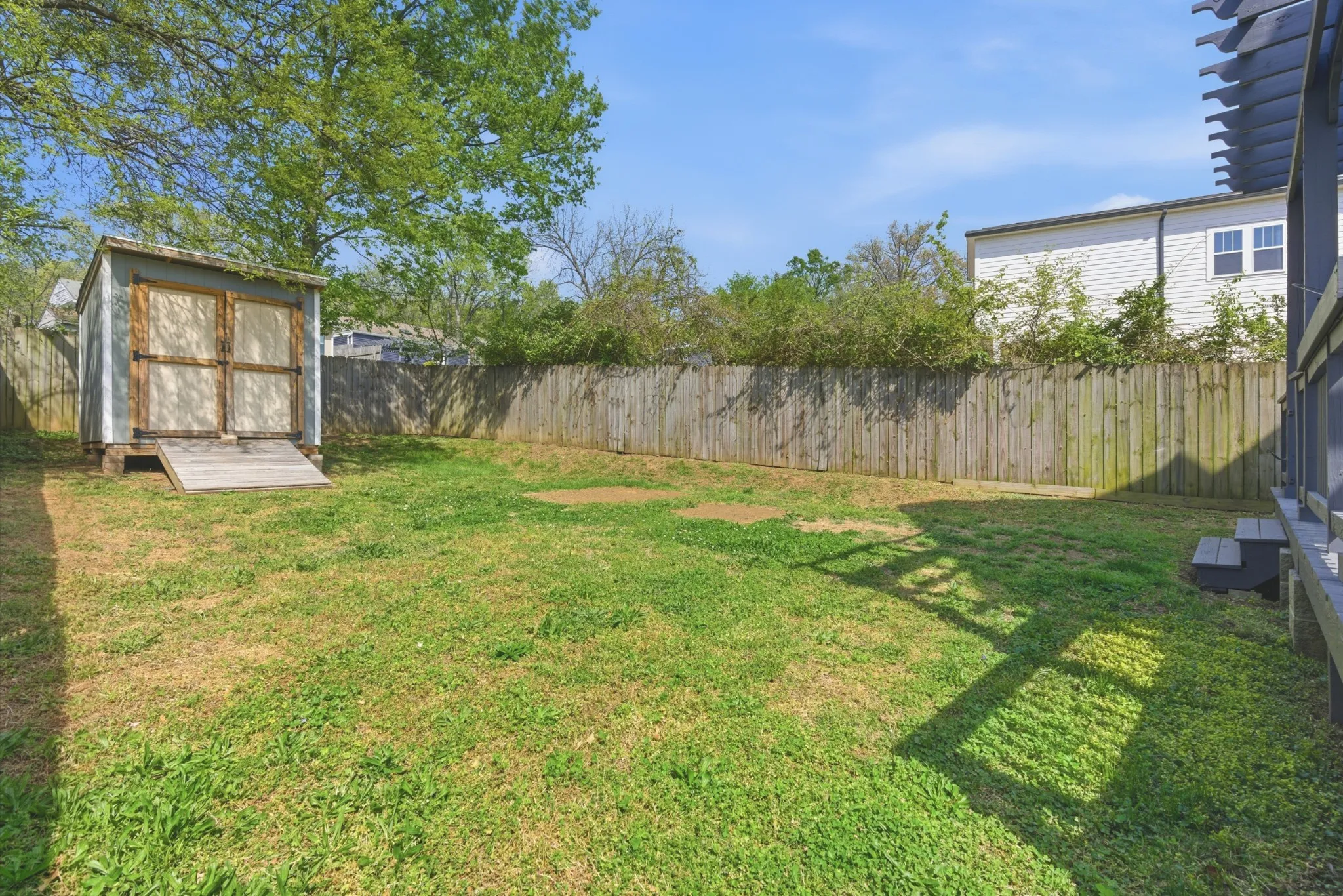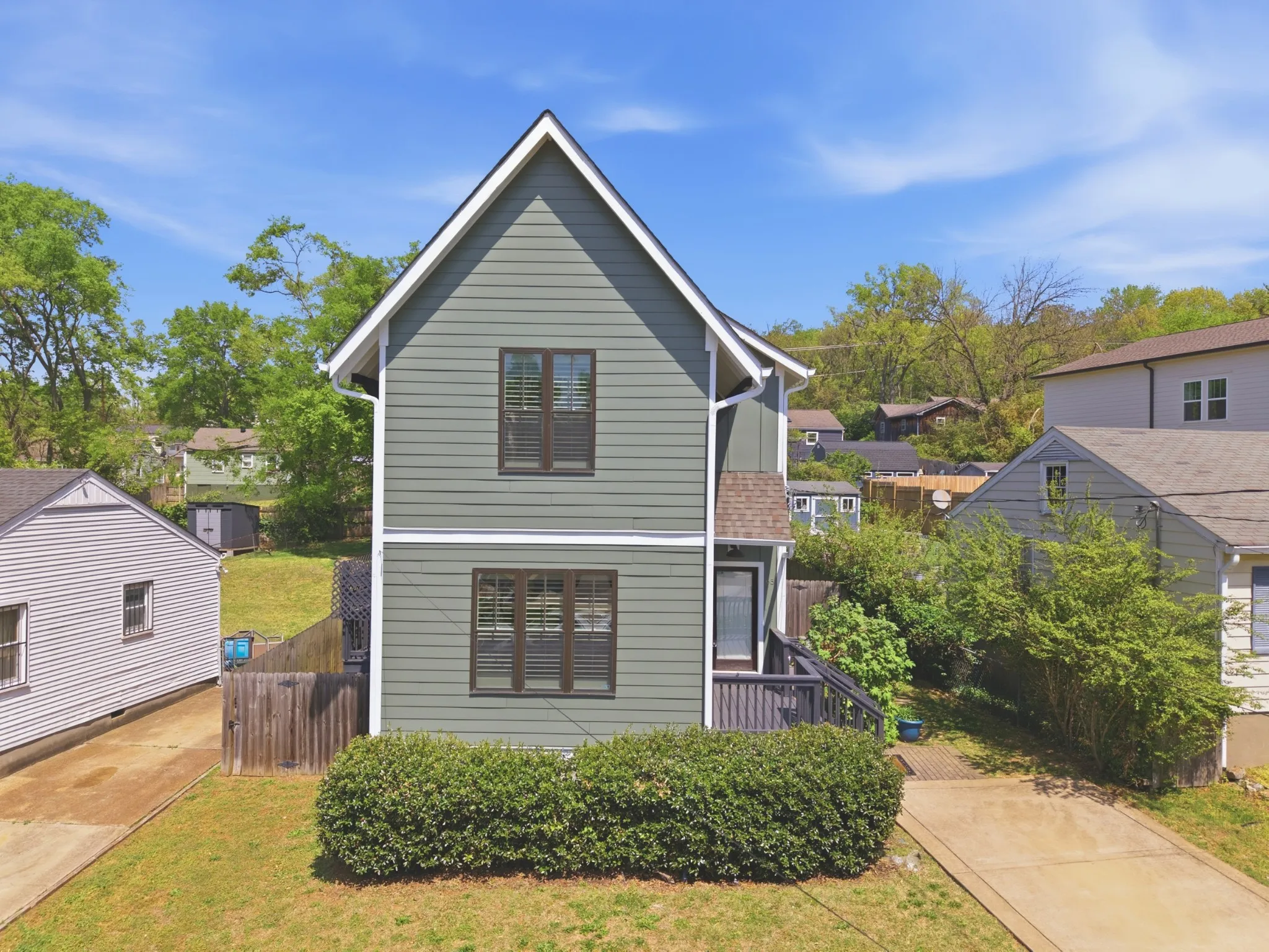 You chose East Nashville because you want walkability to great local places with character and value craftsmanship that includes hardwood floors and plantation shutters. Main floor includes open kitchen, dining, and living room with spacious pantry and half bath. Open the french doors and make entertaining a breeze on the private wrap-around porch with pergola. Spacious upstairs primary suite with vaulted ceiling. Two additional bedrooms with connecting double vanity full bathroom. Steps from Cafe Roze, Schulmans, Vynl Tap, & Tabla Rasa Toys. Incldues all appliances, washer, dryer, and storage shed. Brand new first level HVAC unit, all new interior and exterior paint, new carpet, and freshly stained decks.