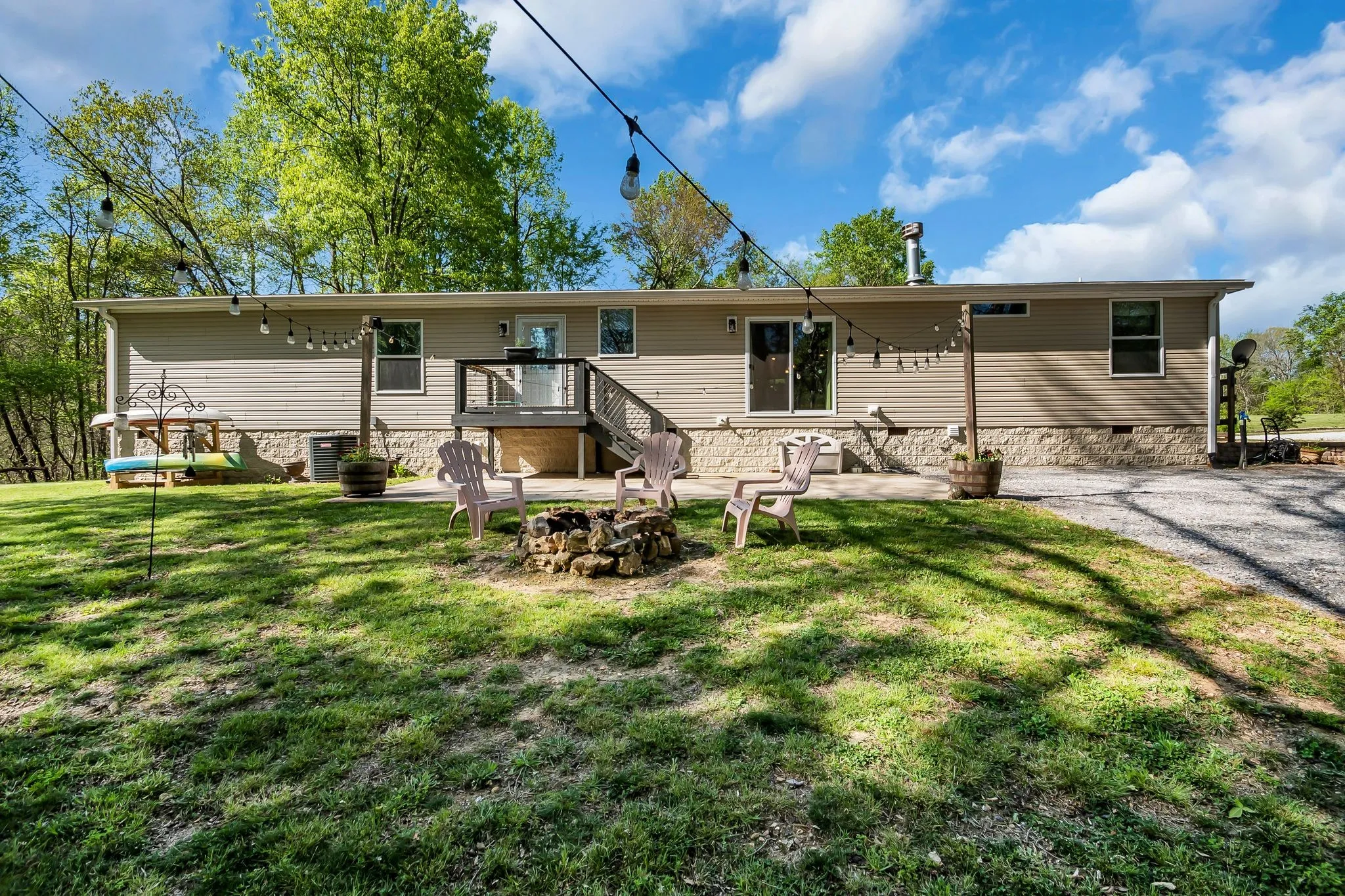 Just over one mile from the Lost Creek Boat Ramp on Tims Ford Lake, this beautiful nearly 10‑acre property offers the perfect blend of privacy, usability, and modern living. Mature woods surround the land, creating a natural buffer, while the open, level areas provide ideal space for a shop, barn, boat garage, or mini‑farm. A peaceful creek sits at the bottom of the hill behind the home, adding to the charm of the setting. The house is positioned toward the back of the property, well off the road, offering exceptional privacy.