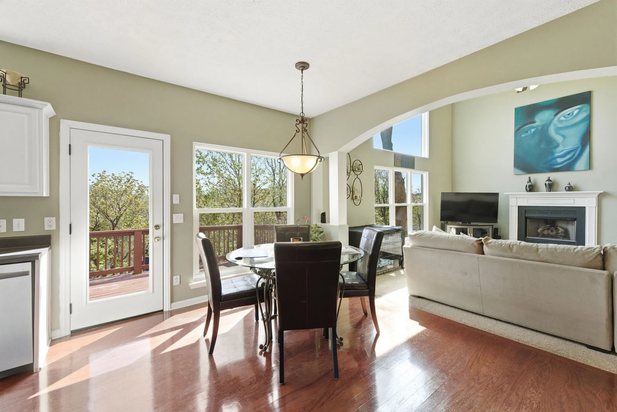 Step inside to an impressive entry foyer and a light-filled living room with floor-to-ceiling picture windows and a cozy gas fireplace. The open-concept layout flows seamlessly into the dining area and spacious kitchen, which includes white cabinetry, sleek countertops, a center island, and stainless steel appliances. The main level also offers a versatile sitting room, a dedicated office, and space for formal dining.
