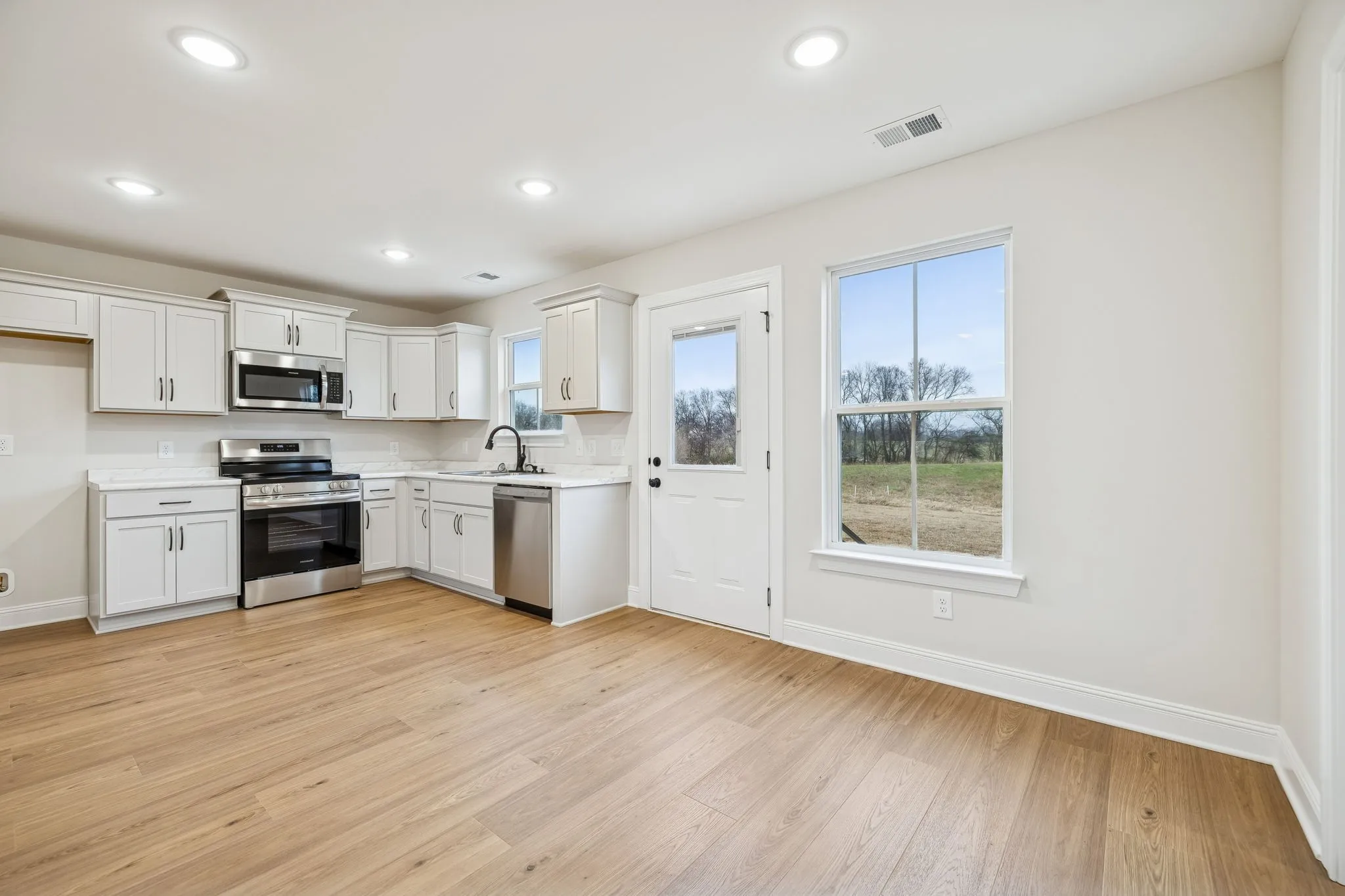 Step out onto the back patio and enjoy quiet views of open fields, a natural common area that gives you extra privacy and the chance to spot deer and wildlife.