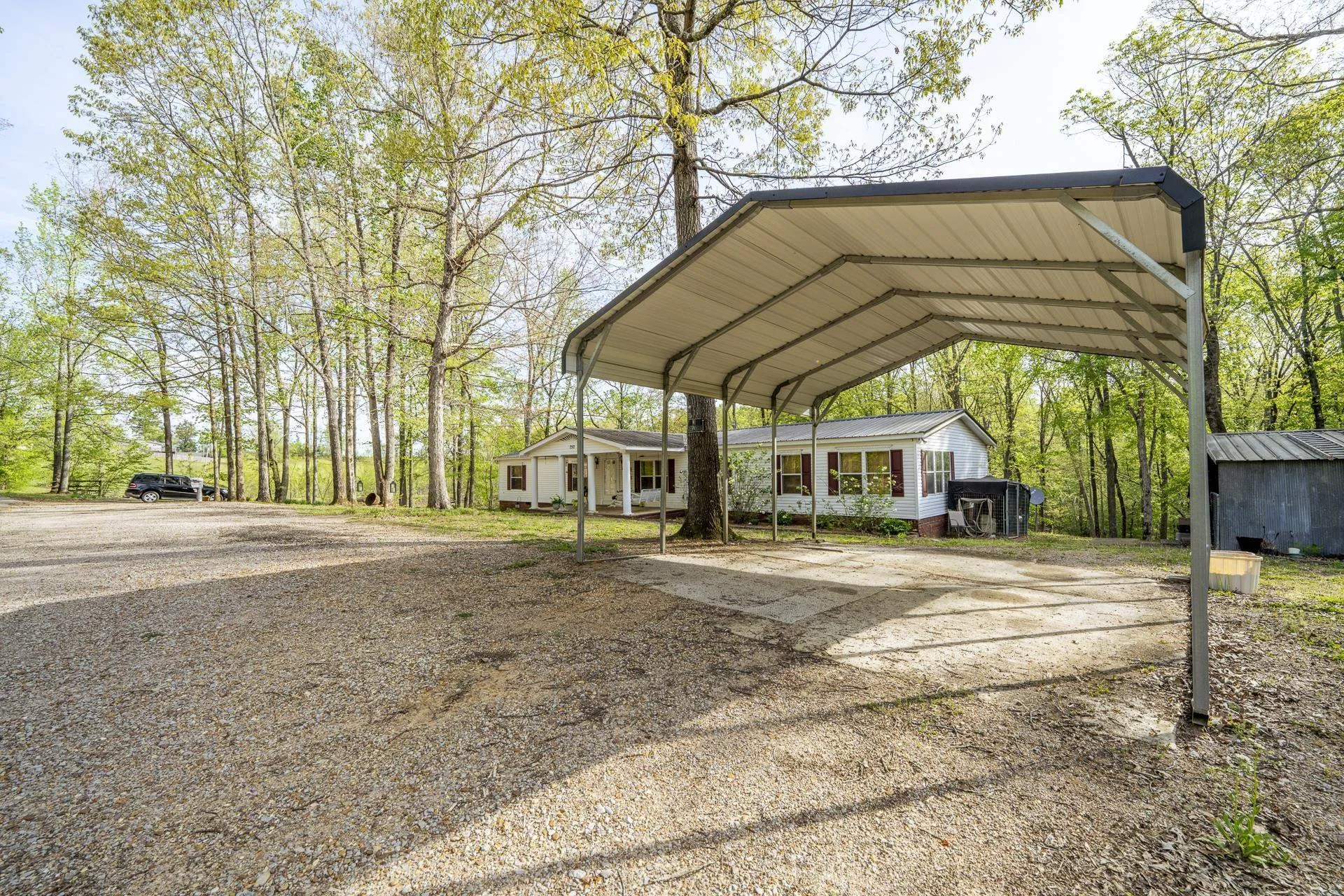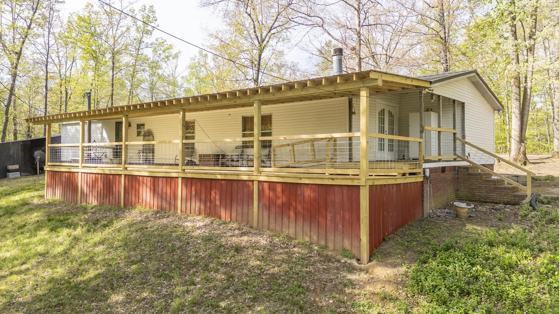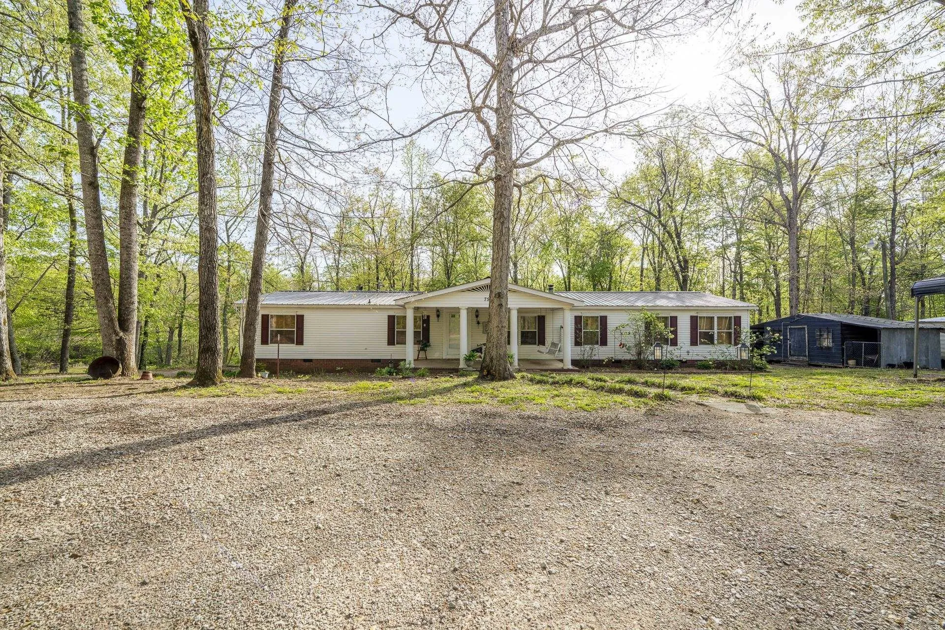 Live off the grid and enjoy peaceful country living on 3.58 beautiful acres surrounded by mature trees, with an additional building site already in place! This 27×46 mobile home offers 2 bedrooms and 2 baths, featuring solid wood floors, a spacious laundry room, and a cozy fireplace (extra logs included). A large deck spans the entire back of the home—perfect for relaxing or entertaining while taking in the serene setting. Additional highlights include a metal roof, permanent foundation, and access to high-speed internet. Conveniently located just minutes from excellent fishing on the Tennessee River. Quiet, private setting with low property taxes. Property sold as-is.