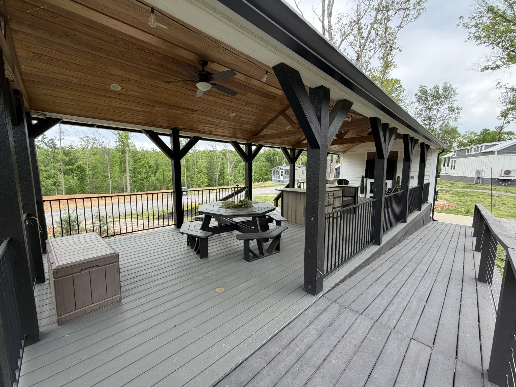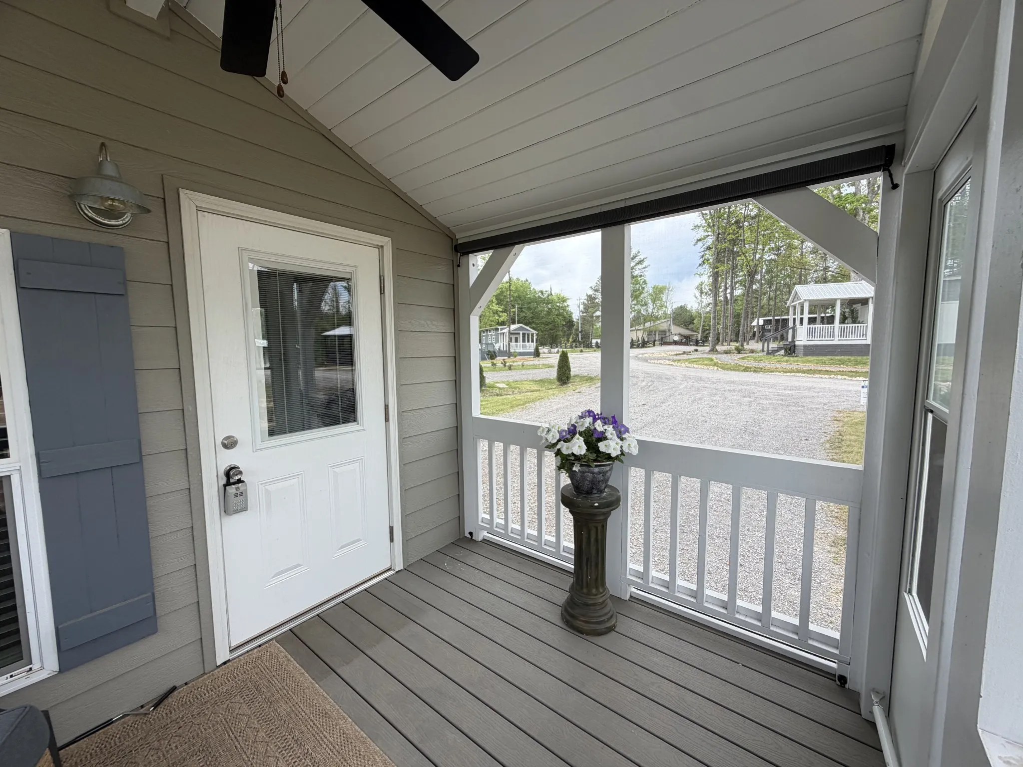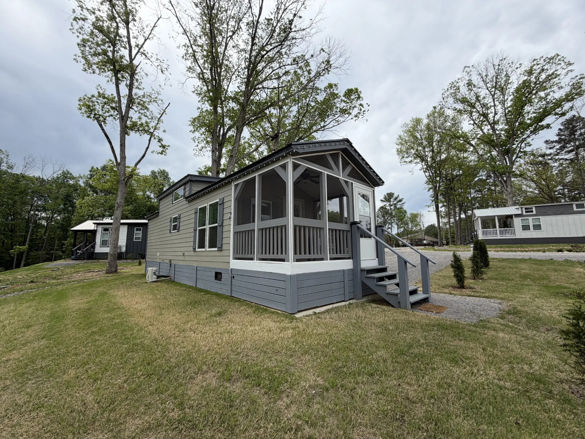 Situated in a gated tiny home community, the property includes a $219 monthly HOA fee and a $30 monthly water fee, supporting community upkeep and shared services.