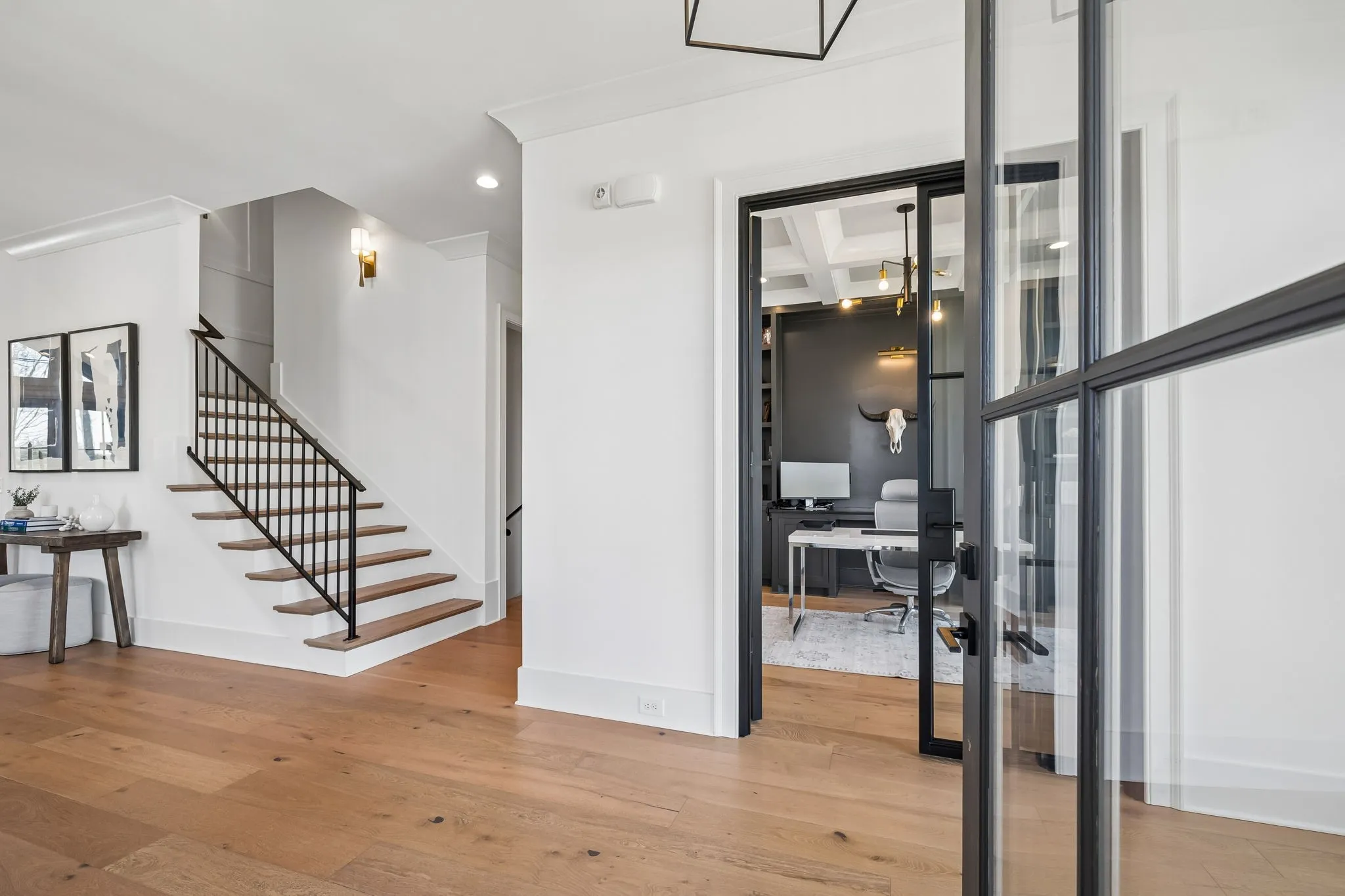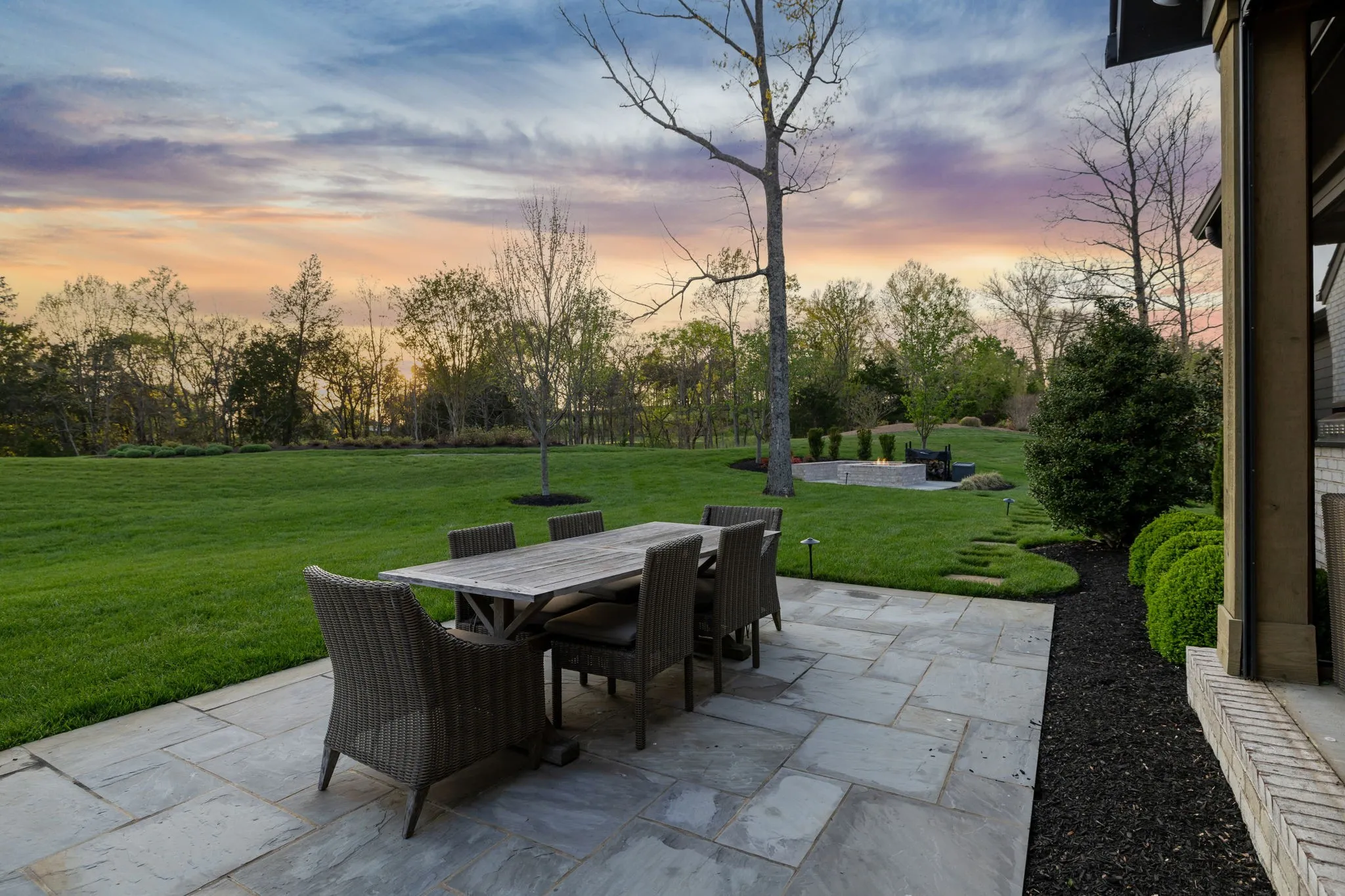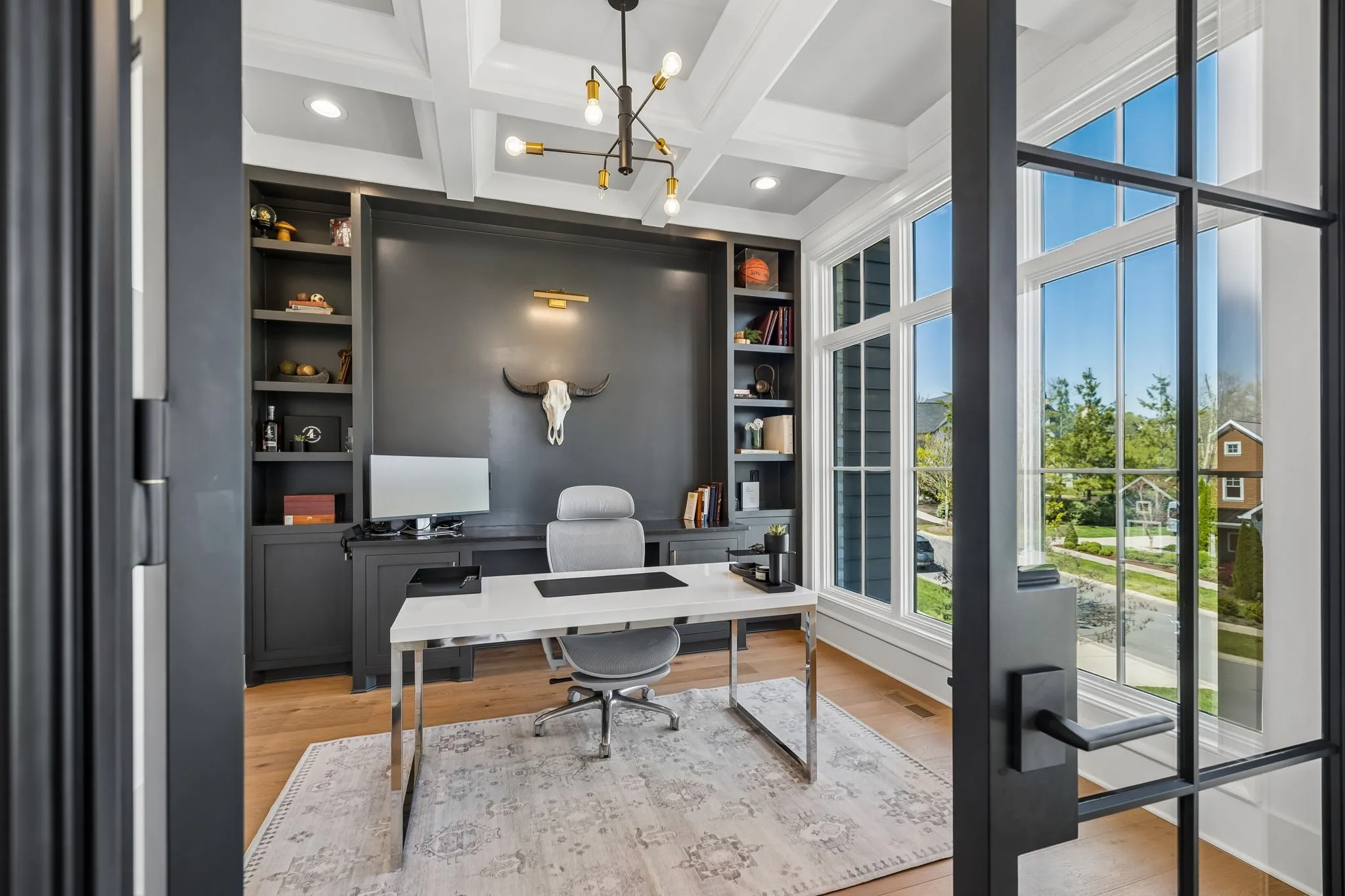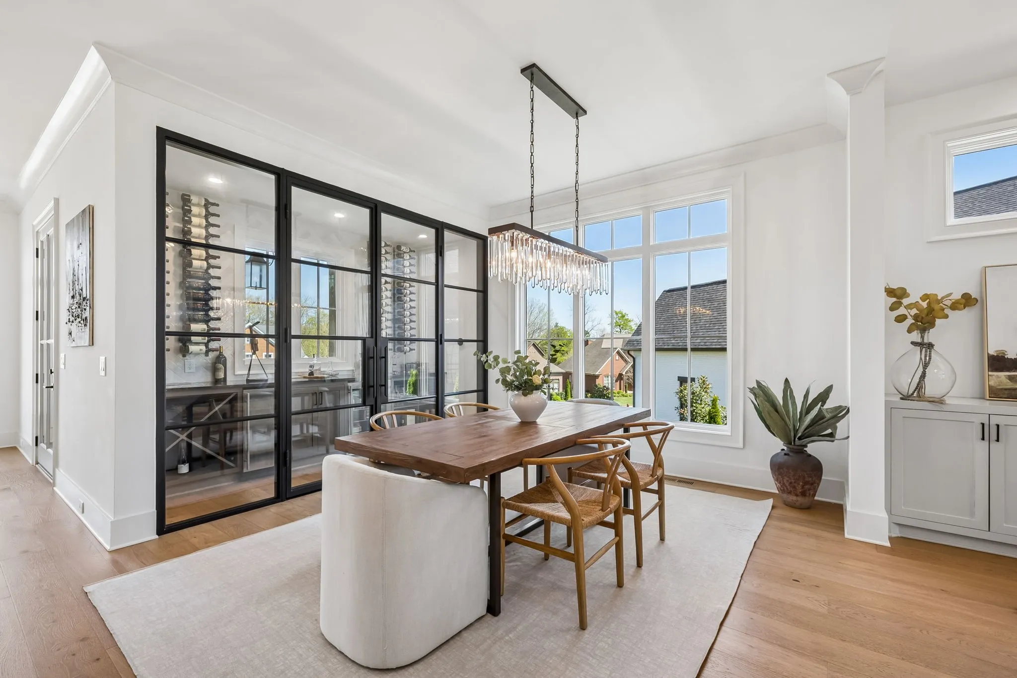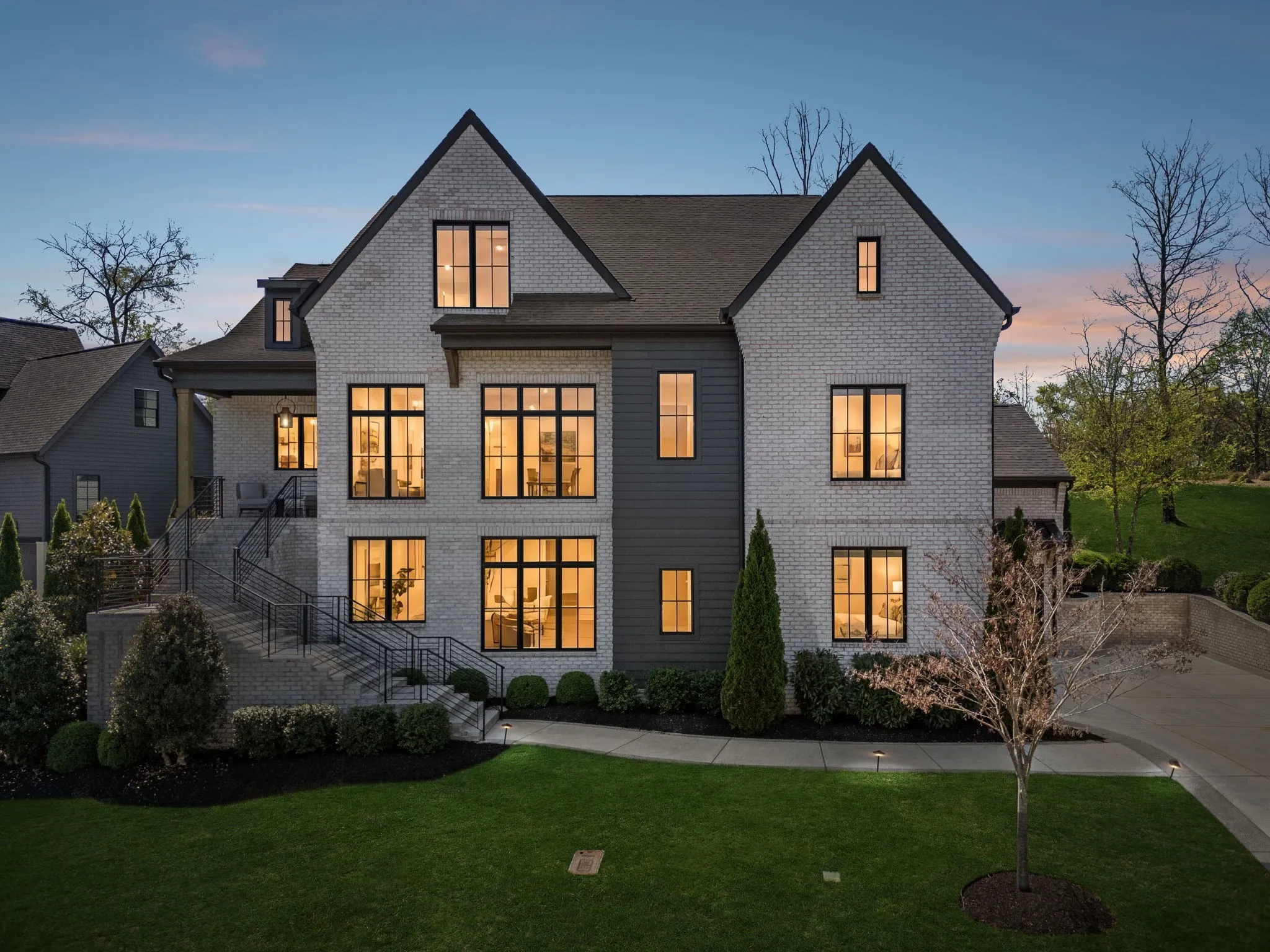 Gracefully positioned on Hole #4 of the prestigious Troubadour Championship Golf Course, this exceptional luxury residence offers refined design, thoughtful craftsmanship, and breathtaking golf course views. The open‑concept main level is anchored by a stunning chef’s kitchen featuring a substantial island with custom wood cabinetry, quartz countertops, professional‑grade appliances, designer lighting, and an inviting beamed tongue‑and‑groove ceiling. The kitchen flows seamlessly into the light‑filled living area, where soaring ceilings, exposed beams, a gas fireplace with custom surround, and expansive windows frame the panoramic fairway views. Designed for effortless entertaining, the home includes a striking glass‑enclosed wine room with custom racking, beverage refrigeration, and stone countertops. Sliding glass doors extend the living space outdoors to a covered, screened porch with a fireplace and serene views of the course and surrounding landscape, perfect for year‑round enjoyment. The main‑level primary suite is a private retreat, highlighted by vaulted ceilings, exposed beams, and wall‑to‑wall windows overlooking the lush grounds. The spa‑inspired en suite bath offers timeless finishes, and the expansive custom walk‑in closet features a center island and built‑in storage. Additional spaces include a beautifully designed office or flex room with custom cabinetry and shelving, a spacious laundry room with abundant cabinetry, and high‑end finishes throughout. Outdoor living is elevated by a meticulously landscaped backyard with stone fire pit, ideal for gathering under the stars while enjoying sweeping golf course views. The fully finished basement provides a generous extension of the living space, offering exceptional flexibility for recreation, media, fitness, or additional entertaining. With its elegant exterior, exceptional indoor‑outdoor flow, and premier Troubadour location, this home offers a rare opportunity to experience luxury living at its finest.