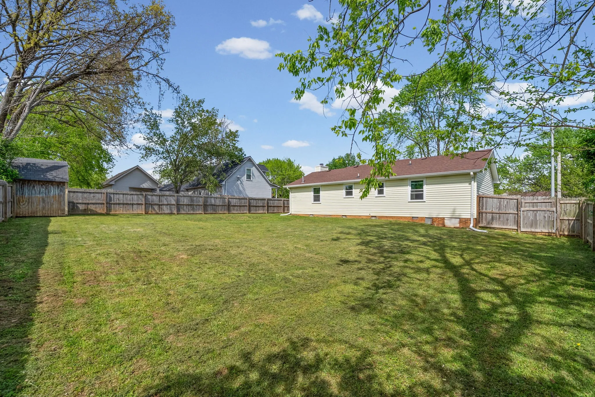 Welcome home to this charming and well-maintained 3-bedroom, 1.5-bath residence in the heart of Clarksville! Perfectly situated just minutes from Fort Campbell, local schools, and a variety of shopping and dining options, this home offers both convenience and comfort. Step inside to find a warm and inviting layout with plenty of natural light, enhanced by brand-new windows installed throughout the home. The updated front and back doors add both style and energy efficiency, giving you peace of mind for years to come. Outside, you’ll love the fully fenced backyard, ideal for relaxing, entertaining, or enjoying added privacy. A spacious shed provides ample storage for tools, outdoor equipment, or hobby space.