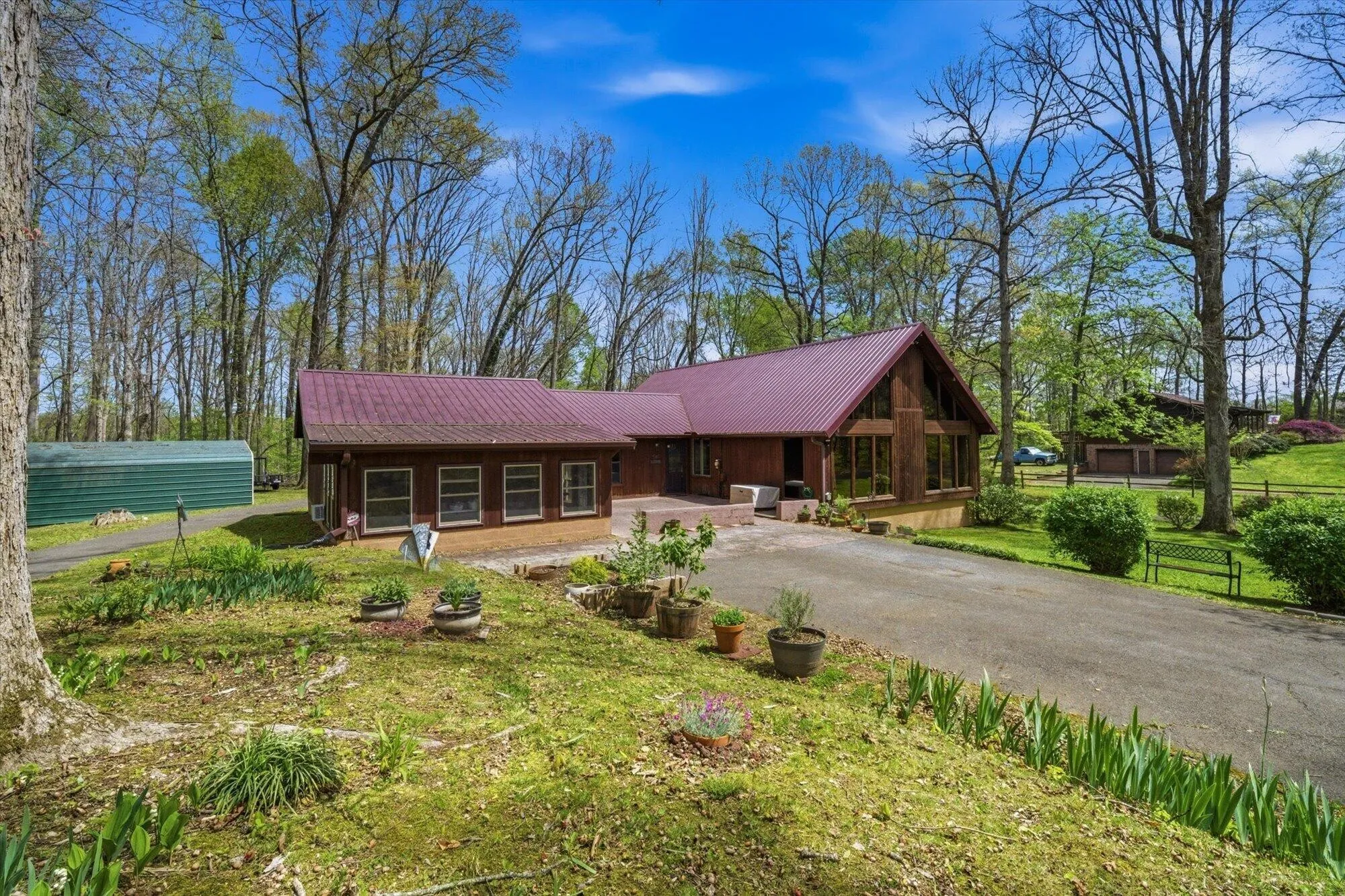 Discover the perfect harmony of bold design and tranquil woodland living. Tucked away on 0.93 acres of serene privacy, this striking 3-bedroom, 3-bathroom A-frame residence offers comfort, creativity, and total preparedness. Ideally located between Athens and Cleveland, you’ll enjoy a secluded sanctuary with seamless access to I-75, dining, and shopping. Exceptional Interior Living-Dramatic Main Level: The heart of the home features soaring vaulted ceilings and expansive floor-to-ceiling glass walls framing the forest. Rich wood accents and an open-concept flow create a warm, inviting atmosphere. Dual-Zone Comfort: Precise climate control via two separate A/C units (one per level) ensures year-round comfort. Flexible Loft Suite: A bright, expansive upper level serves as a massive third bedroom, library, or hobby retreat, complete with a private vanity and forest views. Versatile Sunroom: Bathed in natural light, this space is perfect for an art studio, yoga sanctuary, or reading nook. Entertainer’s Dream: The dedicated game room features vaulted wood ceilings, a built-in bar, and ample room for a pool table or media center. Outdoor Oasis & Functional Utility-Modern Reliability: Total peace of mind with a whole-home Generac backup generator. Serene Setting: Enjoy the East Tennessee air from your screened-in porch or the usable yard space surrounded by mature trees and seasonal blooms. Ample Storage: A hobbyist’s dream with a garage, double carport, and multiple outbuildings (tool shed, storage shed, and well shed).