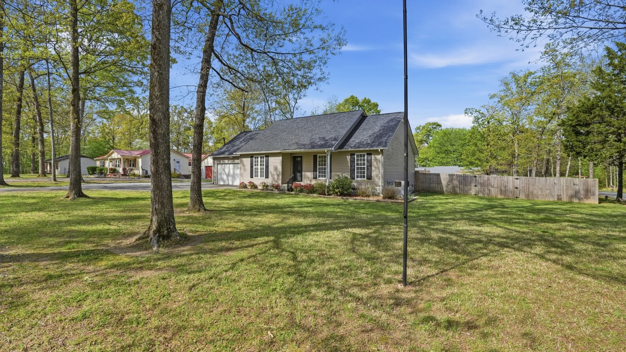 Welcome home to this move-in ready 3-bedroom, 2-bath home perfectly situated on a corner lot in a quiet Winchester neighborhood—located outside the city limits and just minutes from Tims Ford Lake and Twin Creeks Marina. Built in 2003, this 1,420 sq. ft. home offers a comfortable, functional layout with an attached two-car garage and thoughtful updates throughout. Inside, you’ll find welcoming living spaces that flow easily into the kitchen, making everyday living and entertaining simple. A bright sunroom (gathering room) provides the perfect bonus space for relaxing, enjoying morning coffee, or everyday use. Step outside to a large fenced-in backyard with a wood deck, ideal for pets, play, or outdoor gatherings. Recent updates include a newer roof (2023) and HVAC system (2021), offering peace of mind for years to come.