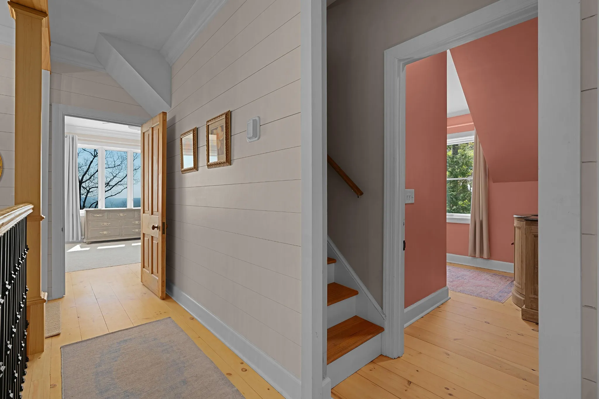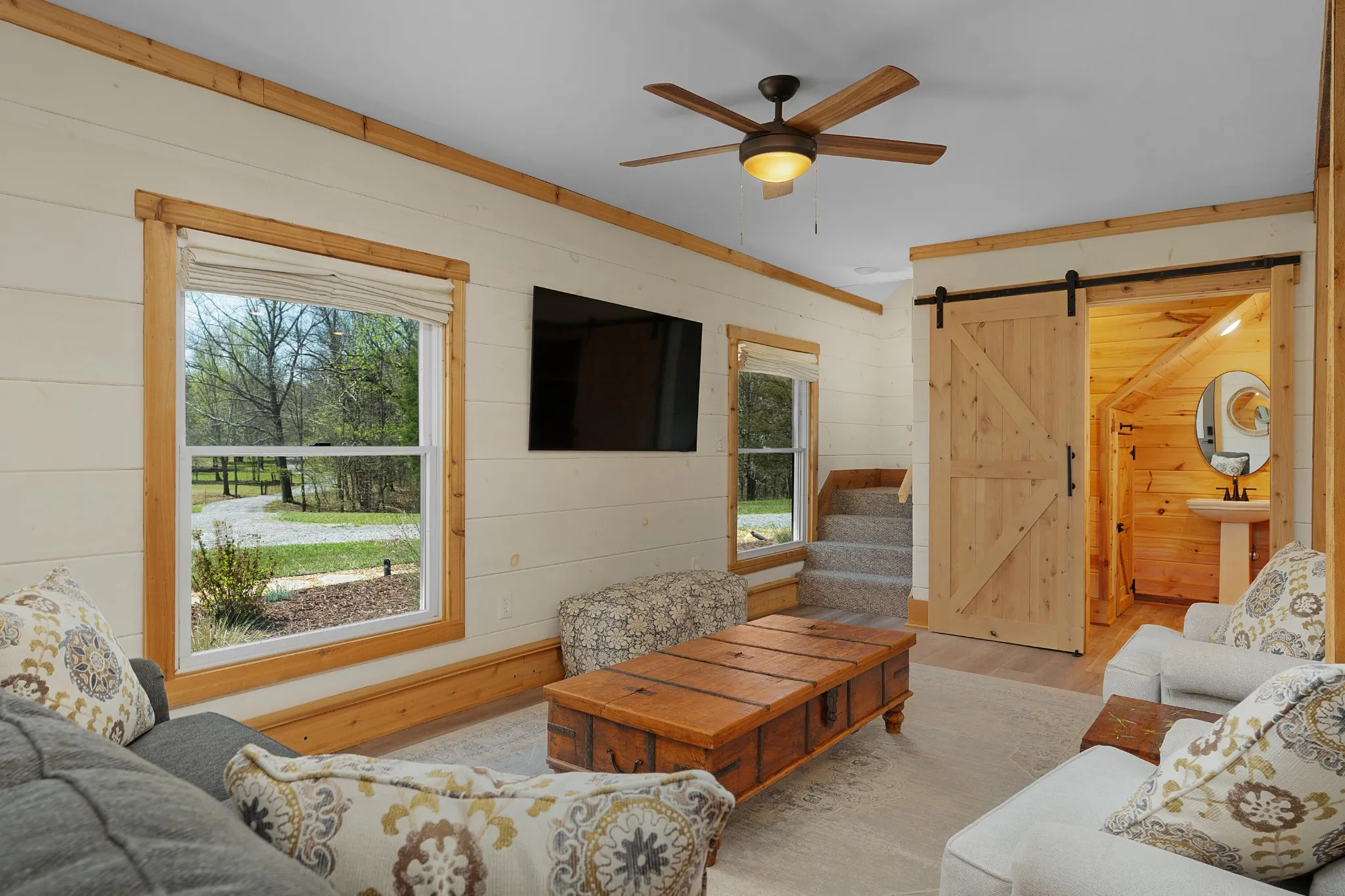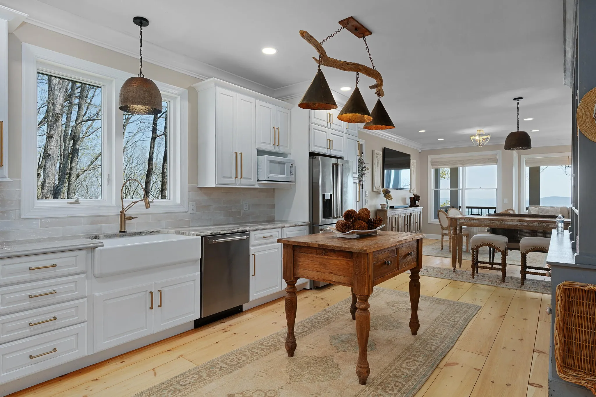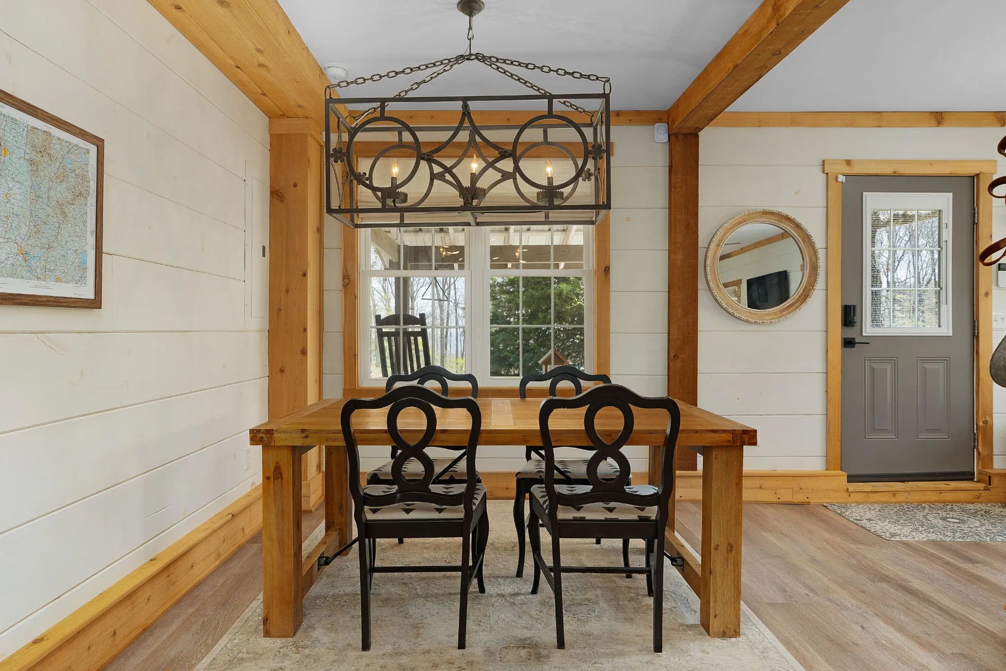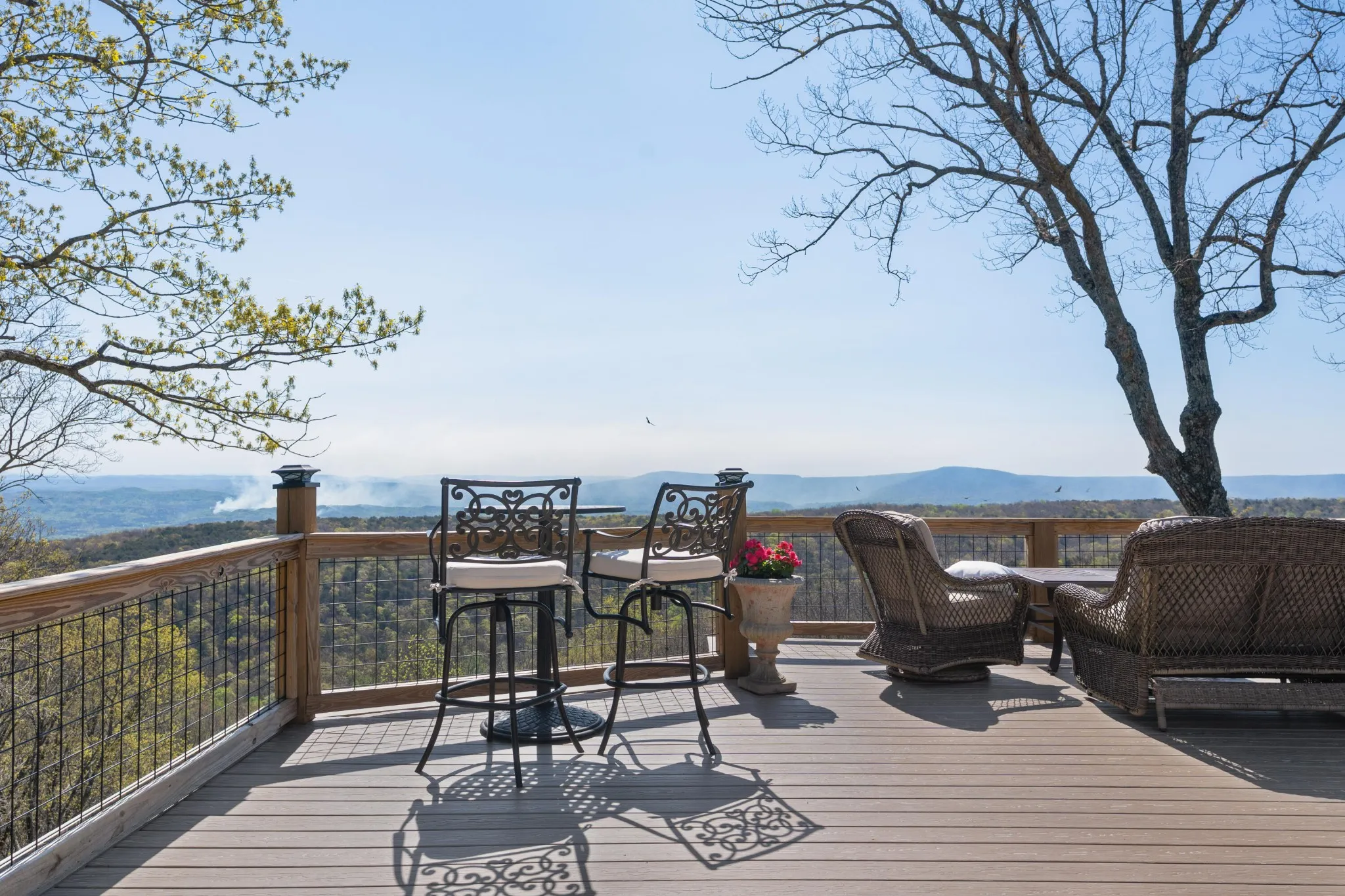Truly stunning brow property on Lookout Mountain in the Rising Fawn area featuring a 4 bedroom, 3 bath main house with a 3 bay garage and a heated, saltwater pool, plus a 1 bedroom, 1.5 bath guest house picturesquely positioned on 14.14 +/- acres approximately 1 mile from the McLemore Golf Resort with hotel, pool, spa, 3 restaurants and 2 – 18 hole golf courses. Meticulously renovated in 2022, the home simply exudes curb appeal with its shake shingle and metal roofs, lush landscaping and wrap-around covered porch overlooking the pool with the gorgeous mountain and valley views as your scenic backdrop. Enjoy these views from almost every room in the house where you will find wide-plank pine floors, crown moldings, decorative and recessed lighting, solid wood doors, clad windows, wonderful natural lighting, stone countertops, shiplap accents and more. The main level has a great circular flow with multiple access points to and from the wrap-around porch, and your tour begins with entry to an inviting foyer with the dining on the left and the living areas to the right. The dining room has a wood burning fireplace and opens to the kitchen, while the living room adjoins a sitting area which in turn opens to the breakfast area and kitchen. The living room faces the brow and the French doors to the back porch can be opened to invite the outside in and extend your living space. The kitchen has granite countertops, tile backsplash, stainless Bertazoni Italian appliances, custom cabinetry with organizer systems and a large doorway to the hallway to the new addition. The addition is seamless and includes a full guest bath with separate access from the porch for pool guests, laundry room with utility sink, cabinetry, and a folding counter, the heated and cooled 3-bay garage and an upper-level den and bedroom. The other bedrooms are accessible from the main staircase, including the primary bedroom which has a sitting area, 2 walk-in closets and the primary bath with a dual vanity